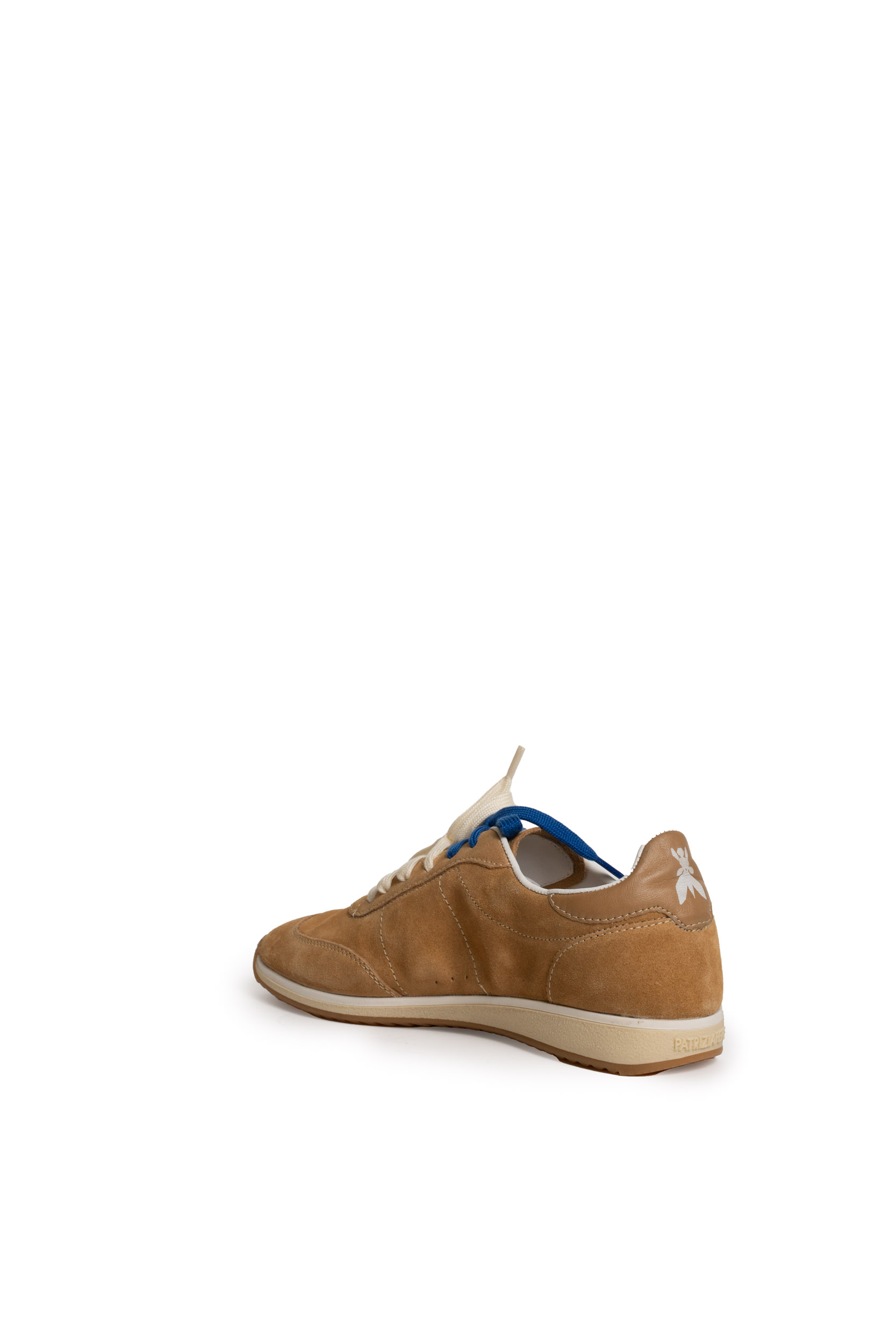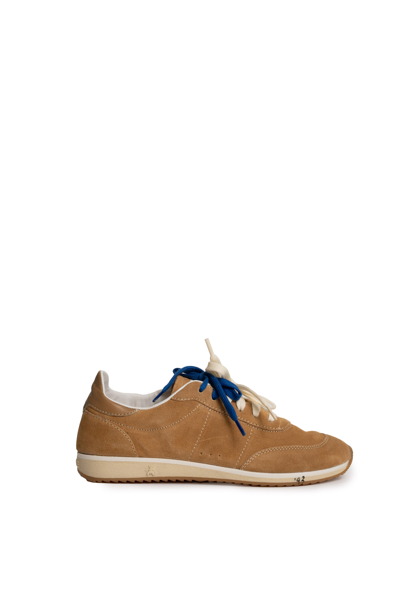 - Tomaia: In suede beige e cuciture tono su tono. Presentano doppio laccio in contrasto blu e bianco per un tocco dinamico.
