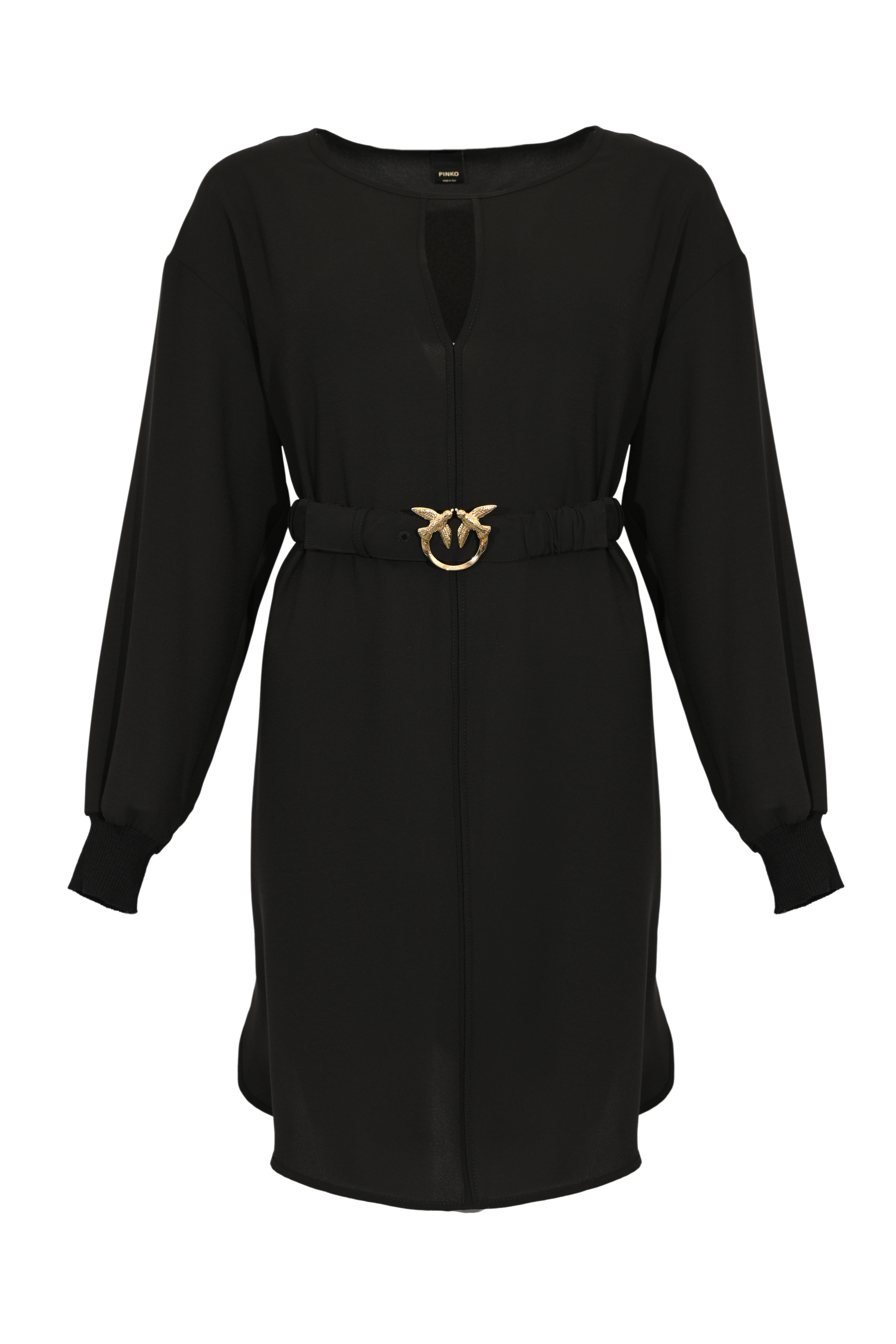 - Dettagli: cintura abbinata con fibbia Love Birds dorata, cuciture a vista, linea svasata
