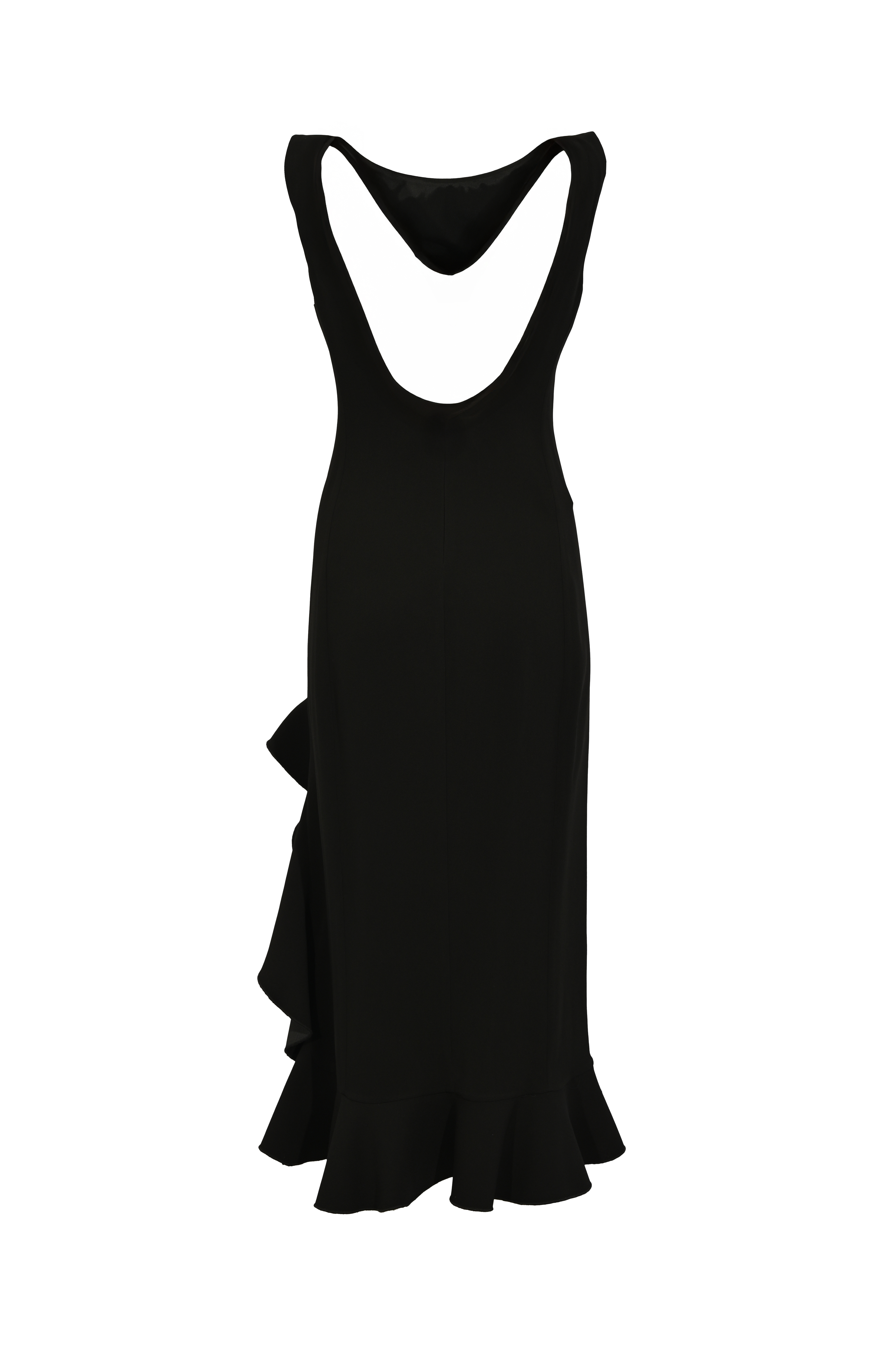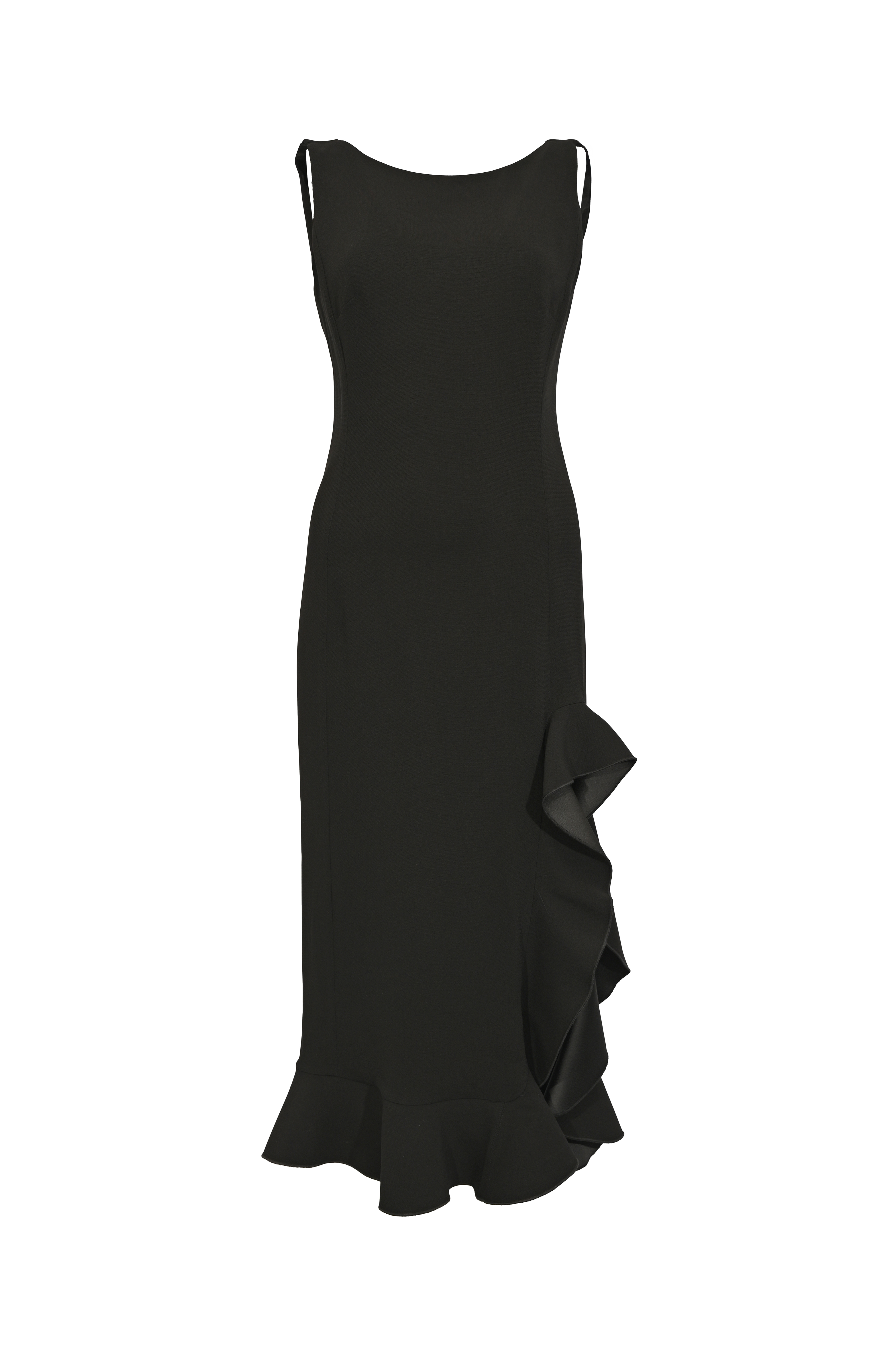 - Dettagli: volant asimmetrico sul lato e sul fondo, scollatura profonda sul retro, linea aderente che valorizza la silhouette