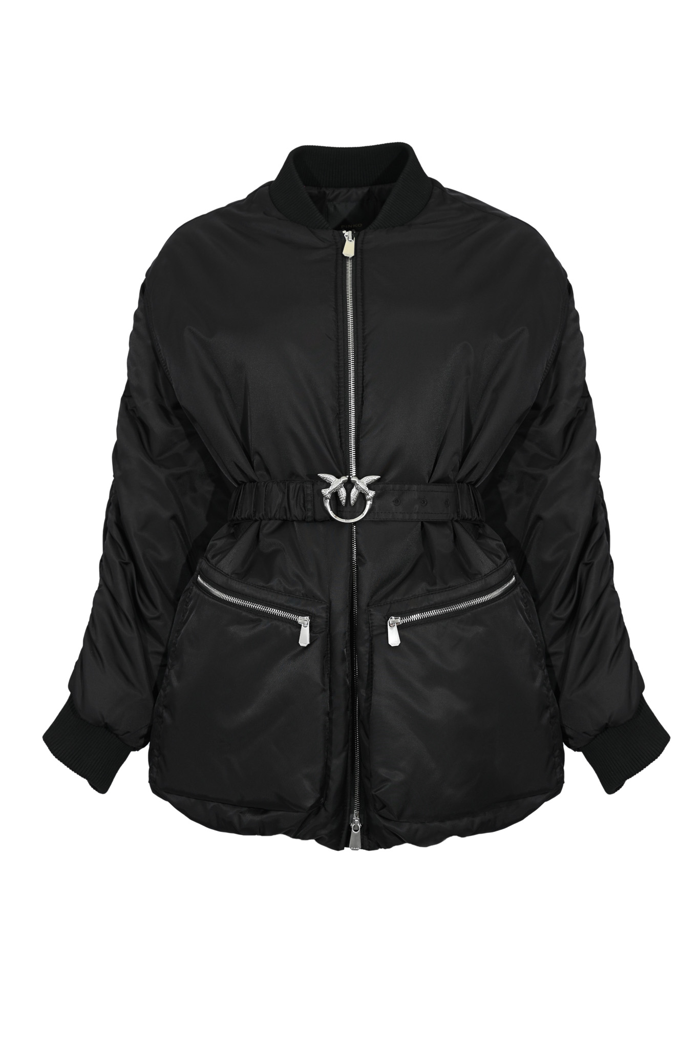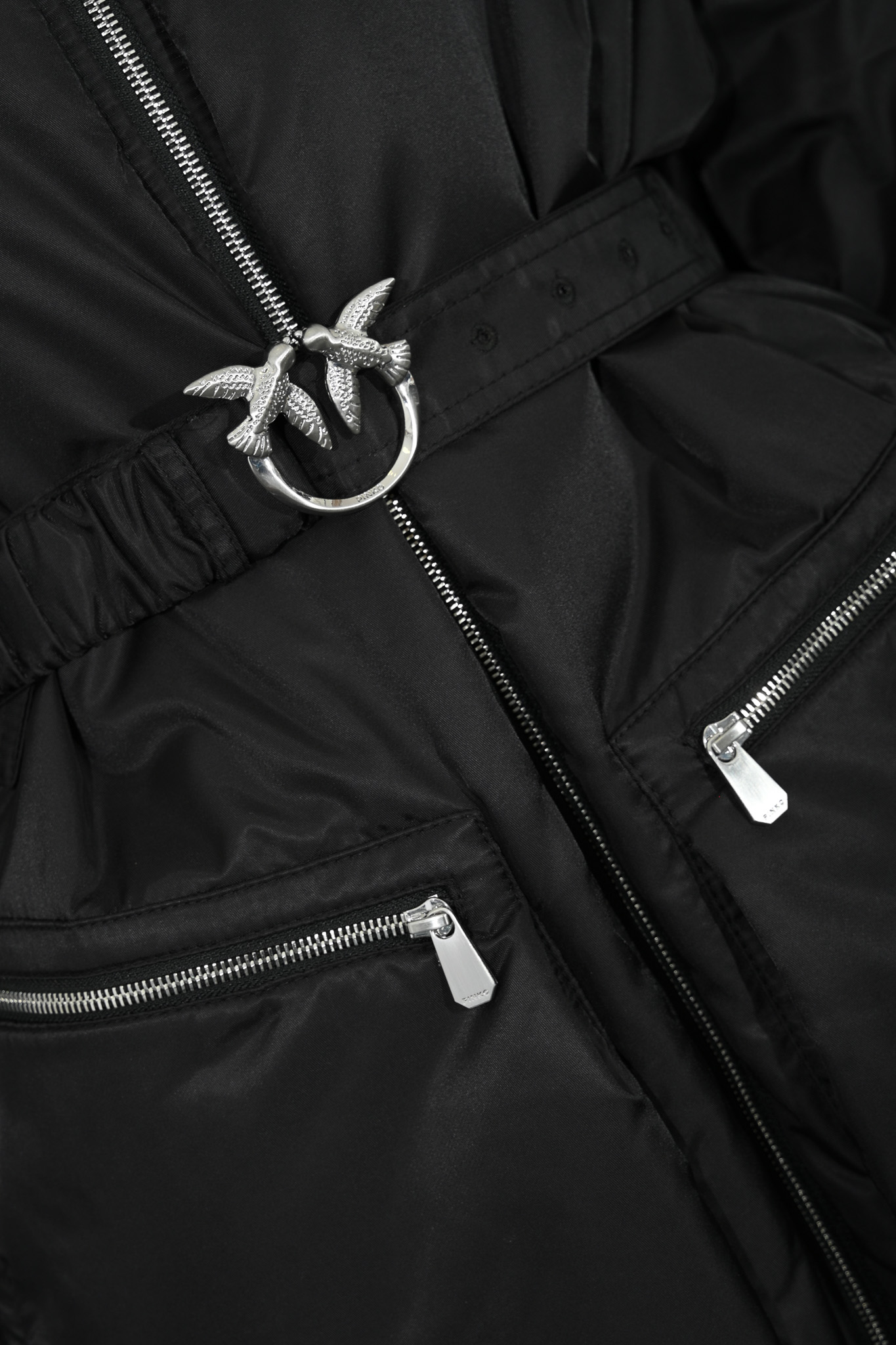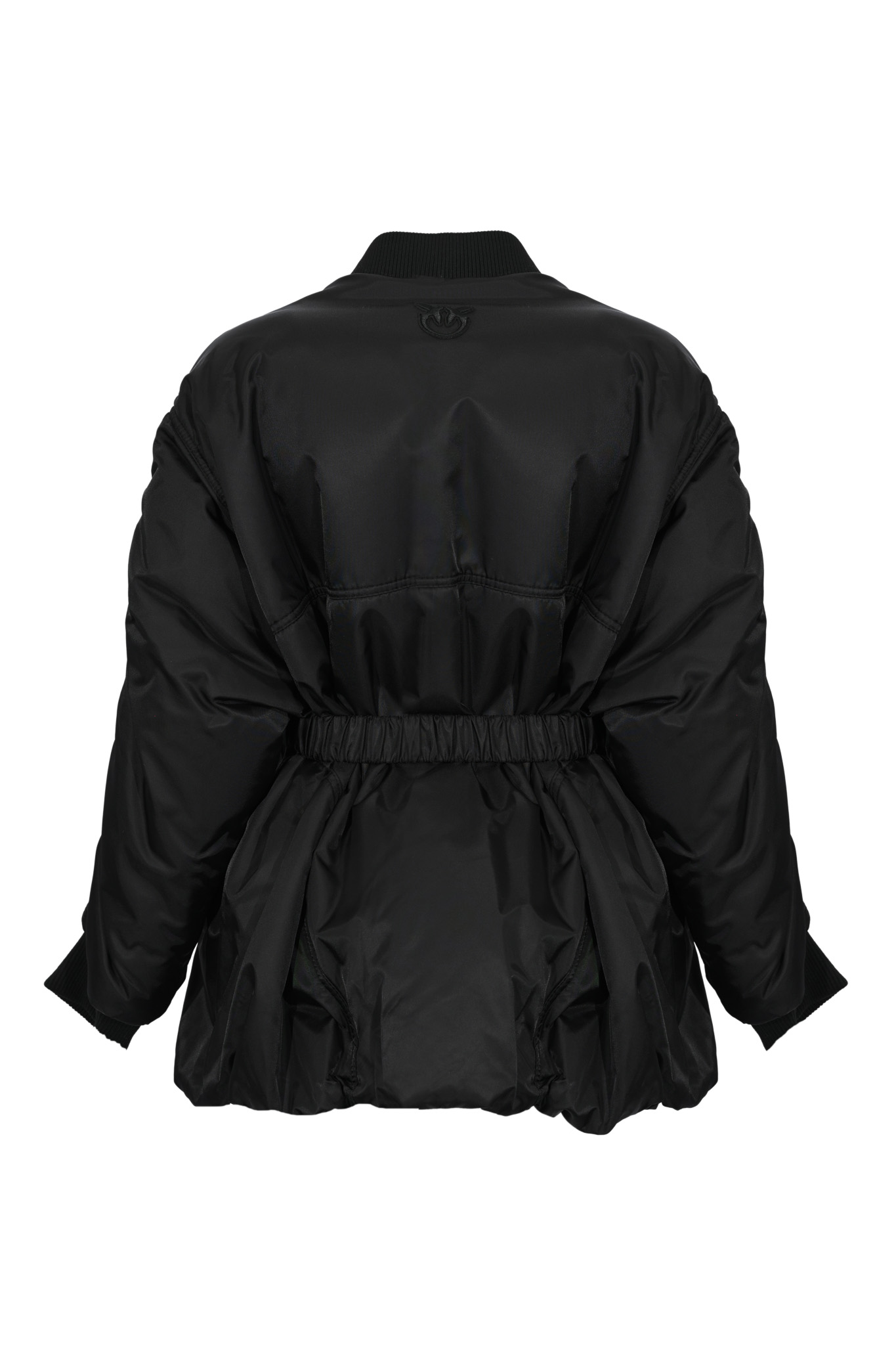 Bomber lungo da donna in raso tecnico Pinko, modello Bacon con cintura
