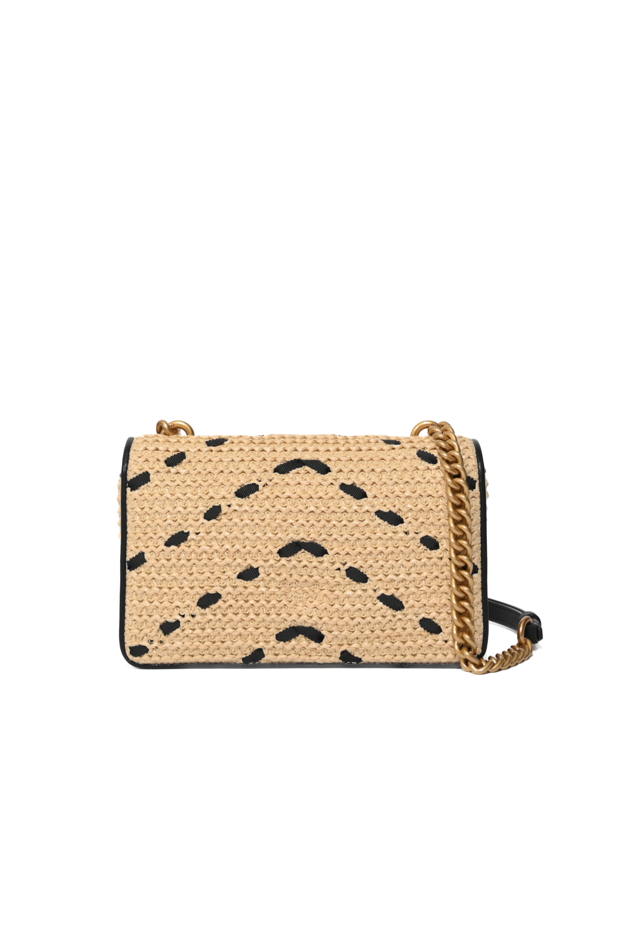 - Manici/Tracolla: tracolla a catena con inserto in pelle