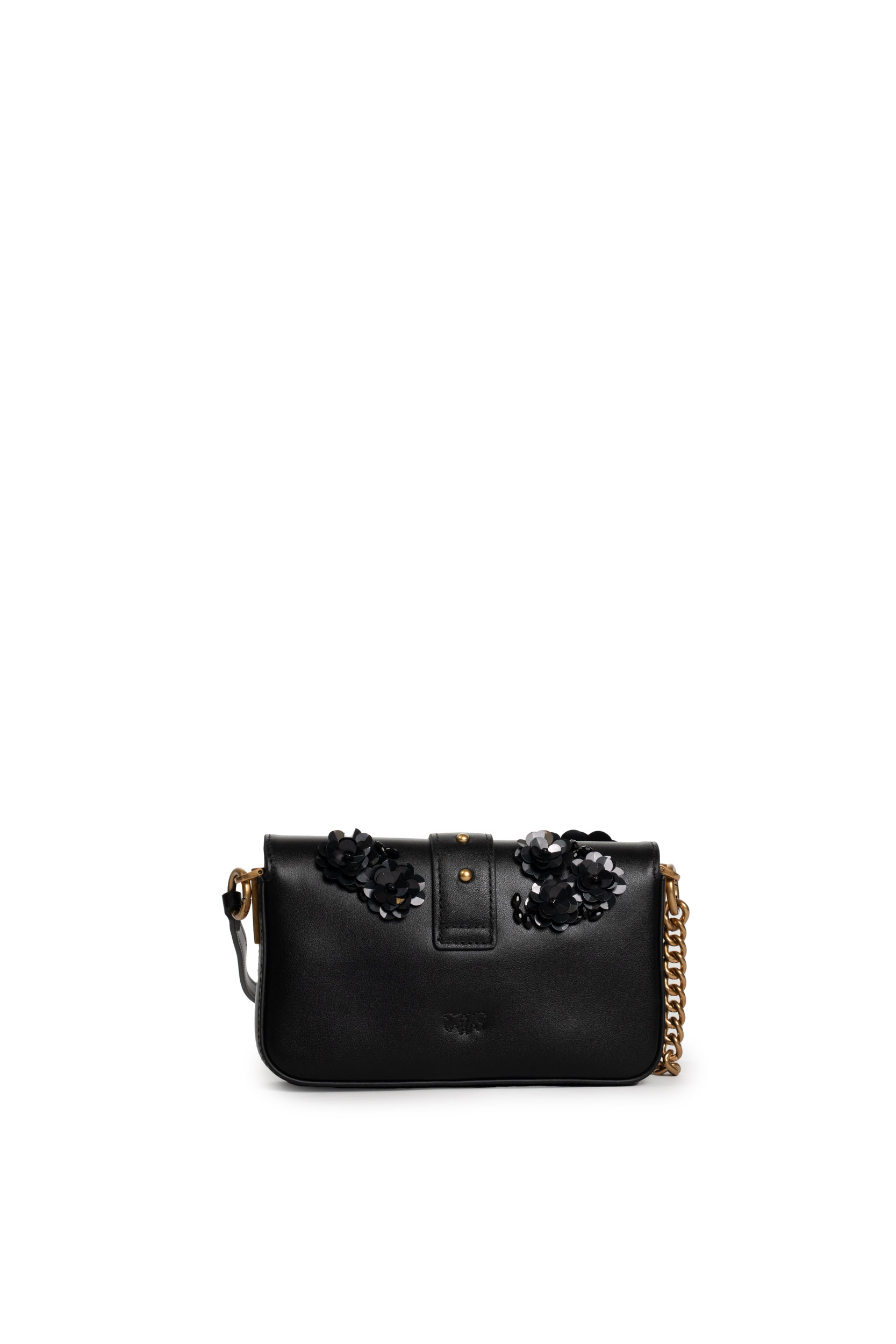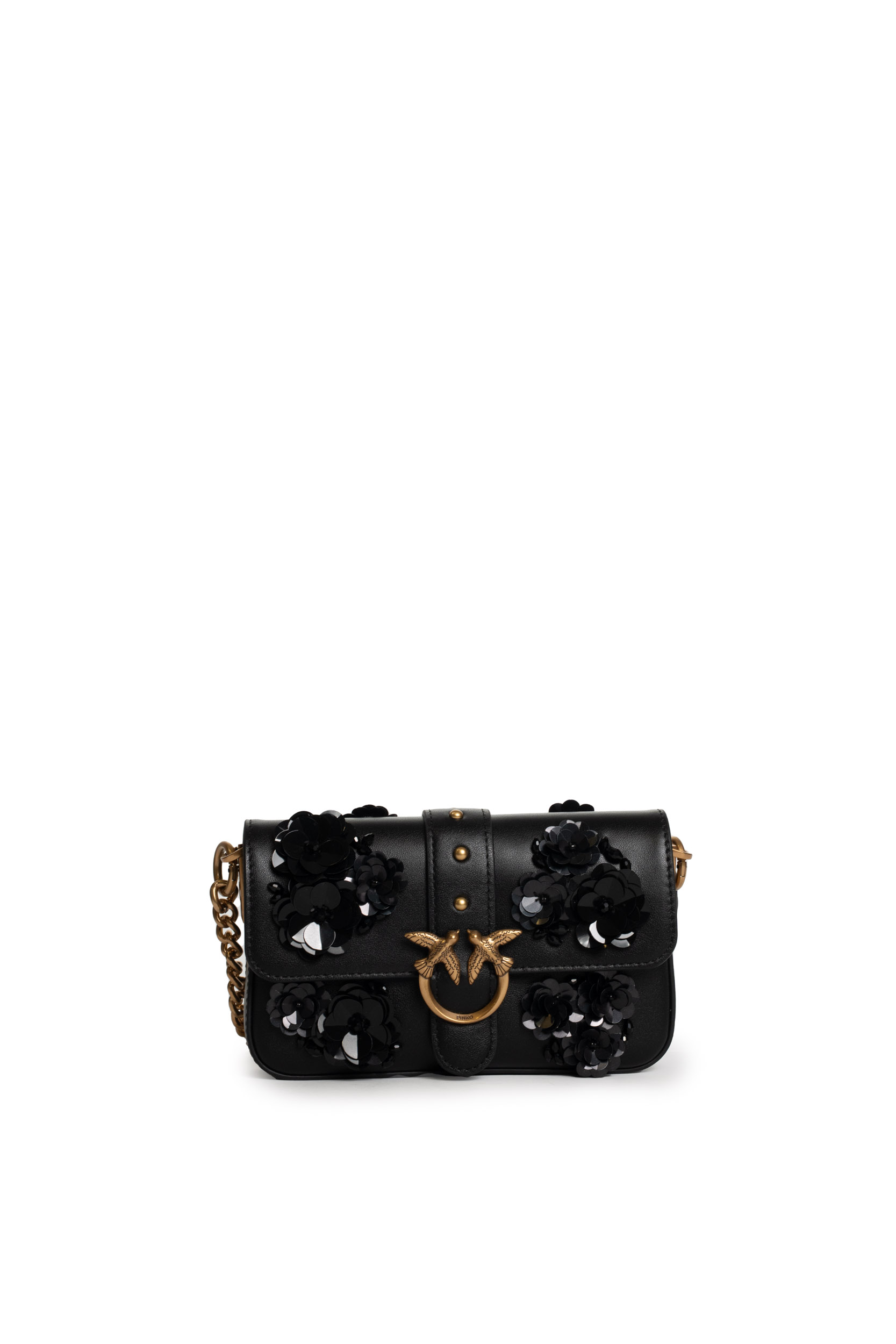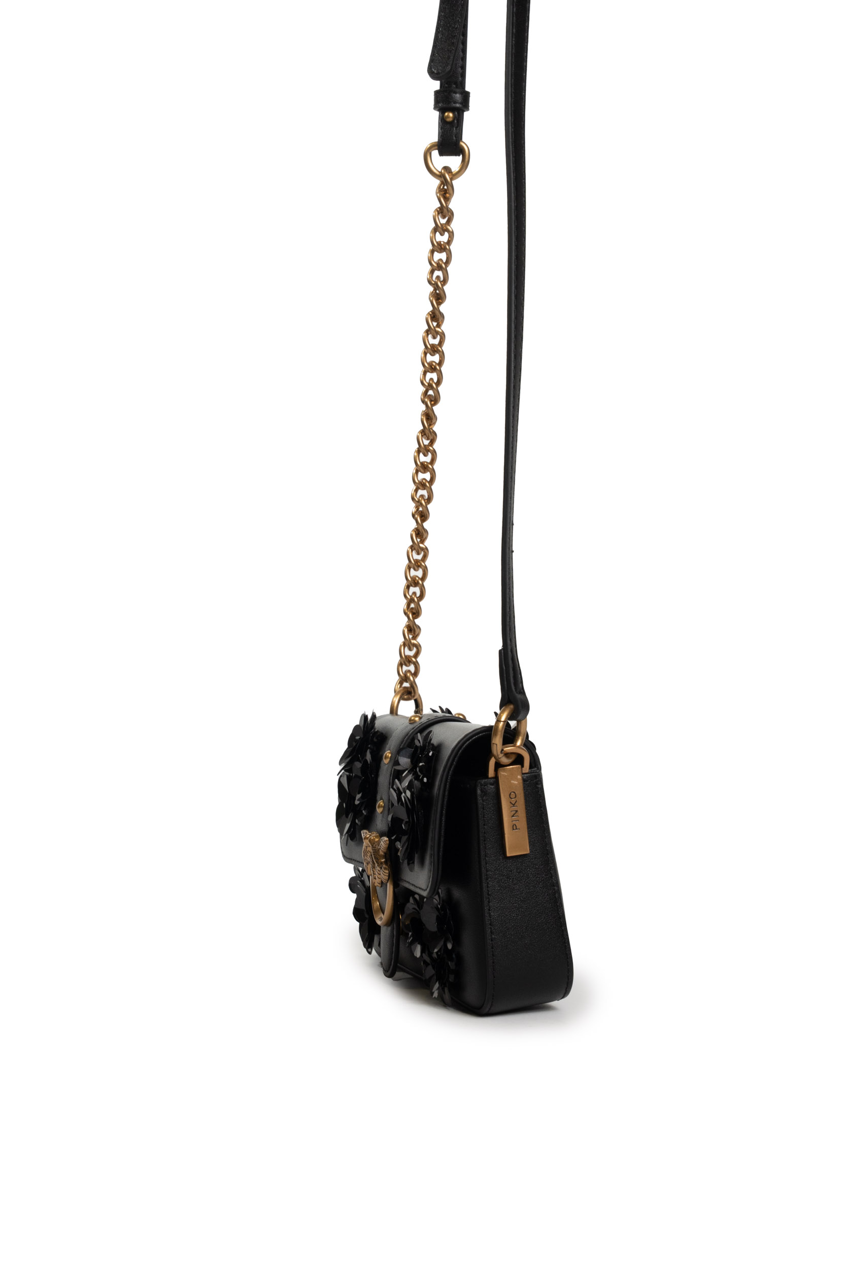 Borsa a spalla Baby Love Bag Slouchy in pelle con fiori gioiello, Pinko