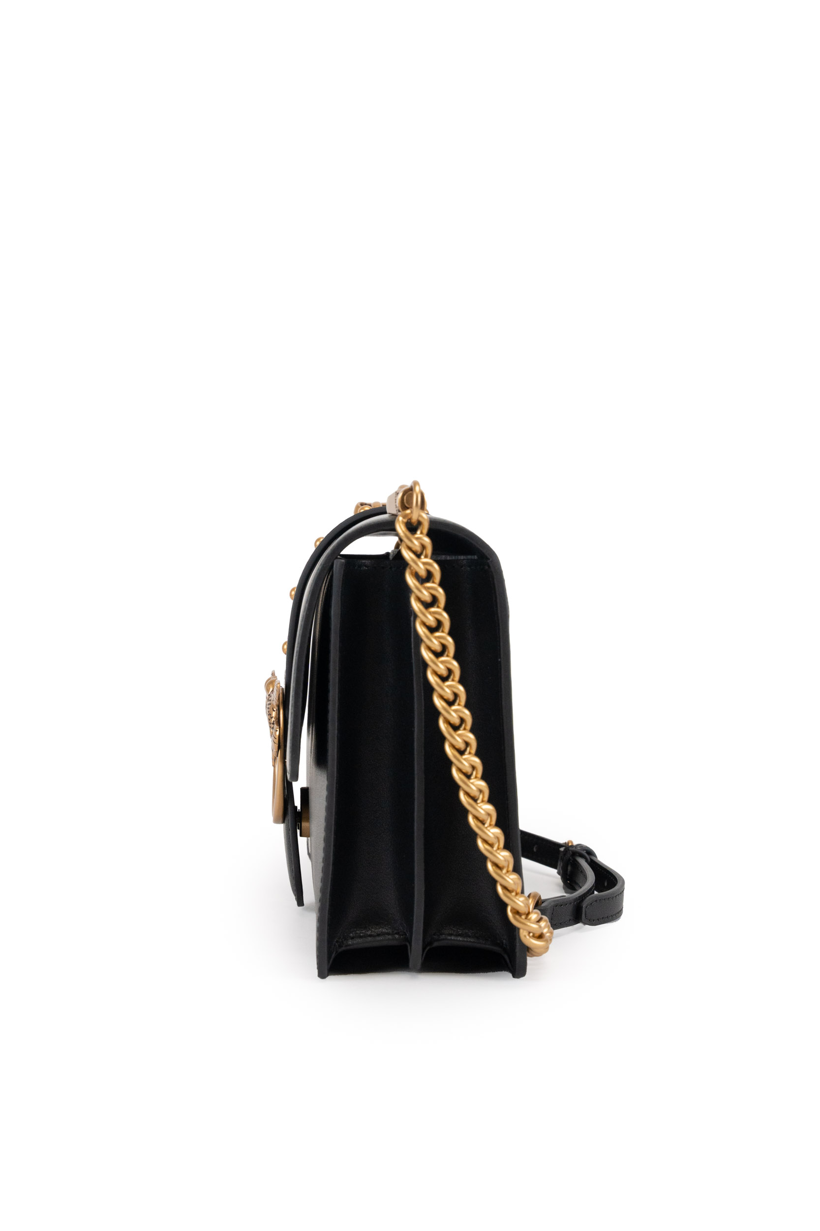 - Tracolla fissa in metallo e spallaccio in pelle regolabile