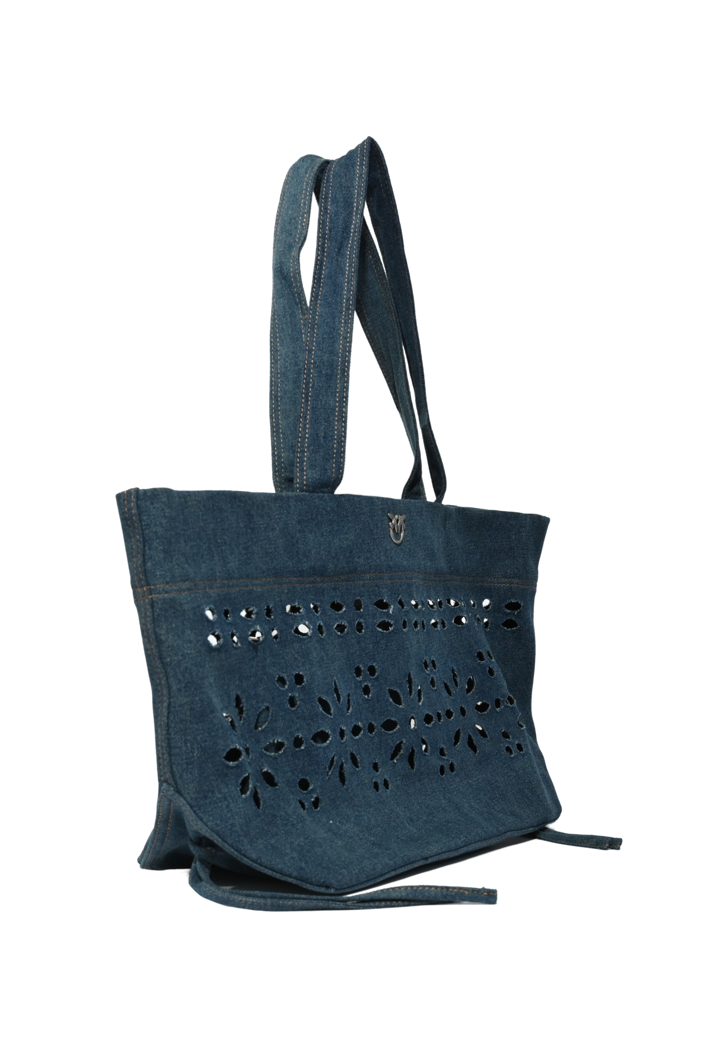 Borsa da donna in denim sangallo, Pinko, modello Cabas