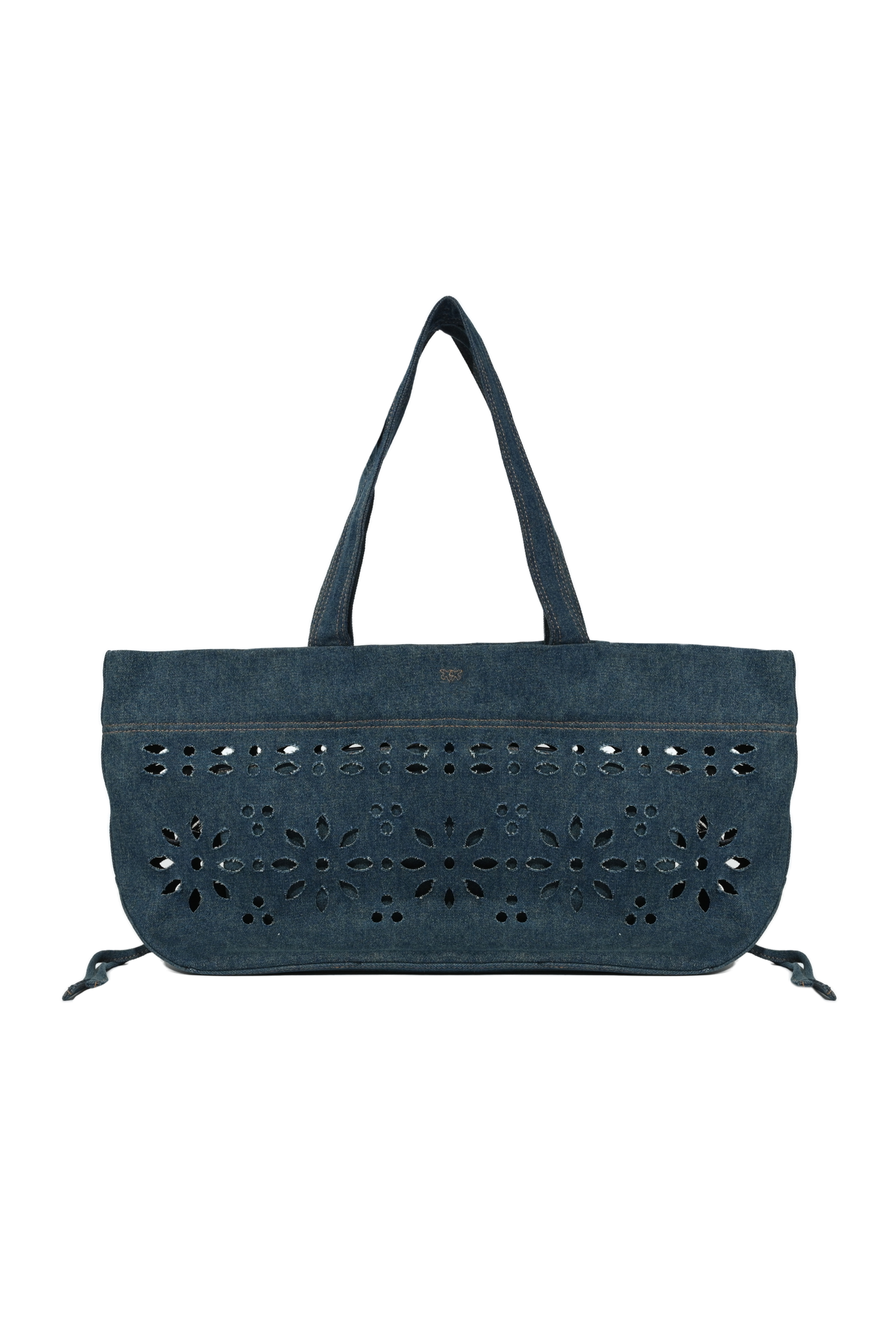 - Dettagli: lavorazione traforata floreale, logo metallico frontale, cuciture a vista