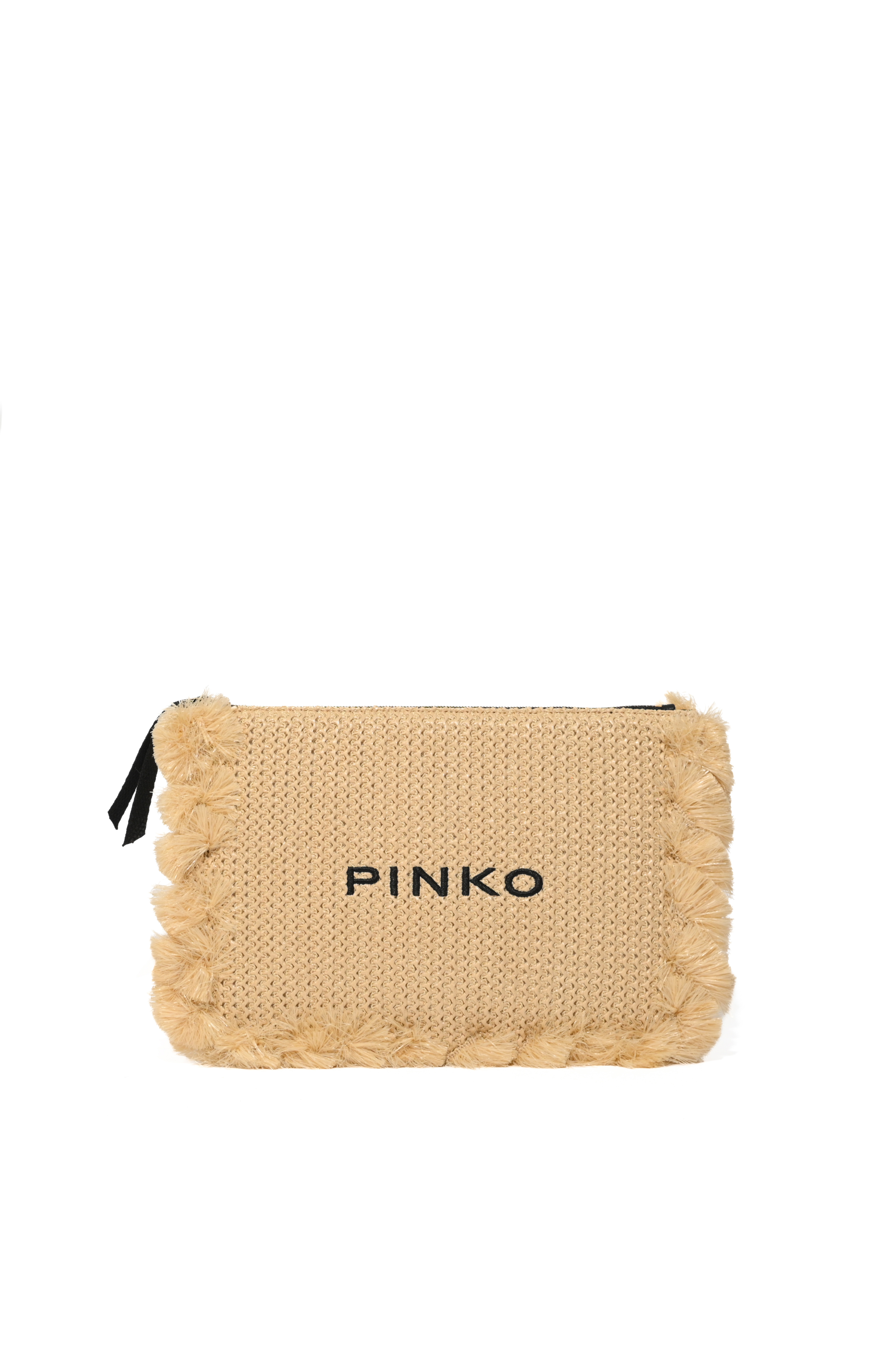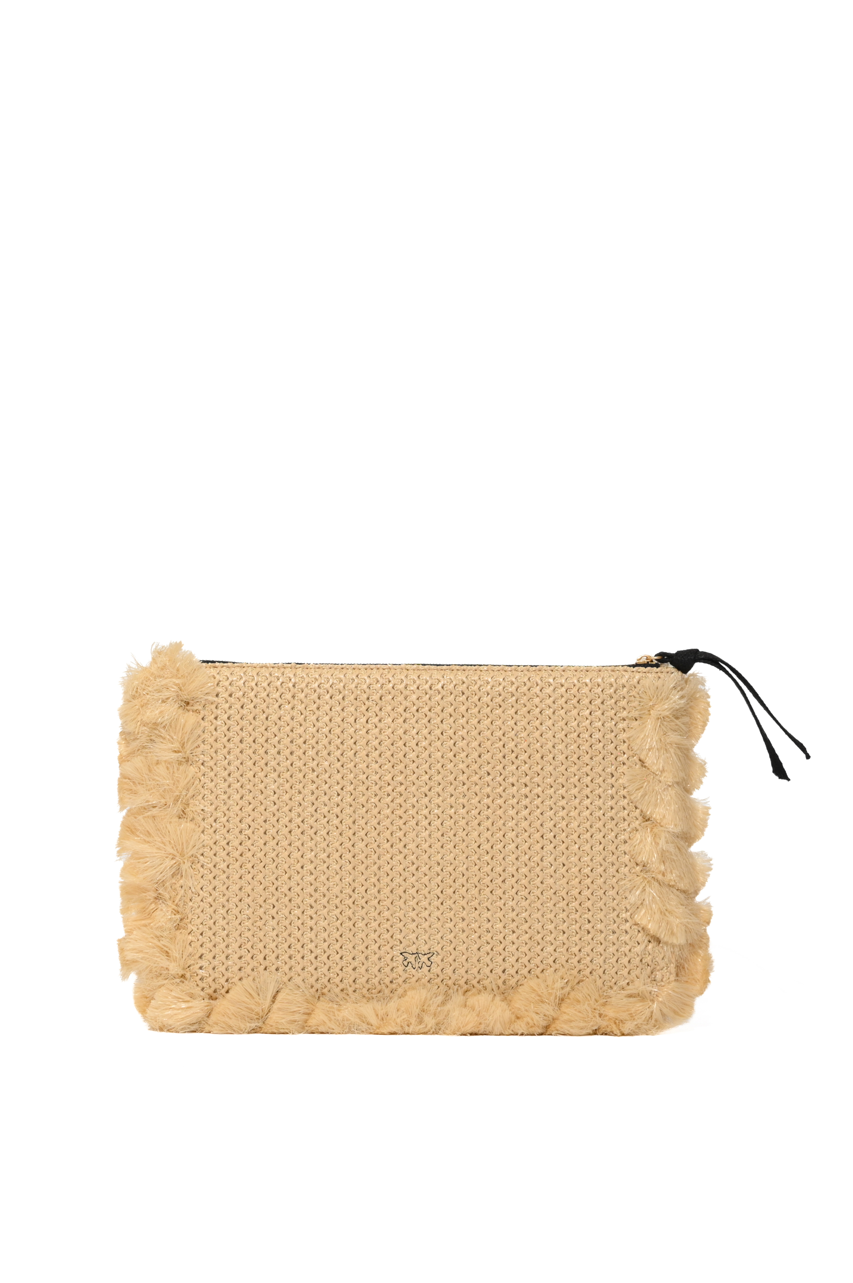 Bustina da donna in rafia, Pinko, modello Logo con nappine