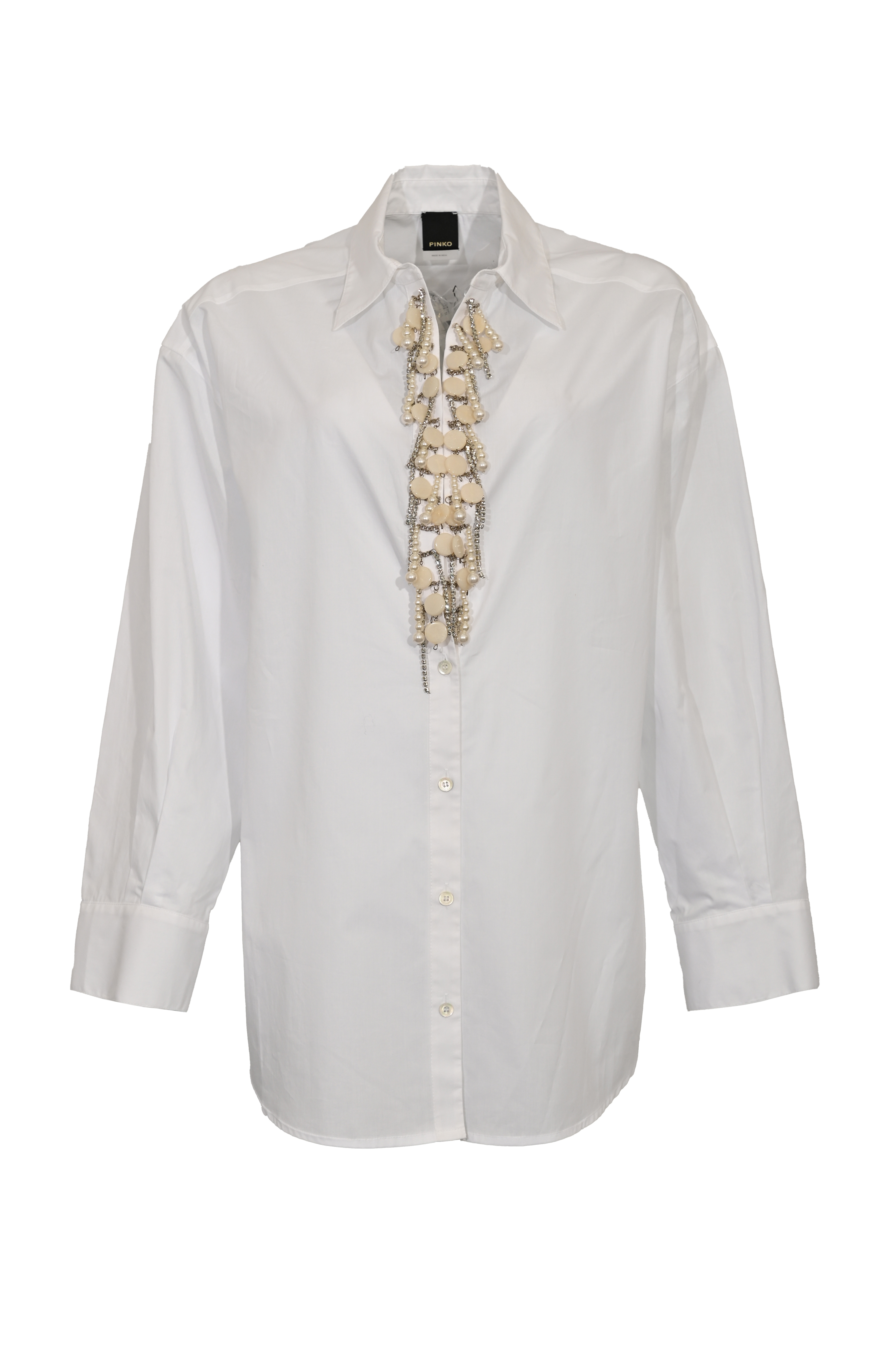 Camicia Capirai da donna in popeline di cotone con applicazioni gioiello, Pinko, modello Bianco