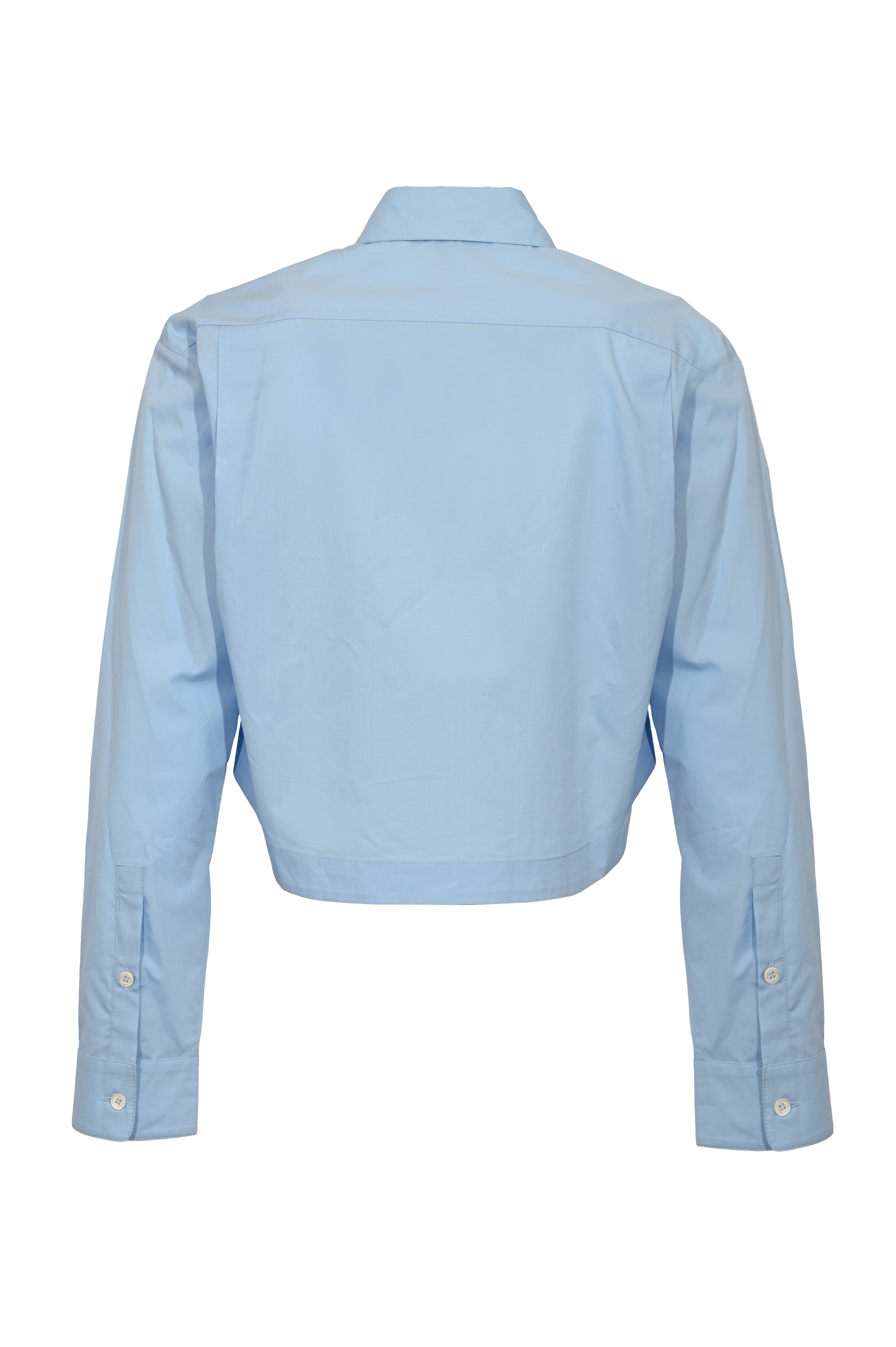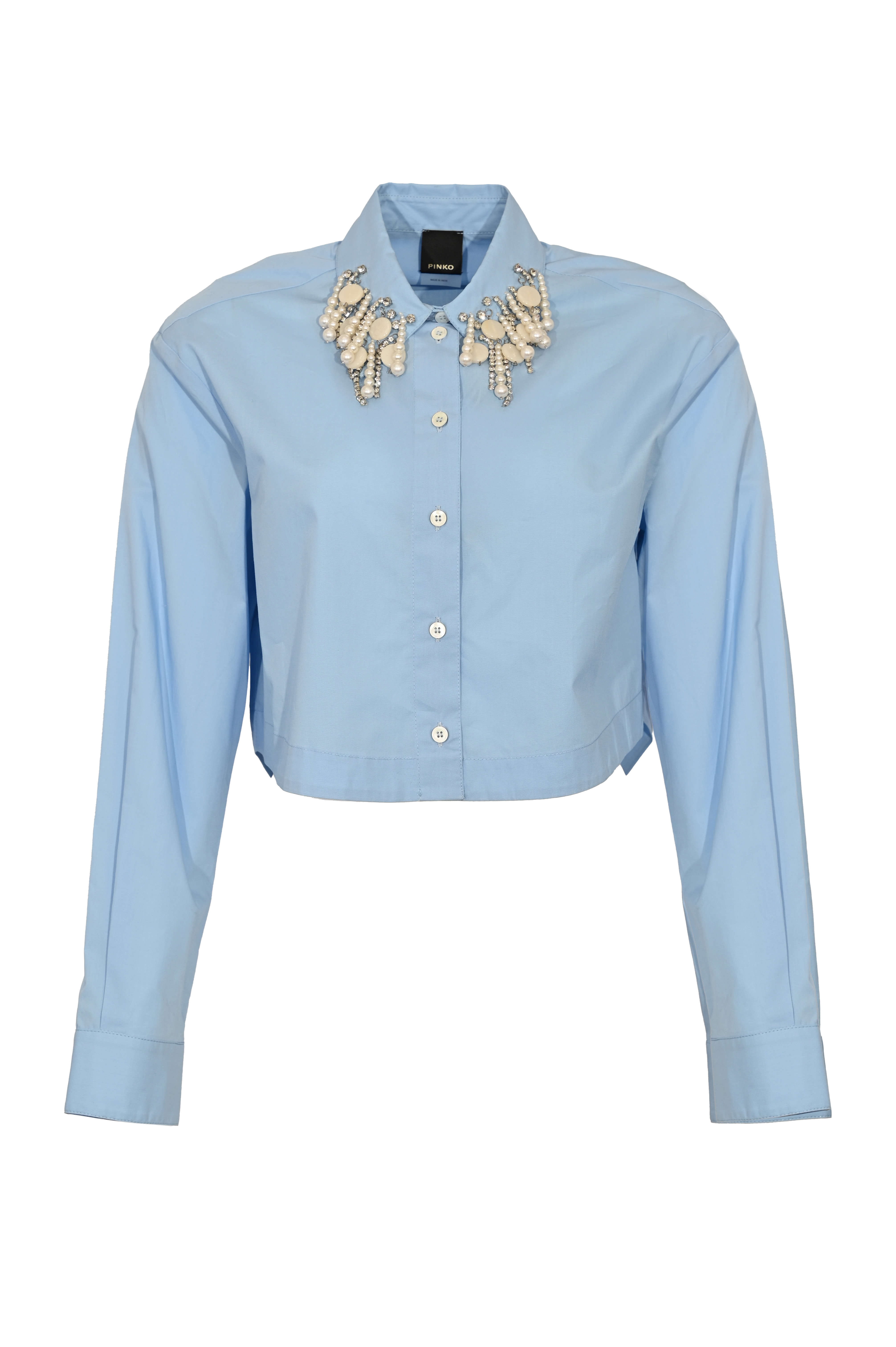 Camicia cropped Caffelatte da donna in popeline di cotone con applicazioni gioiello, Pinko