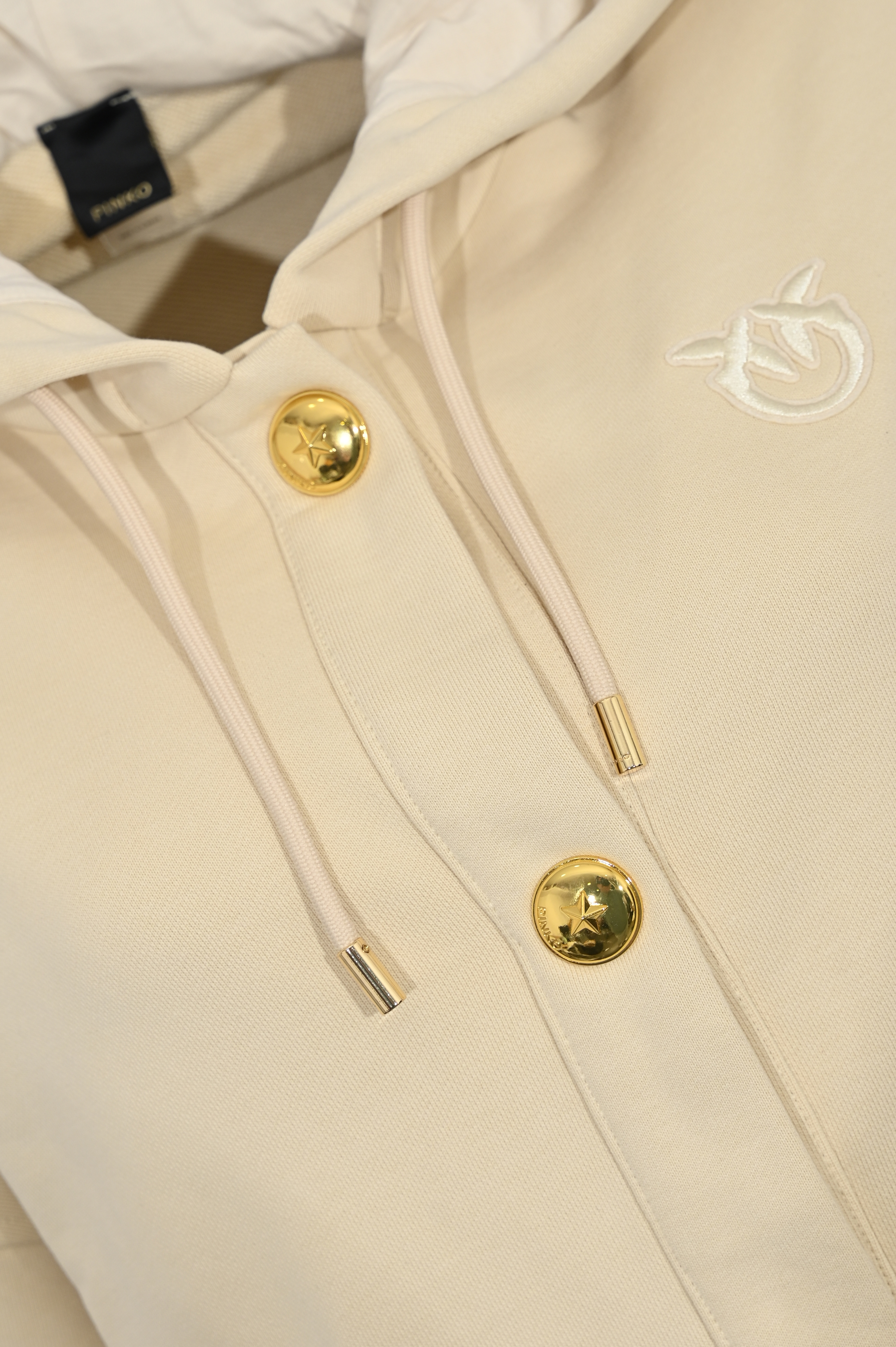 - Dettagli: logo ricamato tono su tono sul petto, bordi a costine su fondo e maniche, vestibilità morbida, bottoni metallici a contrasto