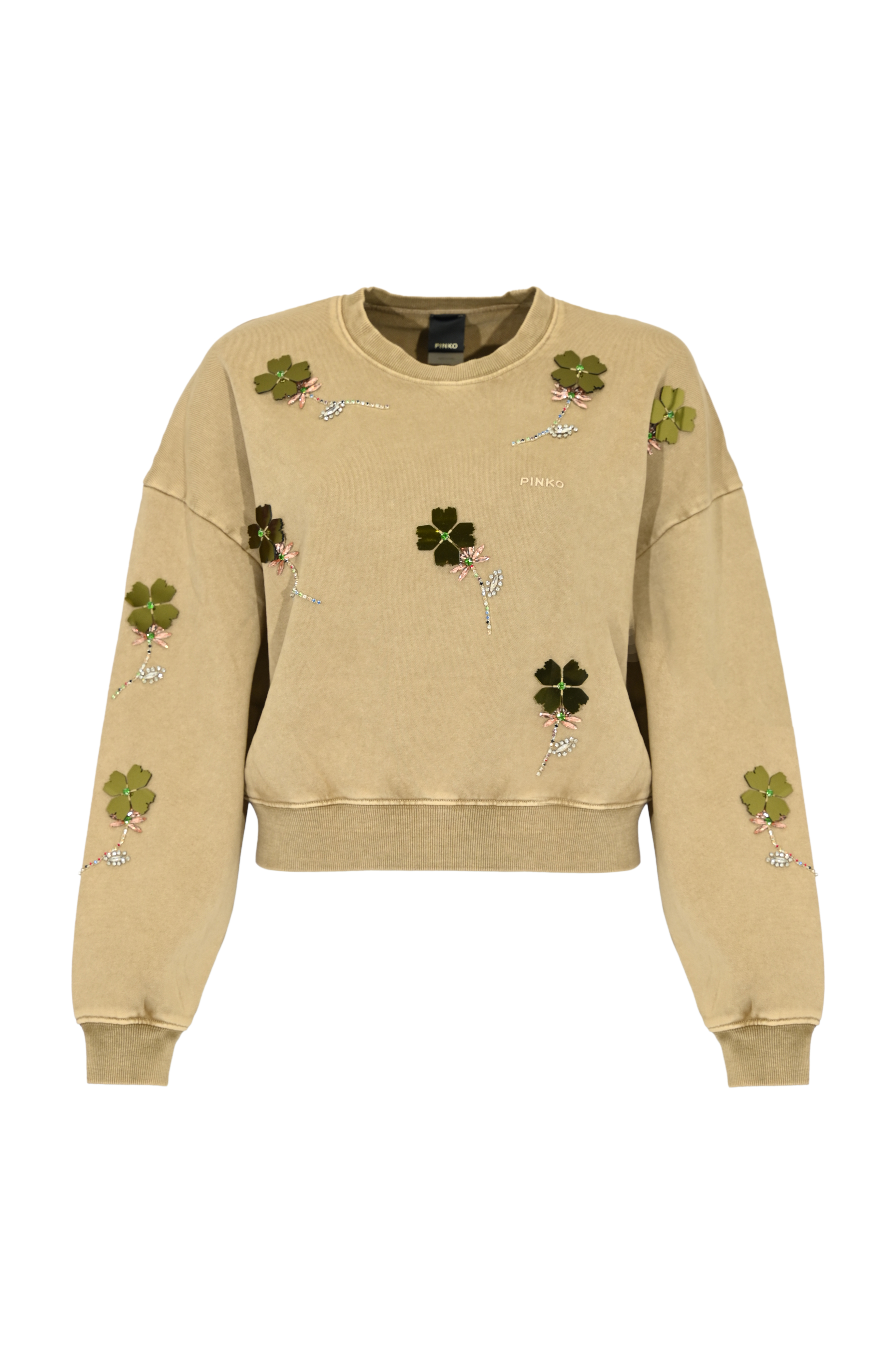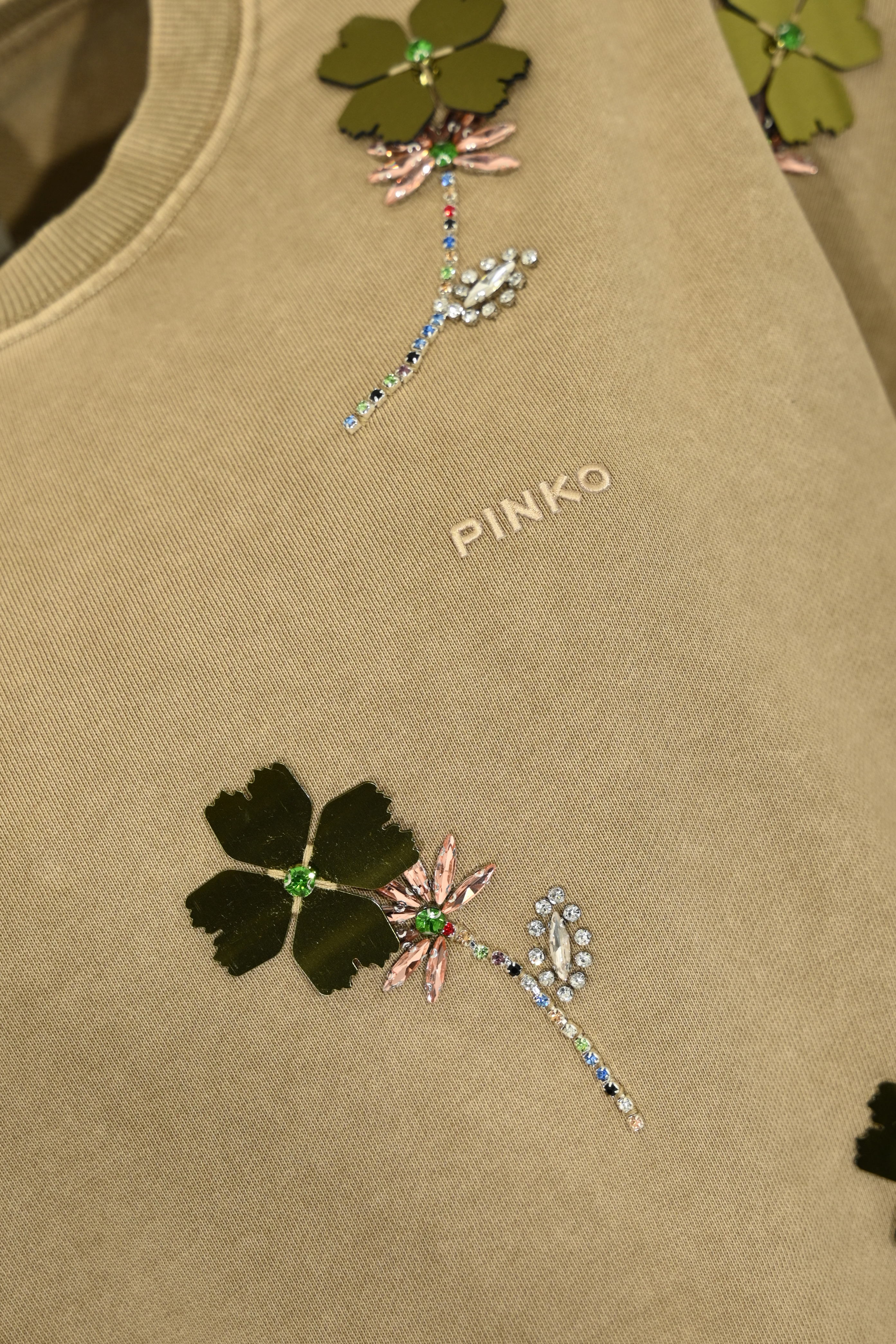 - Dettagli: ricami floreali con applicazioni decorative, logo Pinko ricamato sul davanti, fondo elasticizzato