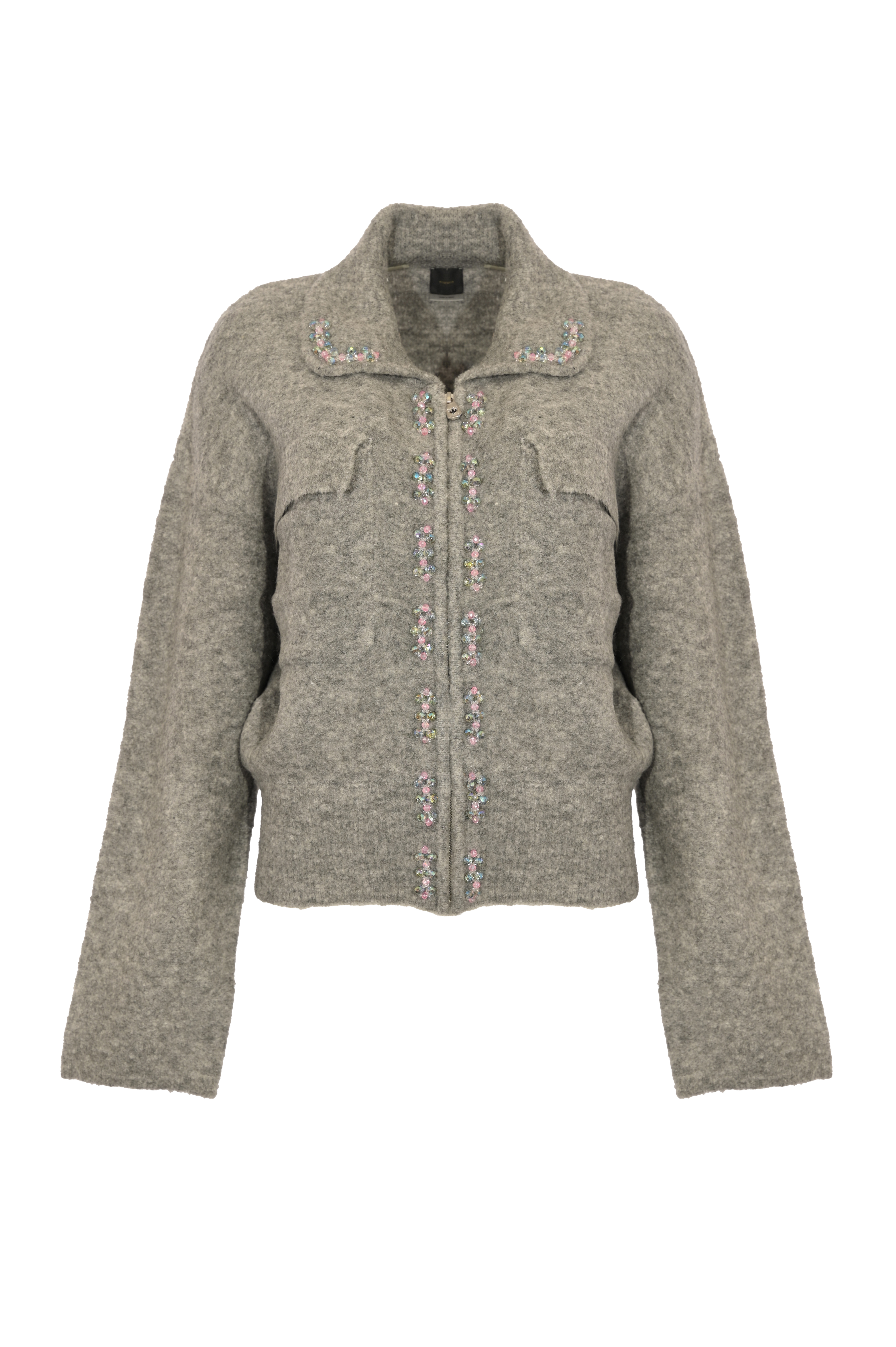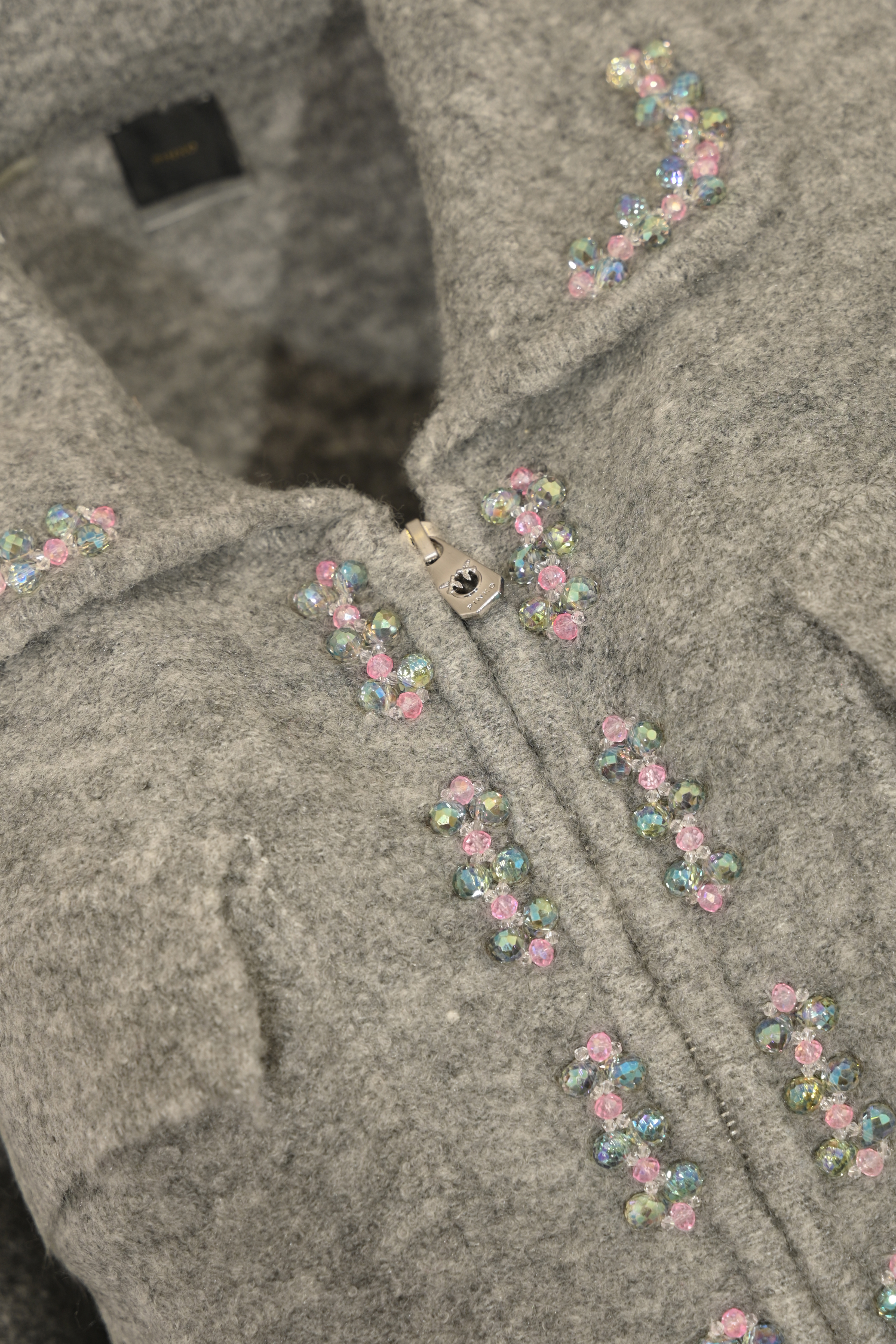 - Dettagli: ricamo gioiello lungo labbottonatura e sul colletto, texture morbida e calda, design corto e strutturato