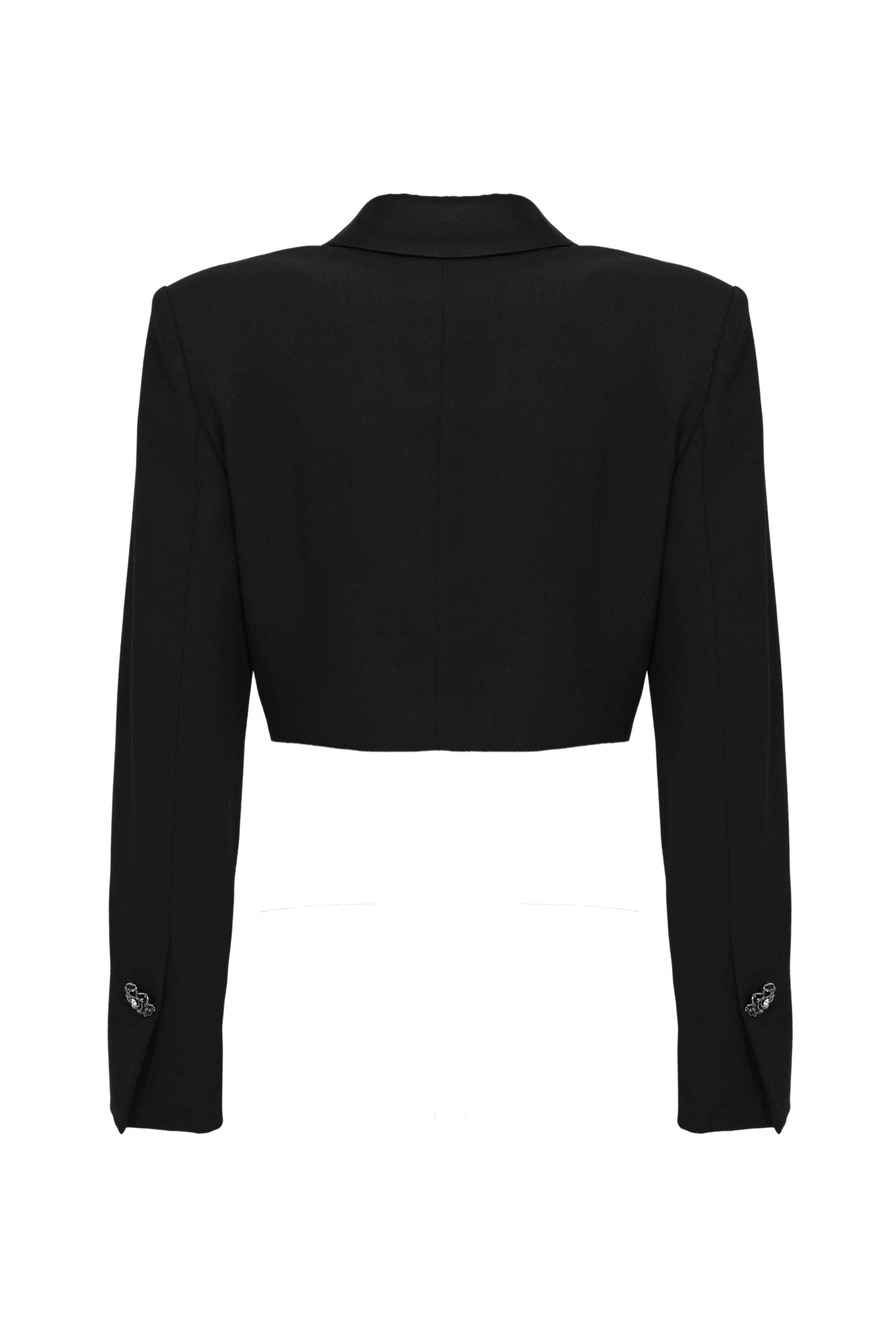 - Dettagli: linea cropped spencer, bottone gioiello decorativo sui polsini