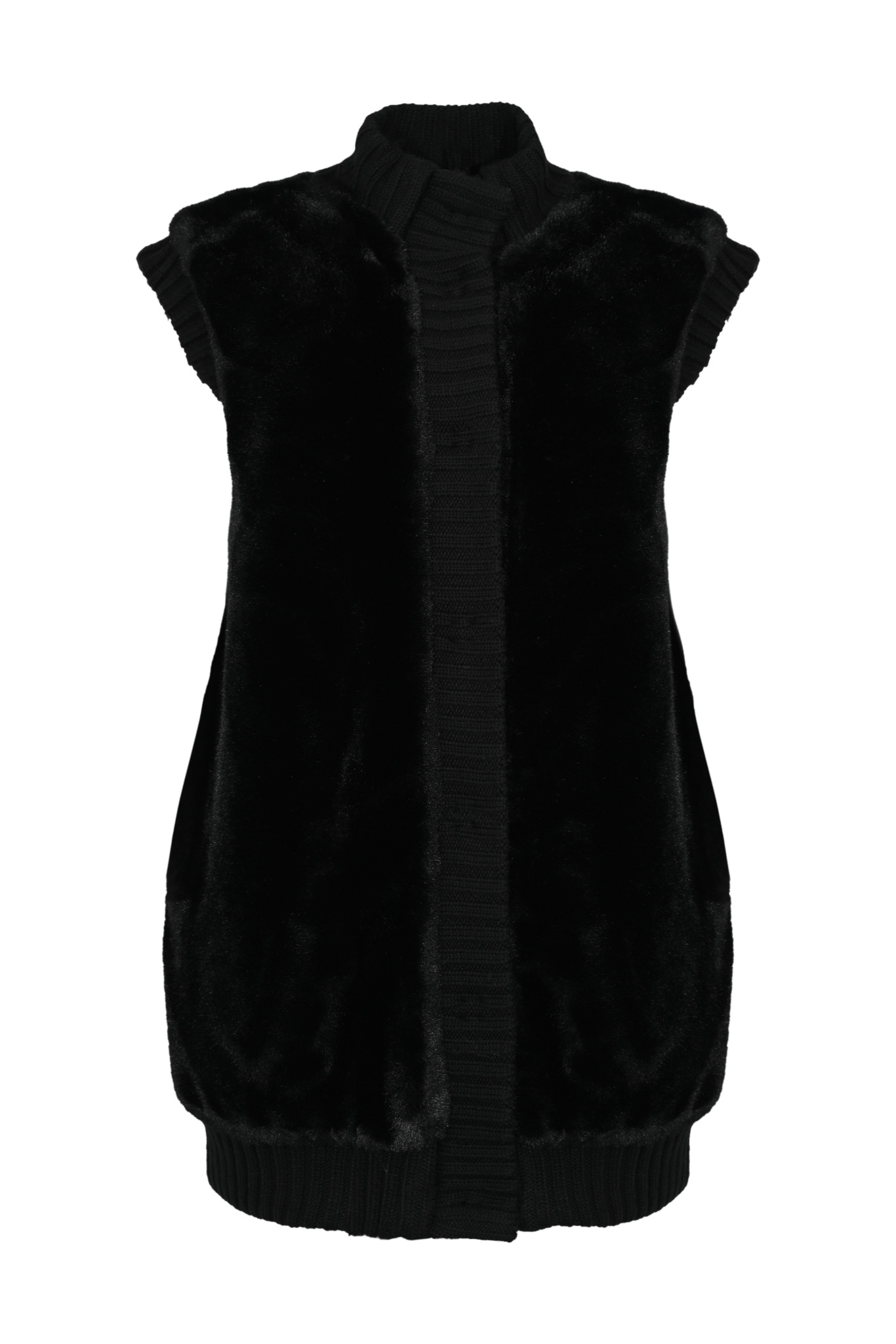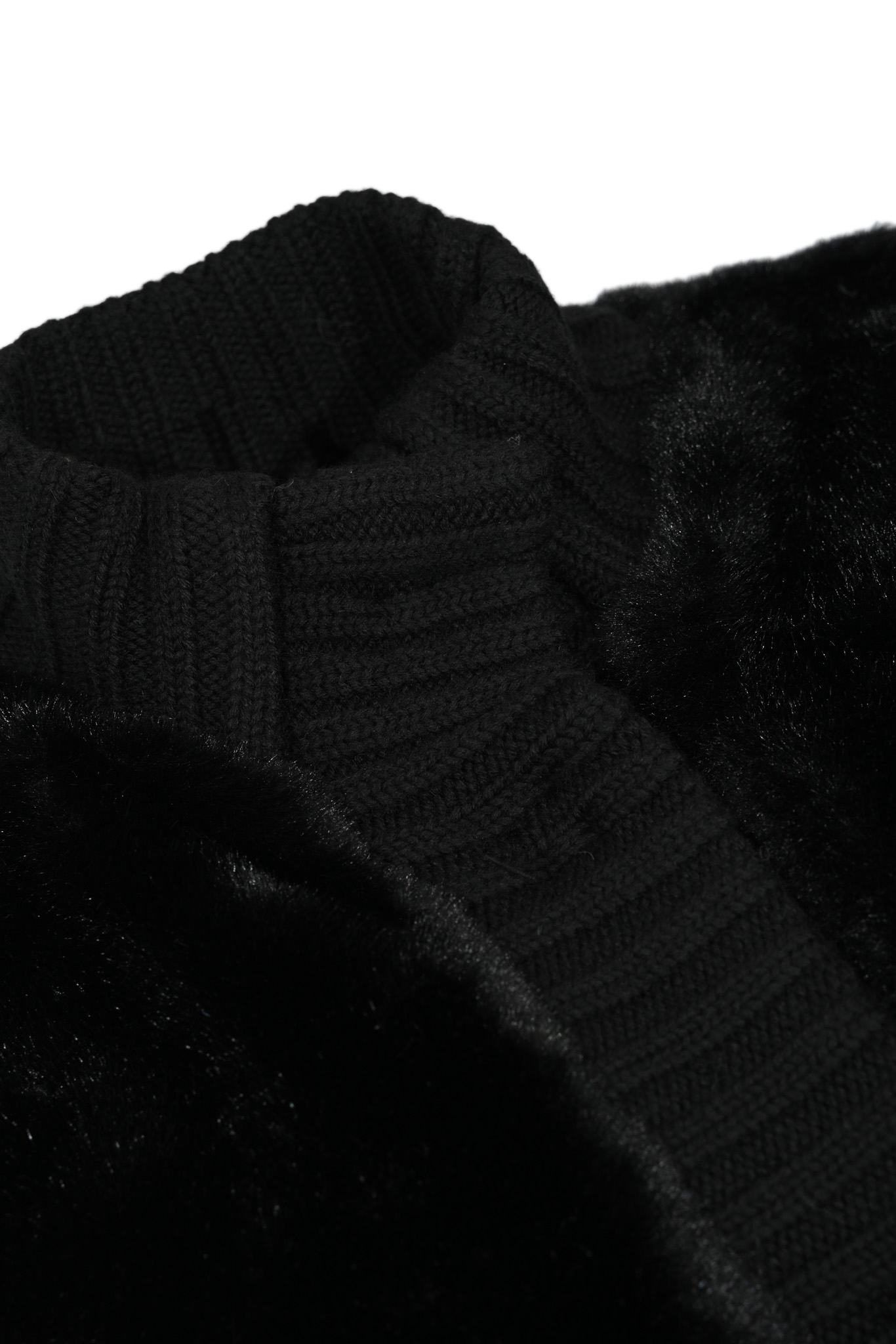- Dettagli: Corpo in pelliccia sintetica morbida con profili in maglia; bordi e fondo a coste elasticizzate; interno rifinito in maglia tono su tono