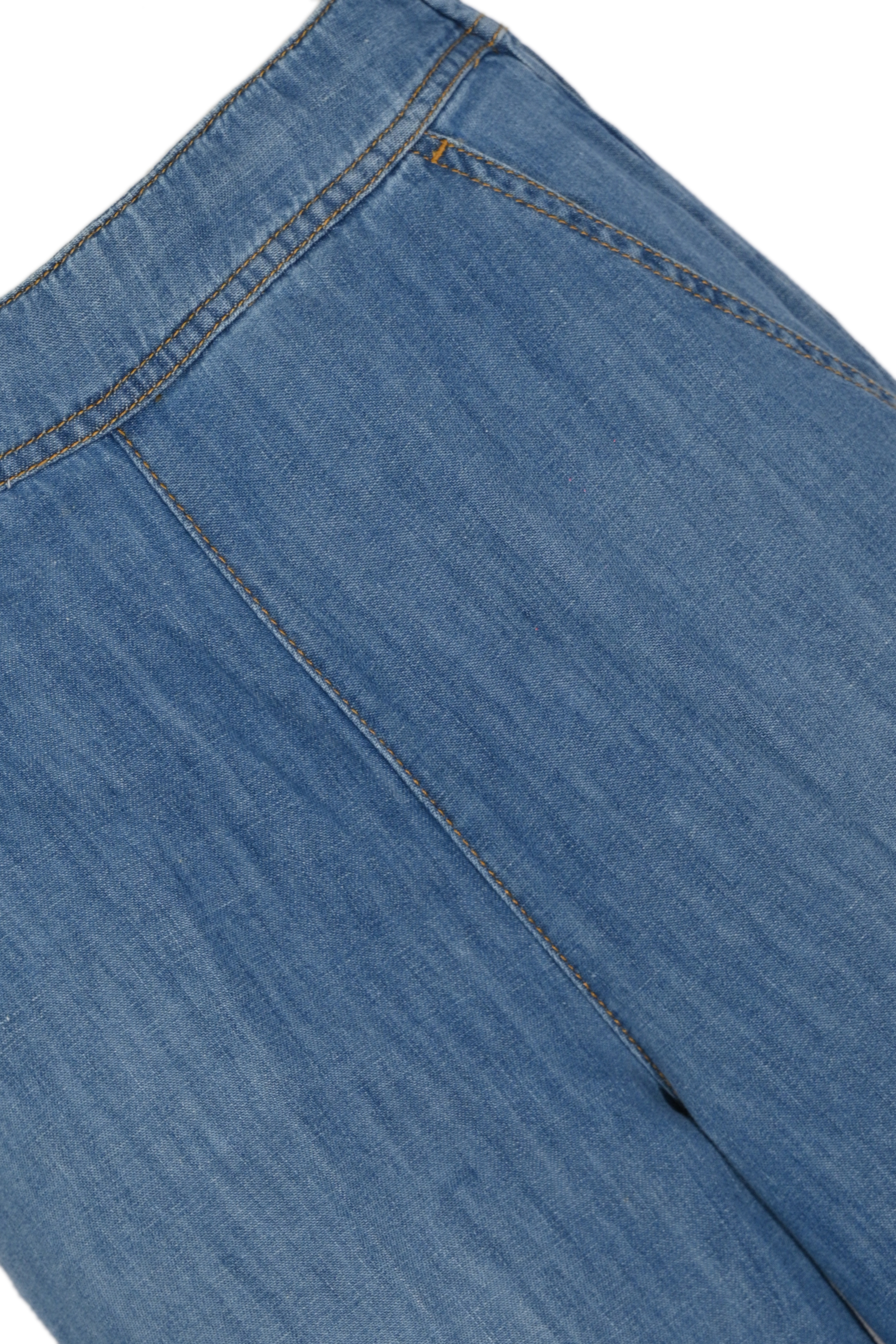 - Tessuto: denim leggero in misto lino e cotone
