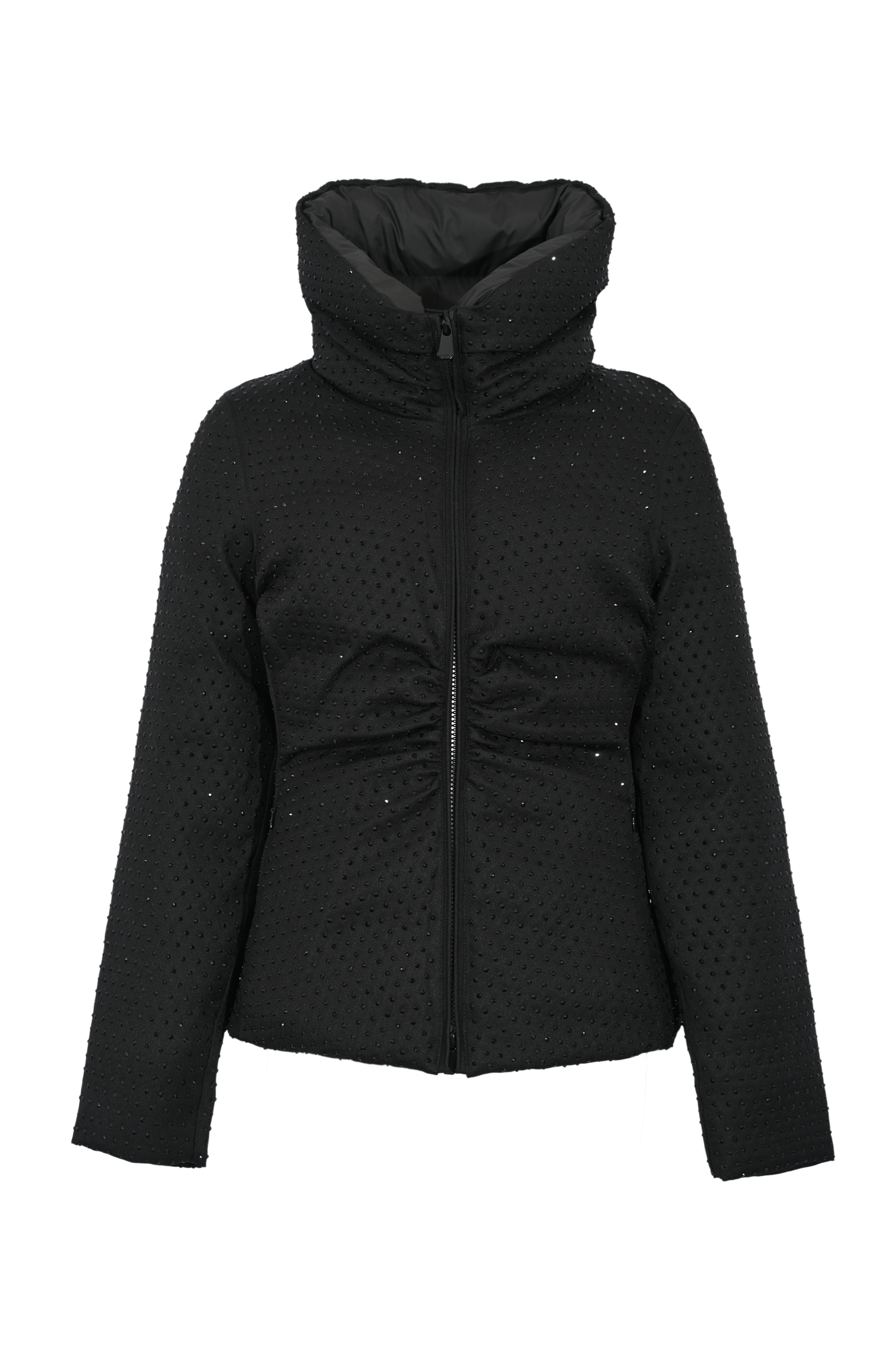 - Dettagli: lavorazione trapuntata leggera, effetto luminoso grazie agli strass, arricciatura centrale davanti
