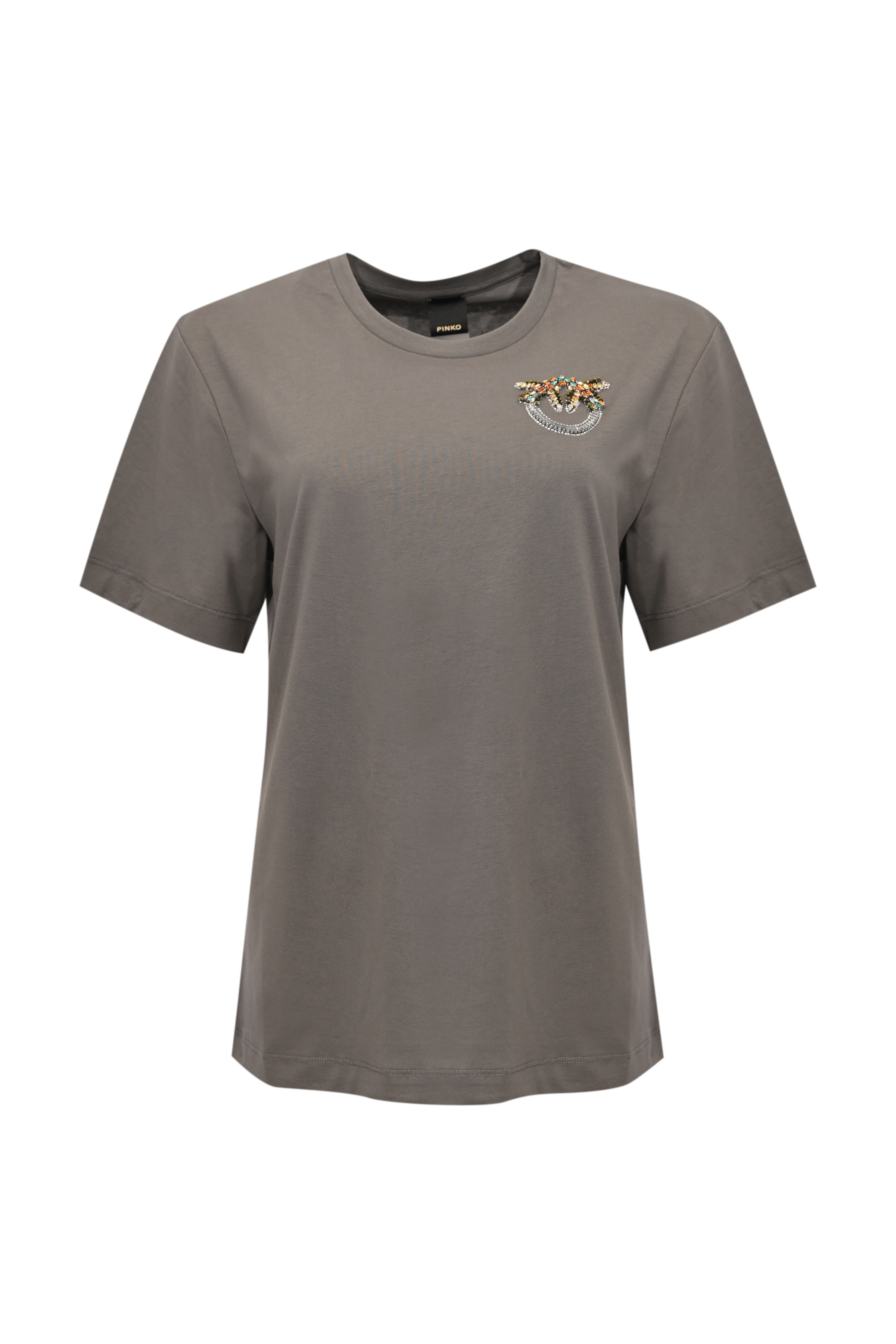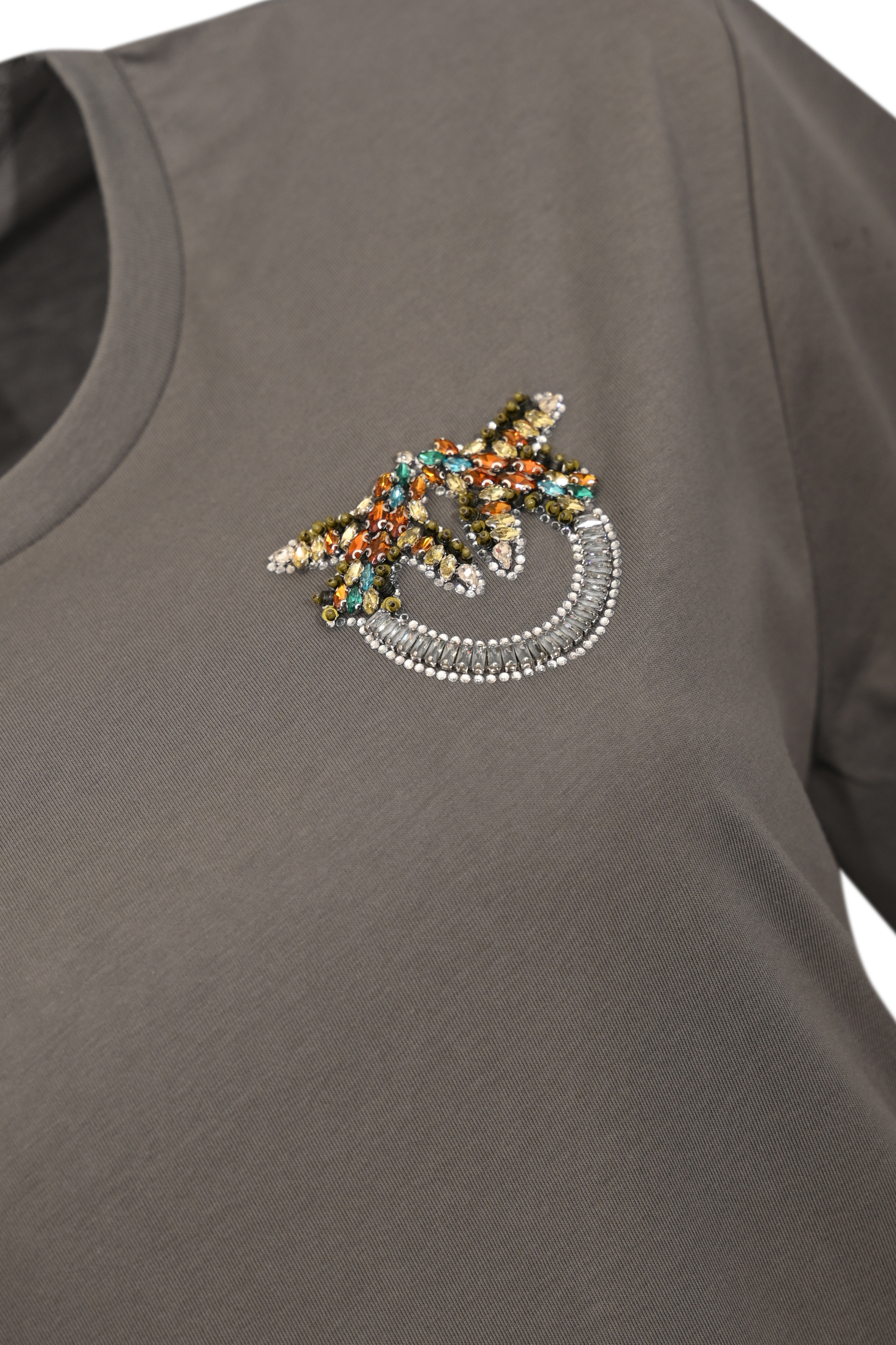 T-shirt da donna in jersey di cotone, Pinko, modello con ricamo gioiello