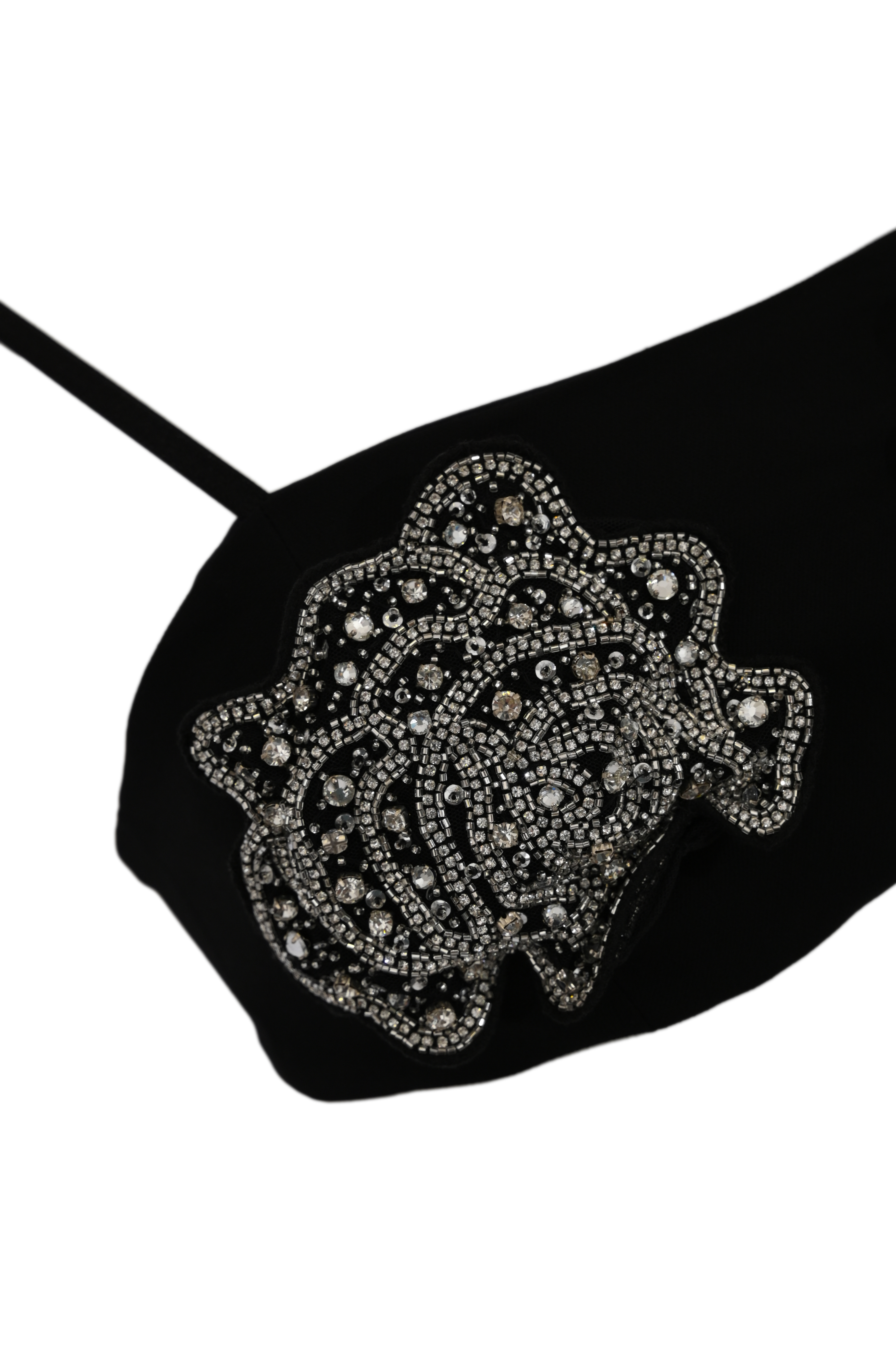 - Dettagli: applicazioni di rose gioiello ricamate sul davanti