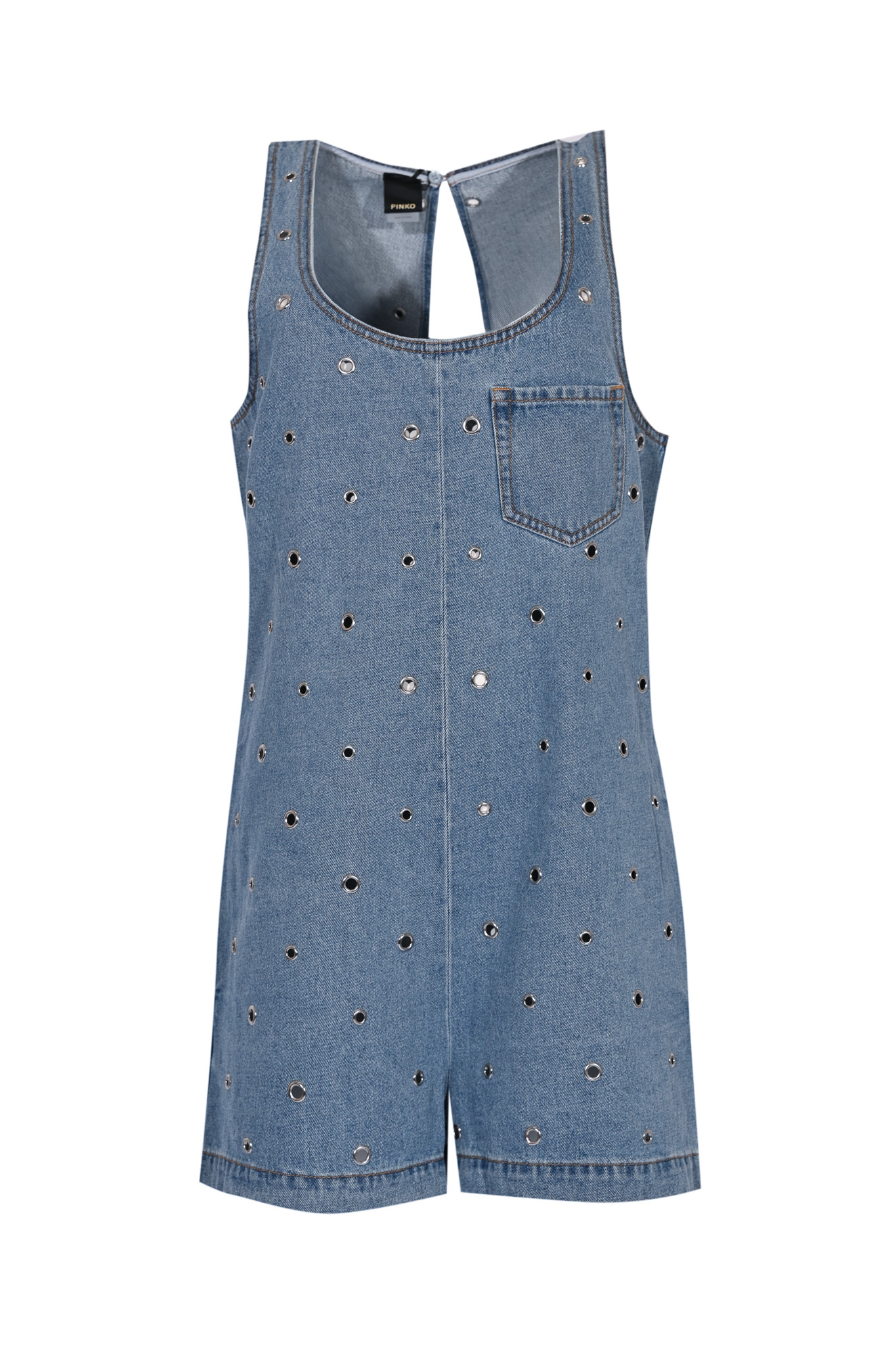 Tuta corta Viaggio in denim con borchie traforate, Pinko