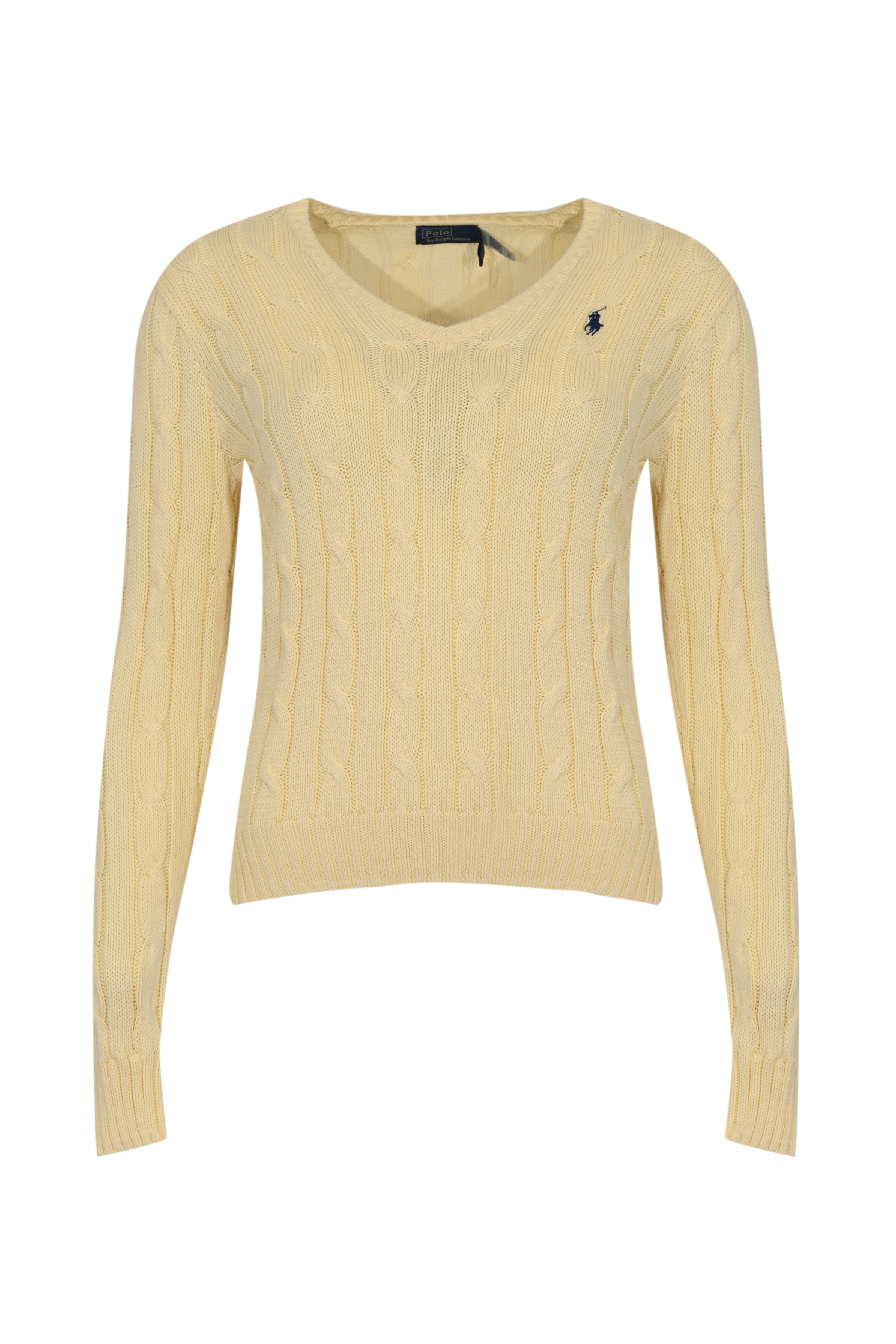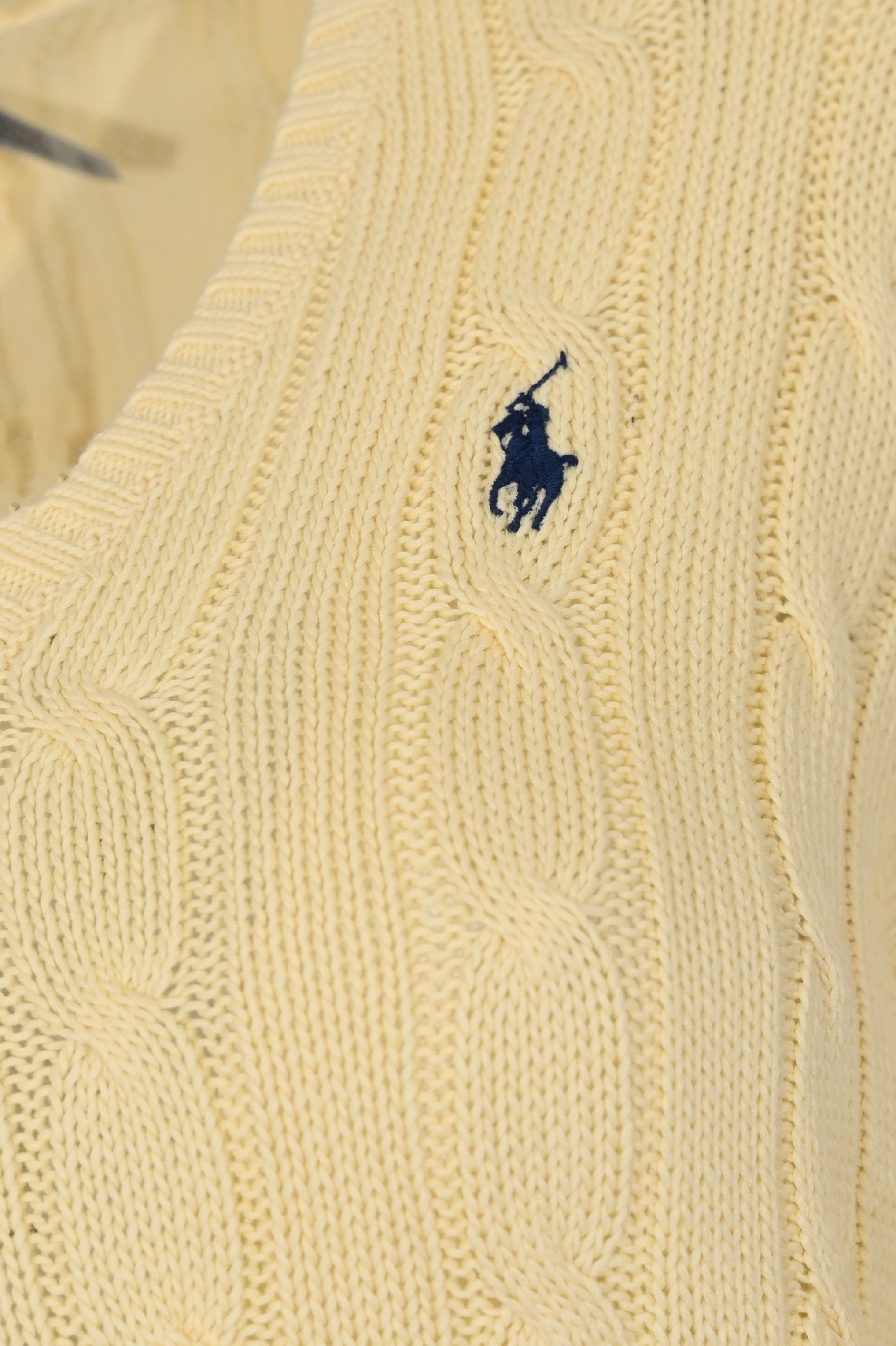 Maglia a trecce da donna in cotone, Polo Ralph Lauren, modello con scollo a V