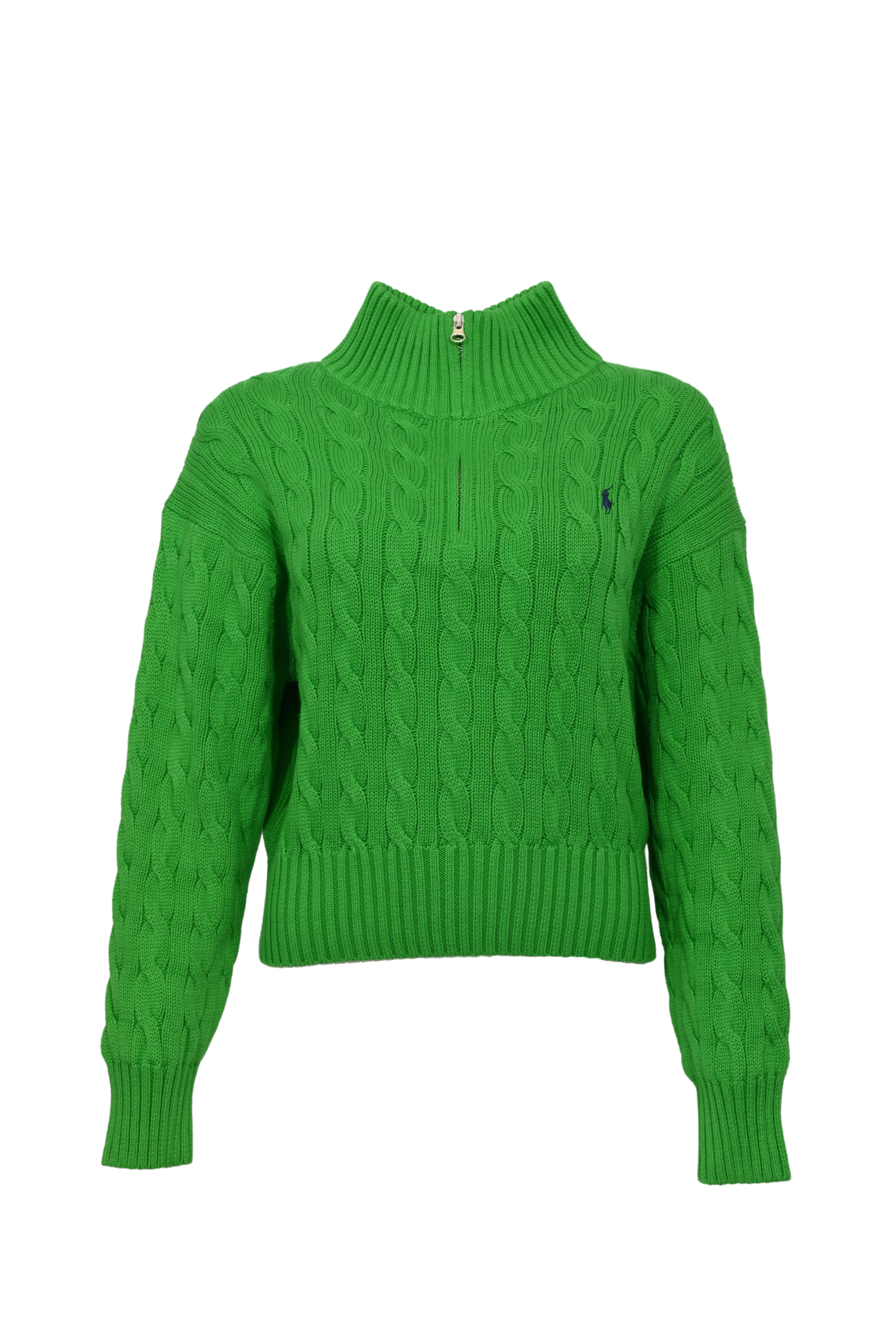 Maglia intrecciata in cotone con zip Green