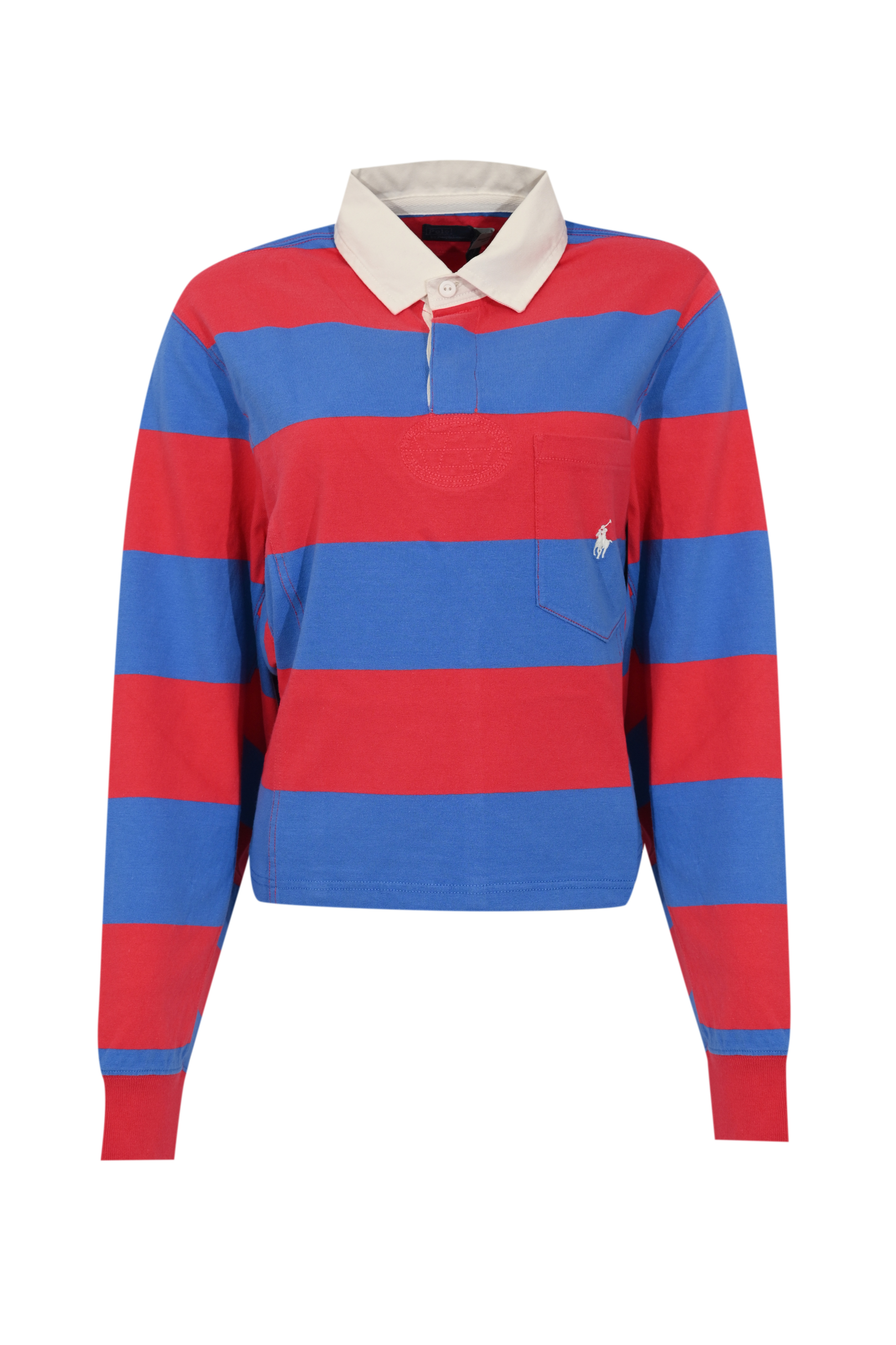 Polo a manica lunga in cotone Red/Blue