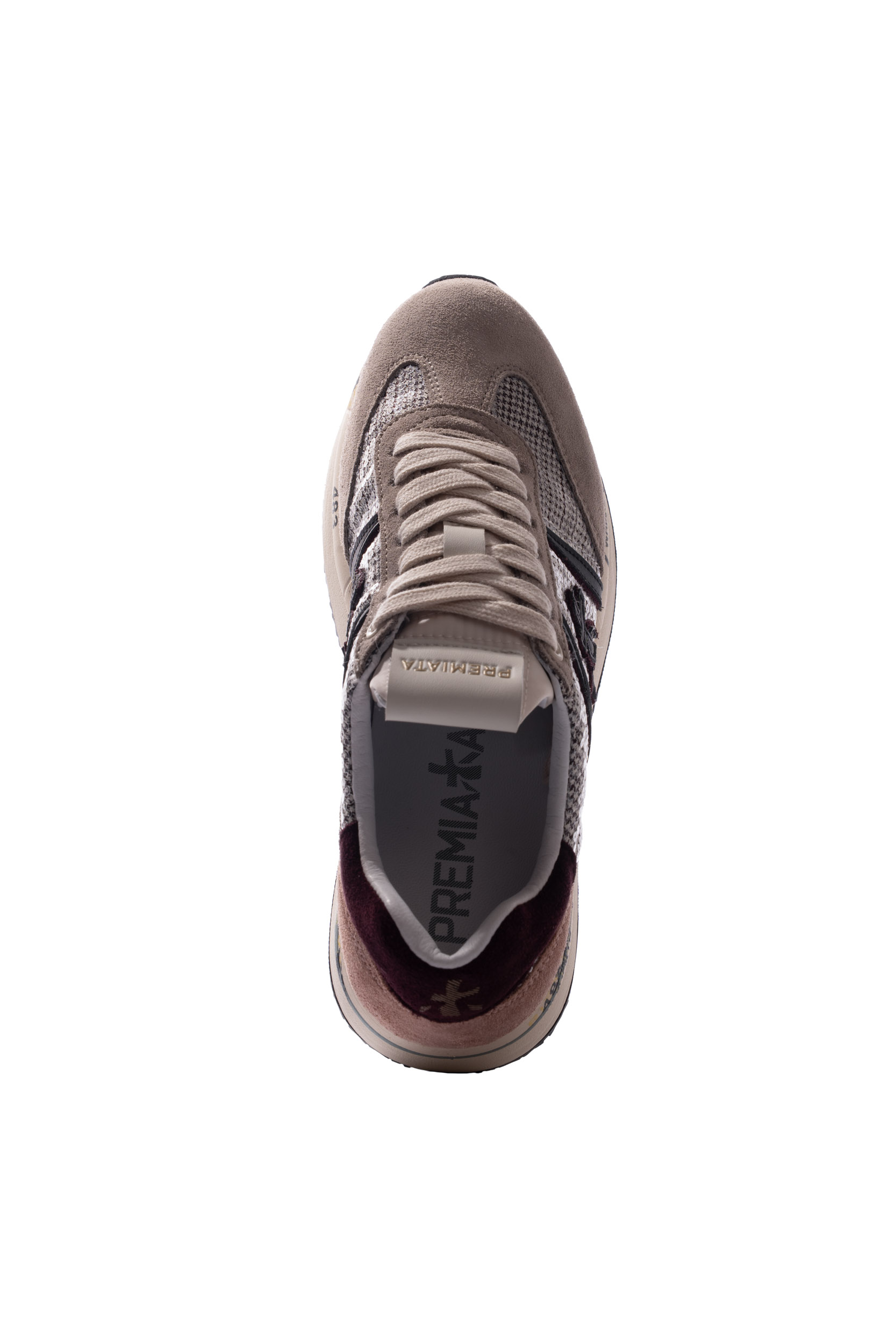 - Tomaia in pelle scamosciata e tessuto tecnico