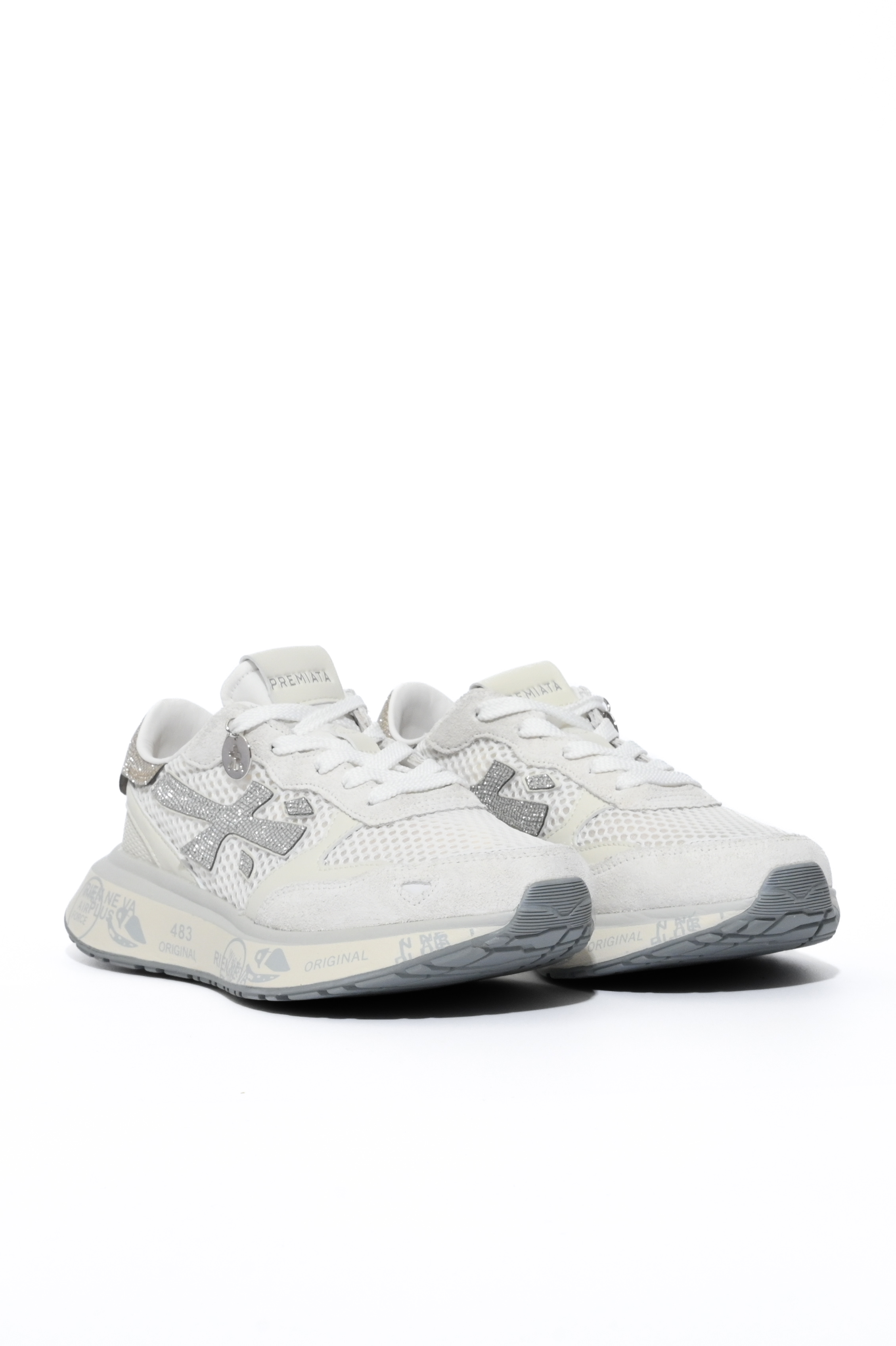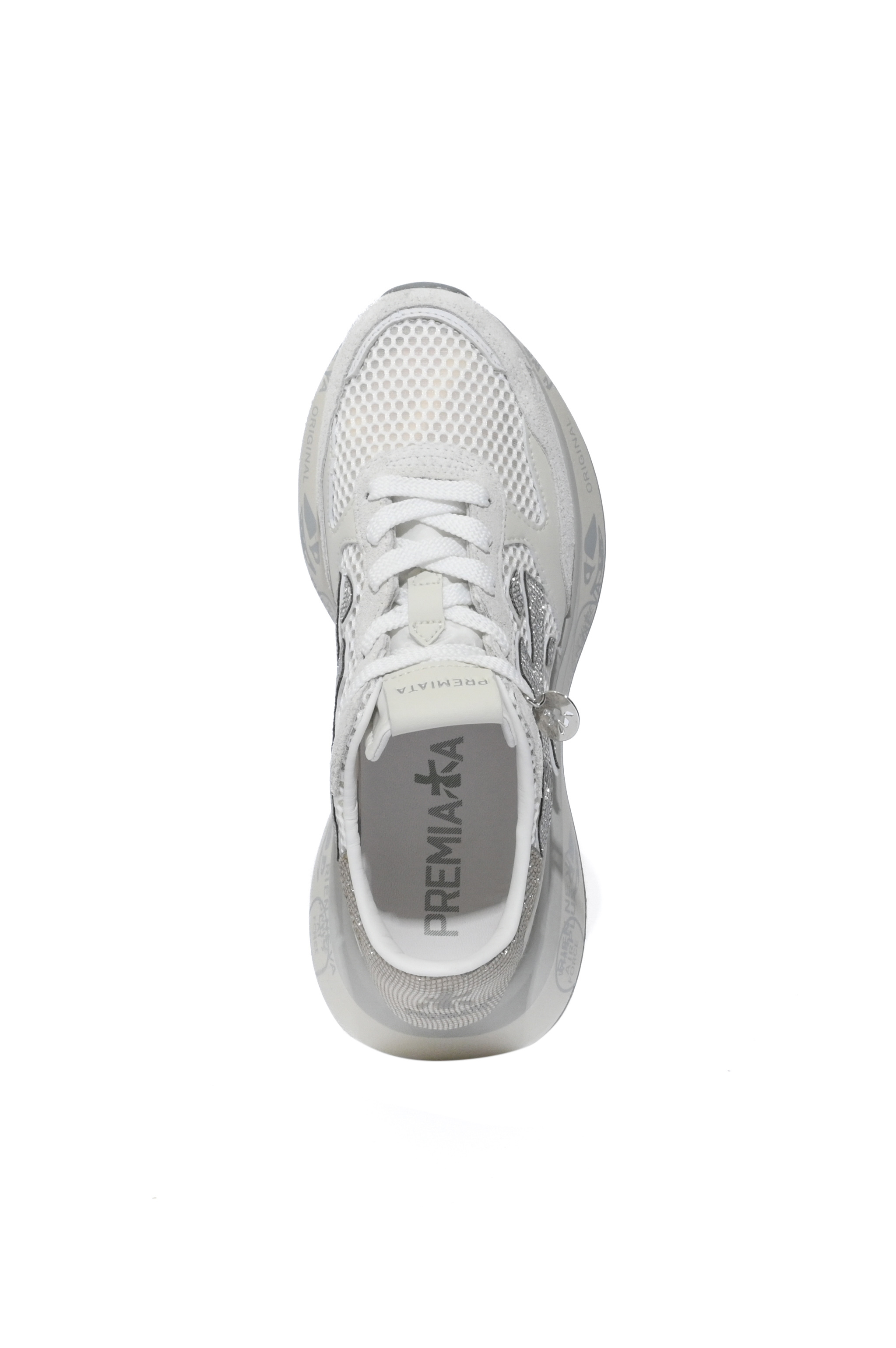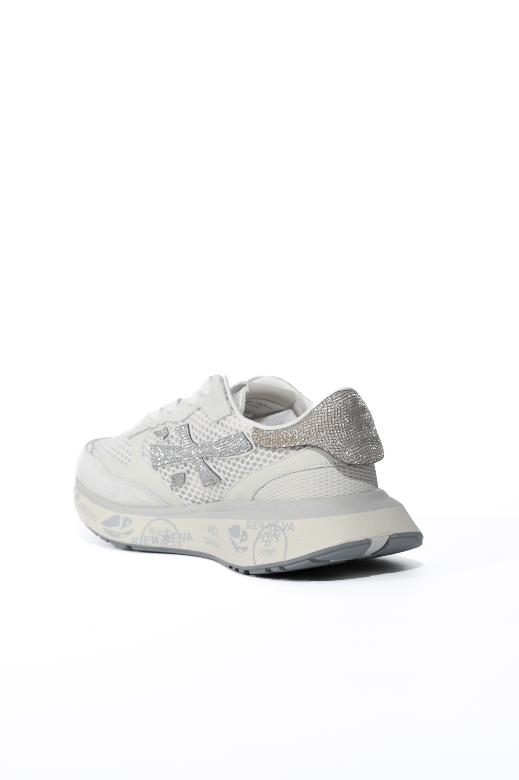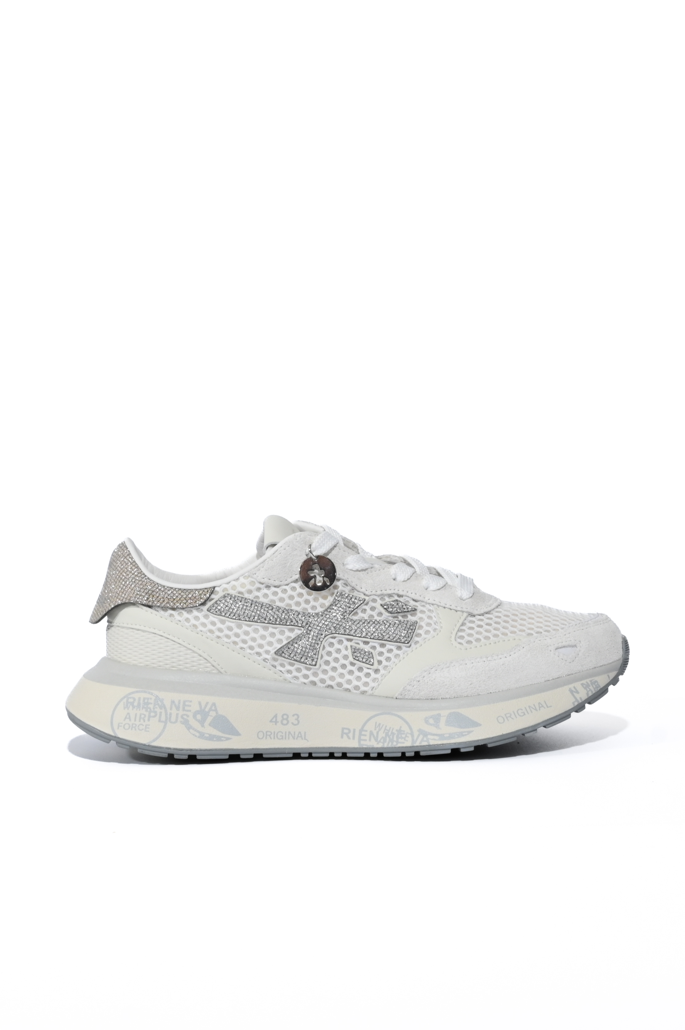 - Dettagli: design sportivo con inserti brillanti e pendente decorativo applicato ai lacci, tallone con inserto glitterato