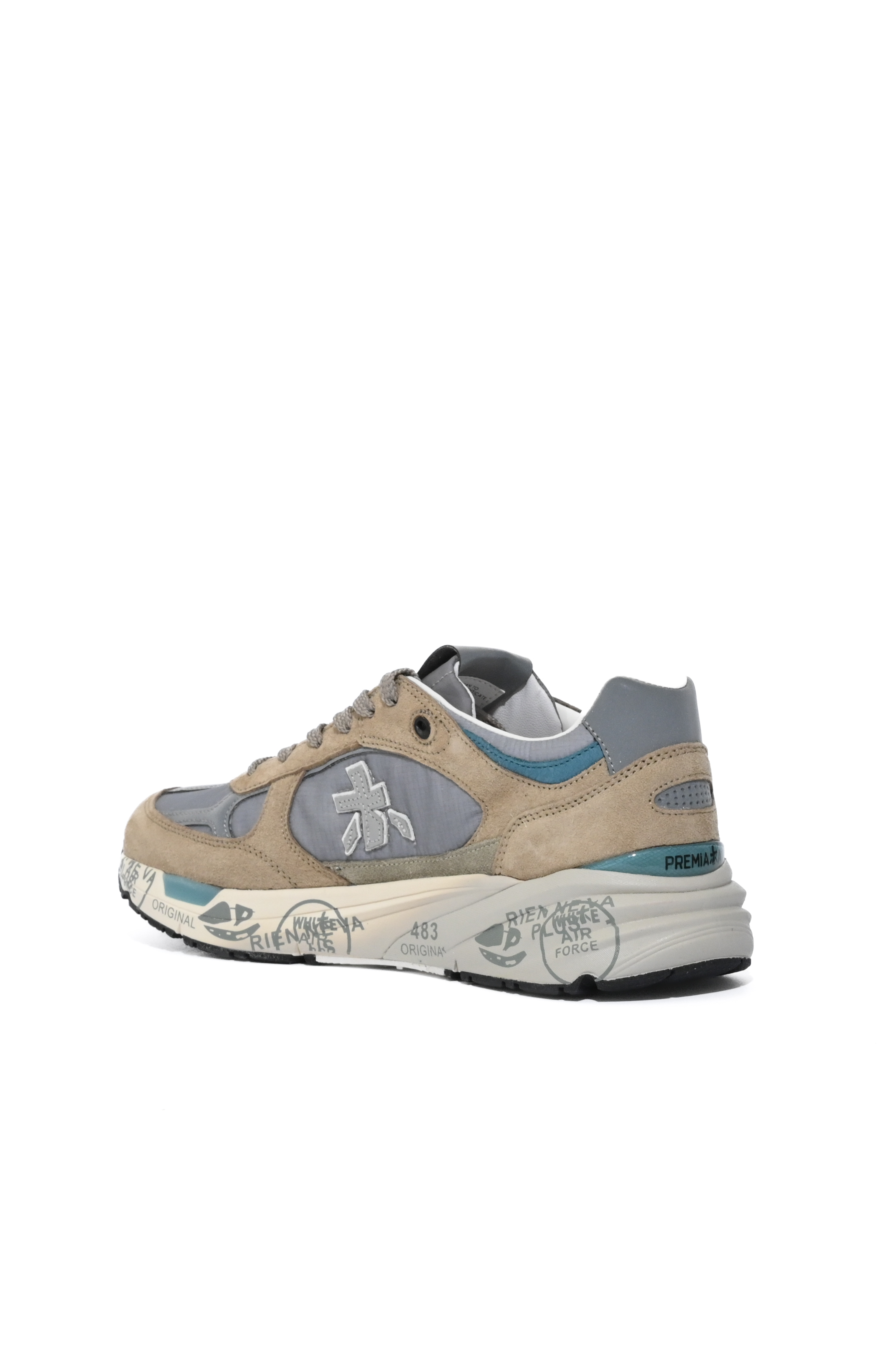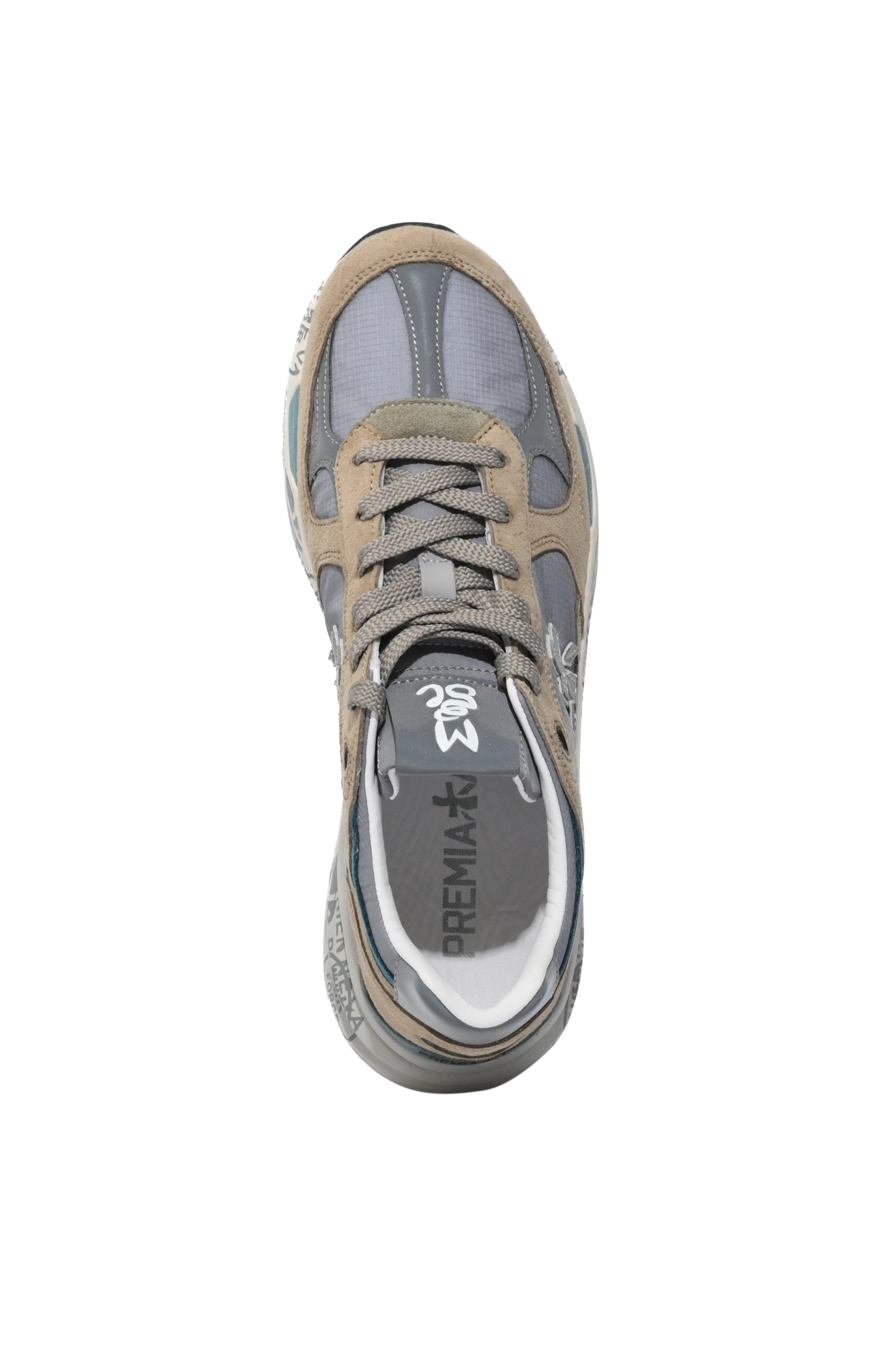 - Dettagli: design sportivo con mix di materiali e tonalità neutre, tallone con inserto a contrasto e logo Premiata