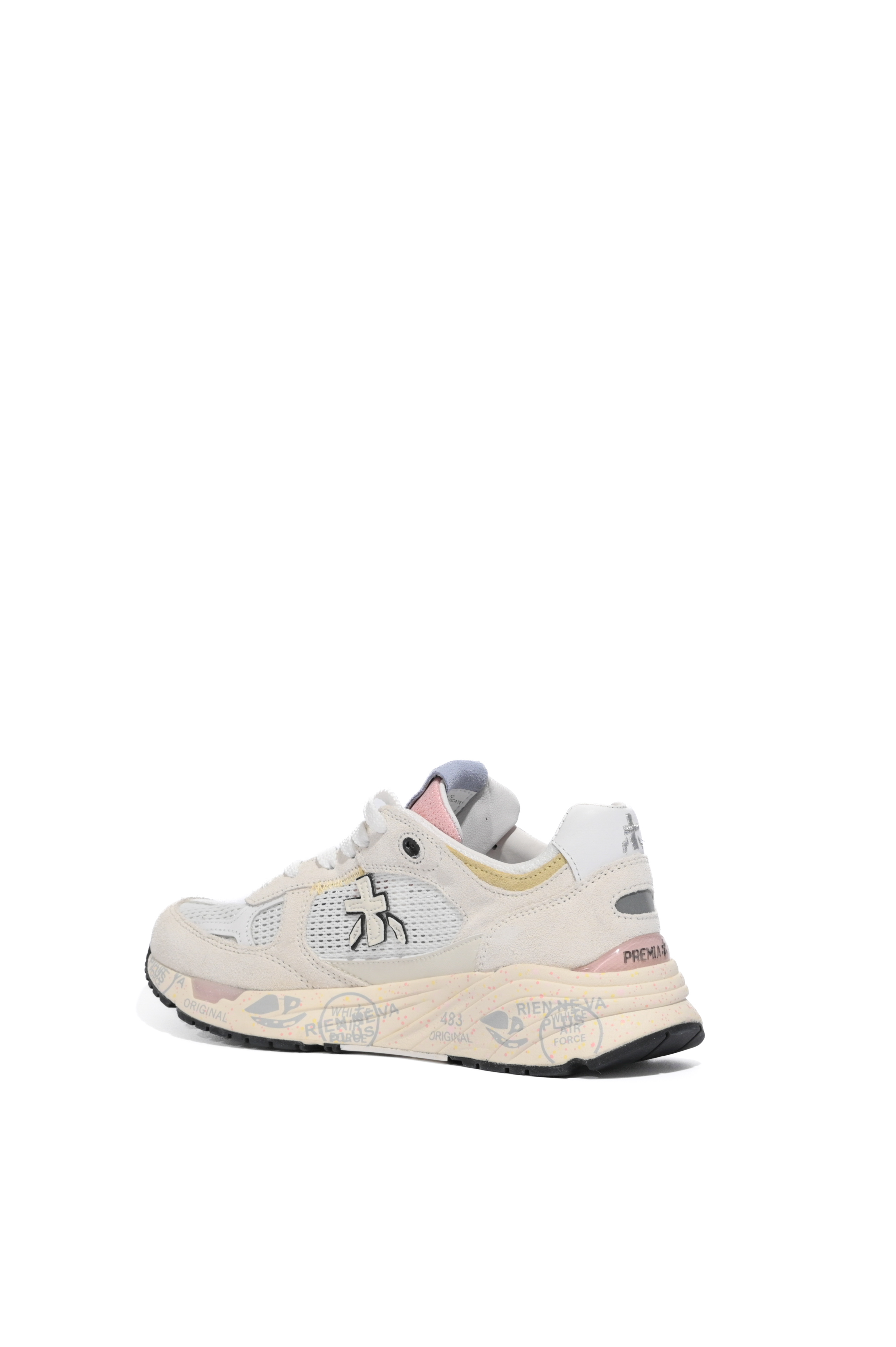 - Tomaia: mix di suede e mesh con inserti in pelle liscia