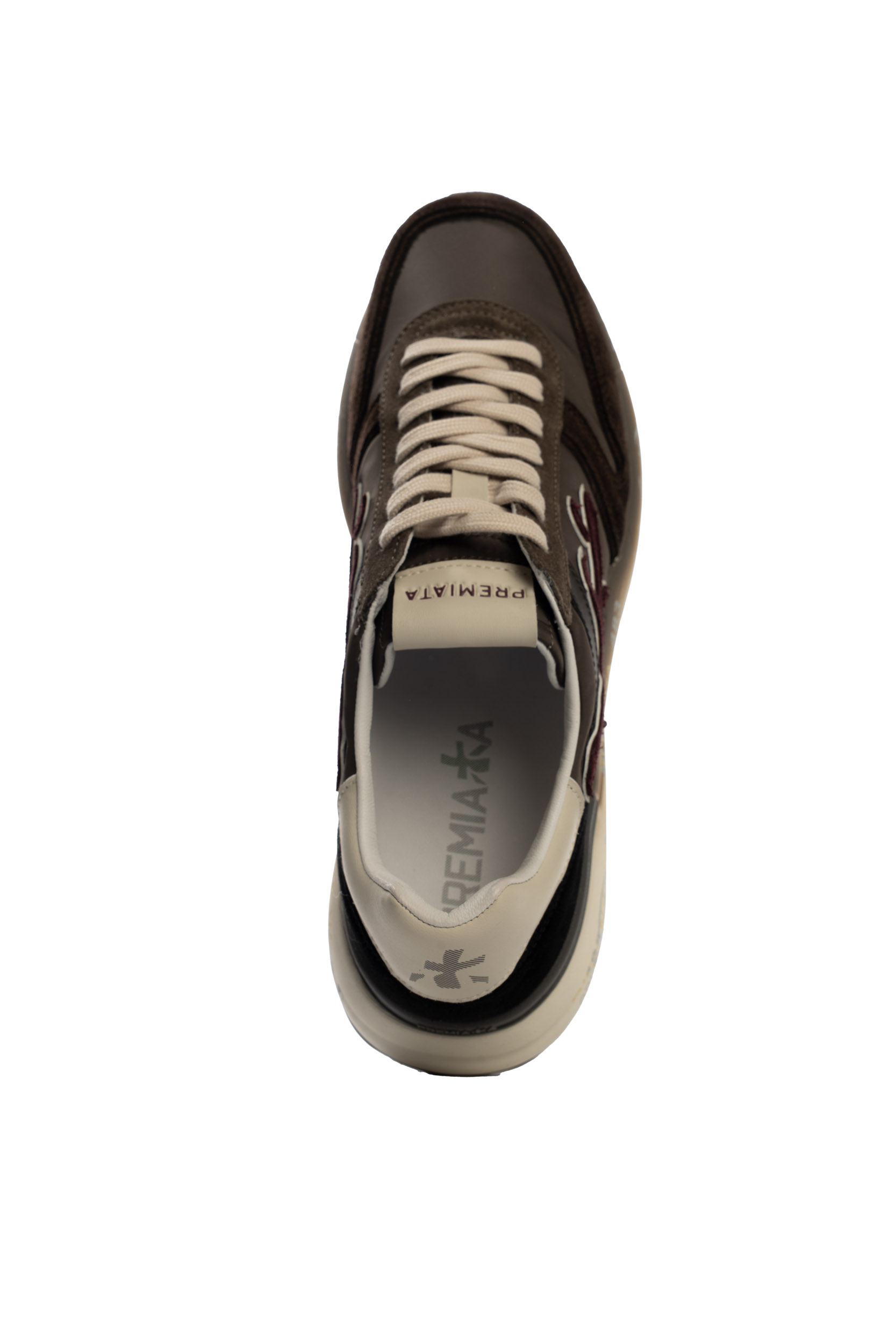 - Tomaia in pelle scamosciata e tessuto tecnico