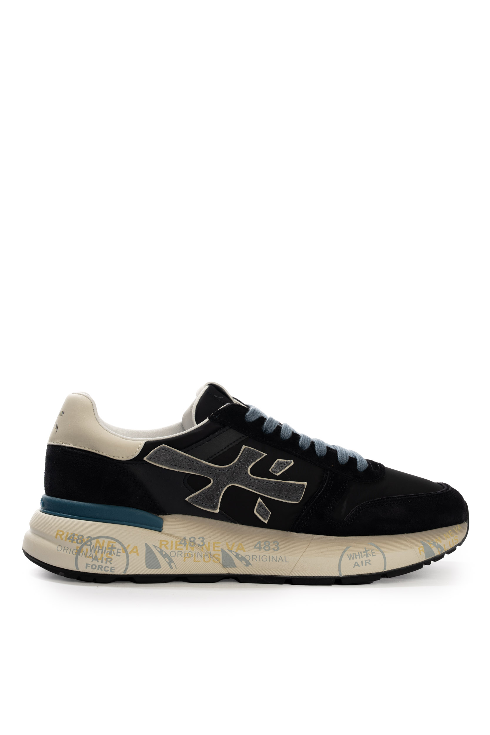 - Tomaia in pelle scamosciata e tessuto tecnico