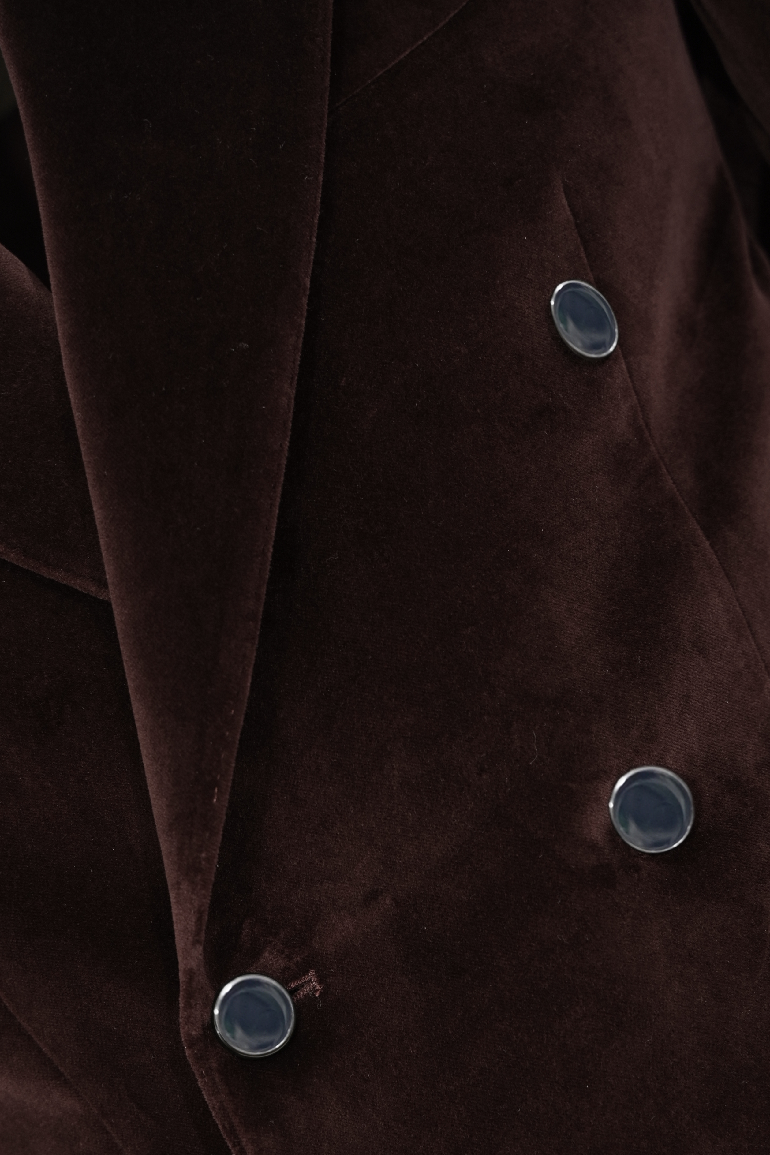 - Dettagli: costruzione sartoriale, bottoni a contrasto, texture vellutata