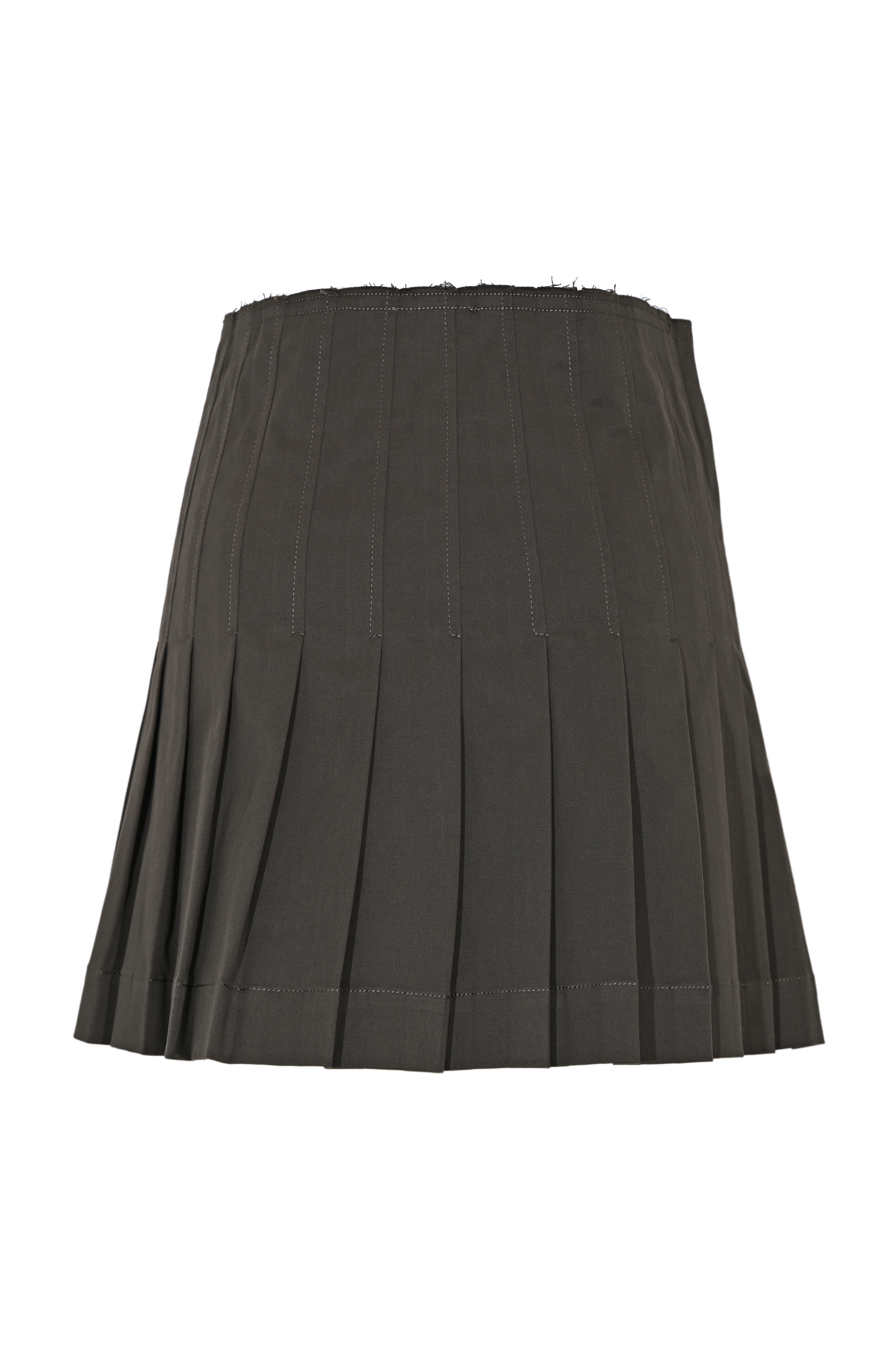- Dettagli: Linea svasata, struttura a pieghe sul fondo, cuciture verticali tono su tono, orlo con leggera sfrangiatura sul punto vita