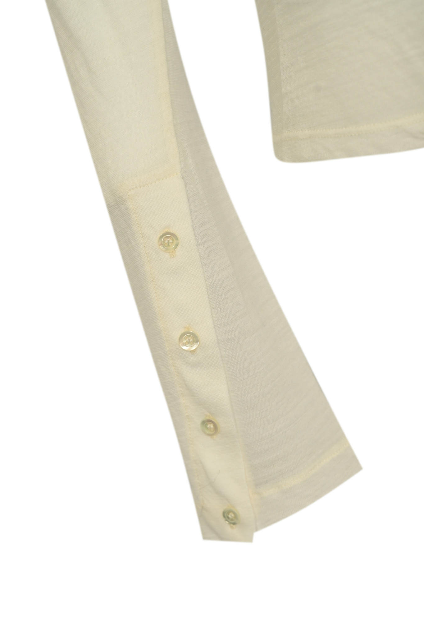 - Dettagli: polsini decorati da bottoni, tessuto sottile ed elastico, stampa posteriore con scritta This T-shirt was made for you in a kind way