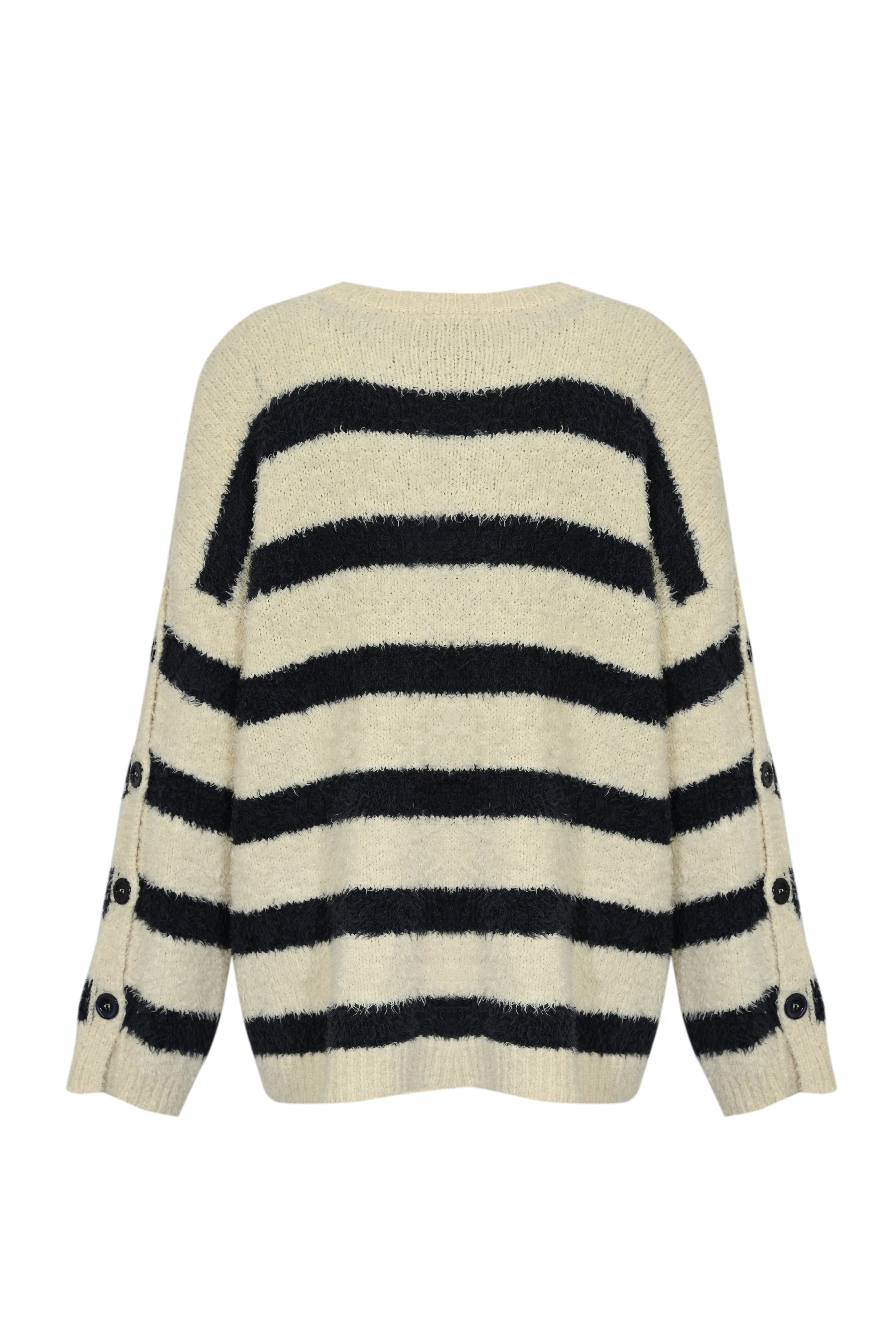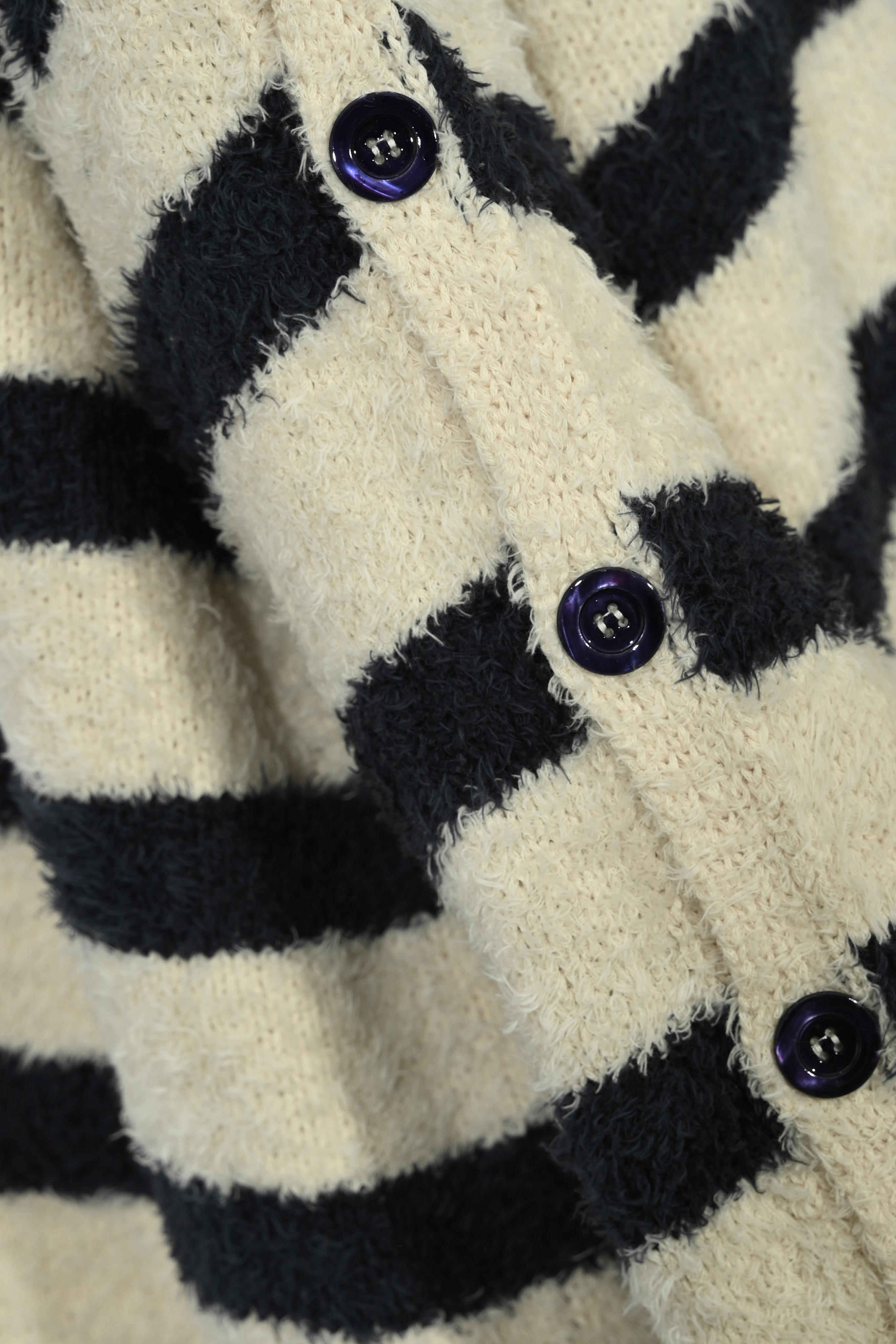 - Dettagli: lavorazione morbida, rigata, bottoni tono su tono sulle maniche