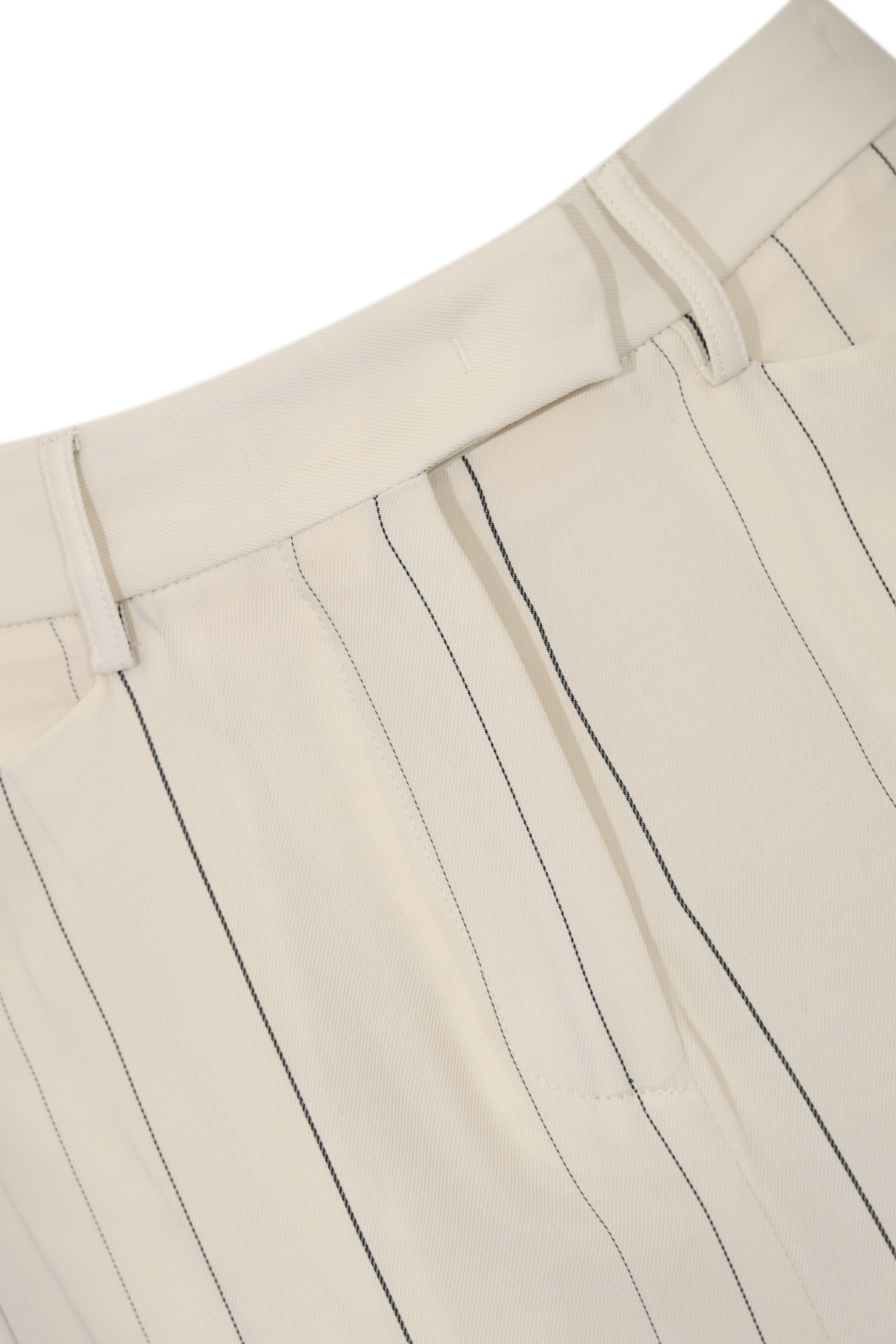 - Dettagli: piega centrale stirata, motivo a righe verticali a contrasto, linea ampia