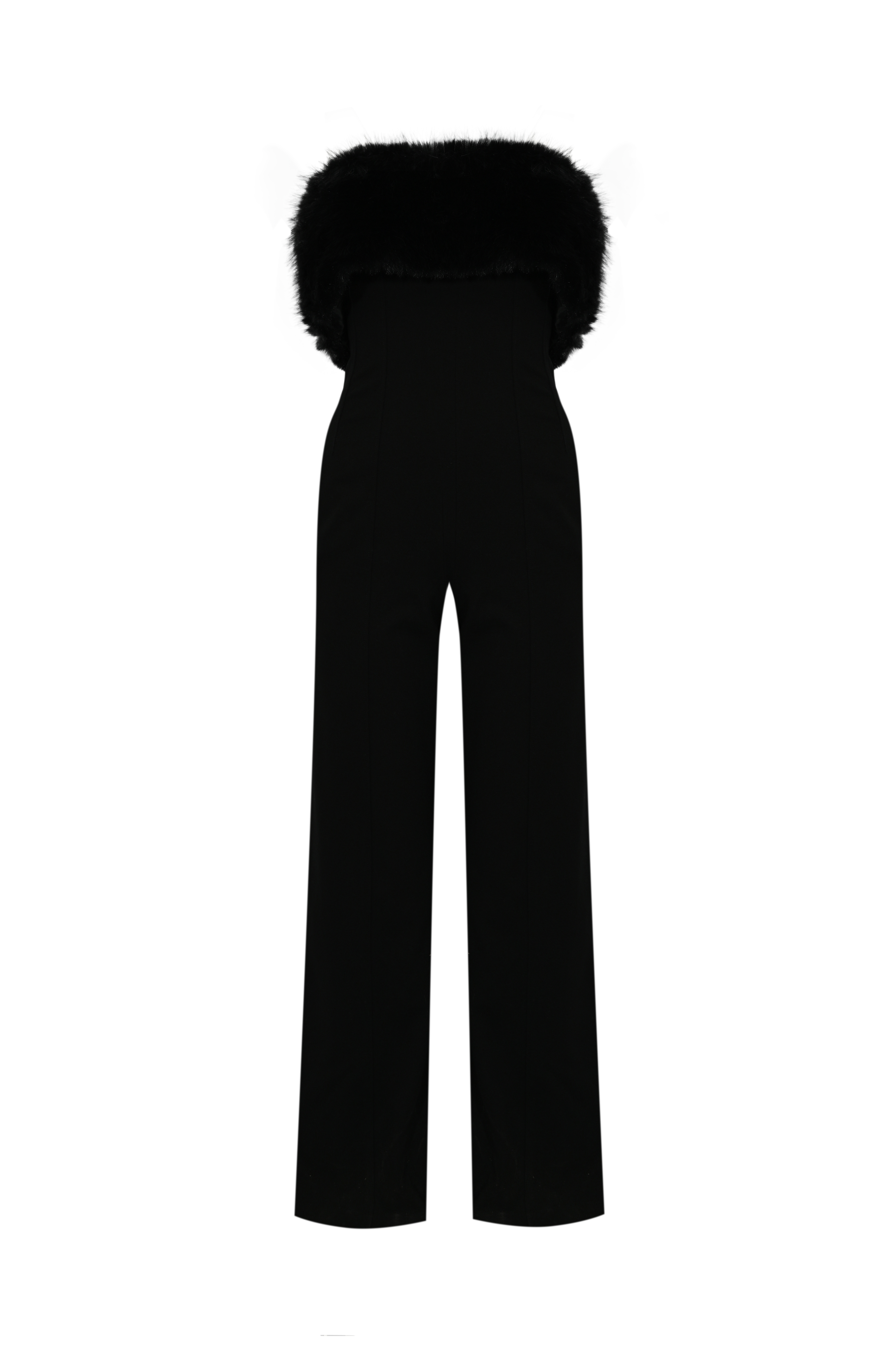 - Dettagli: inserti in ecopelliccia sullo scollo, gamba larga