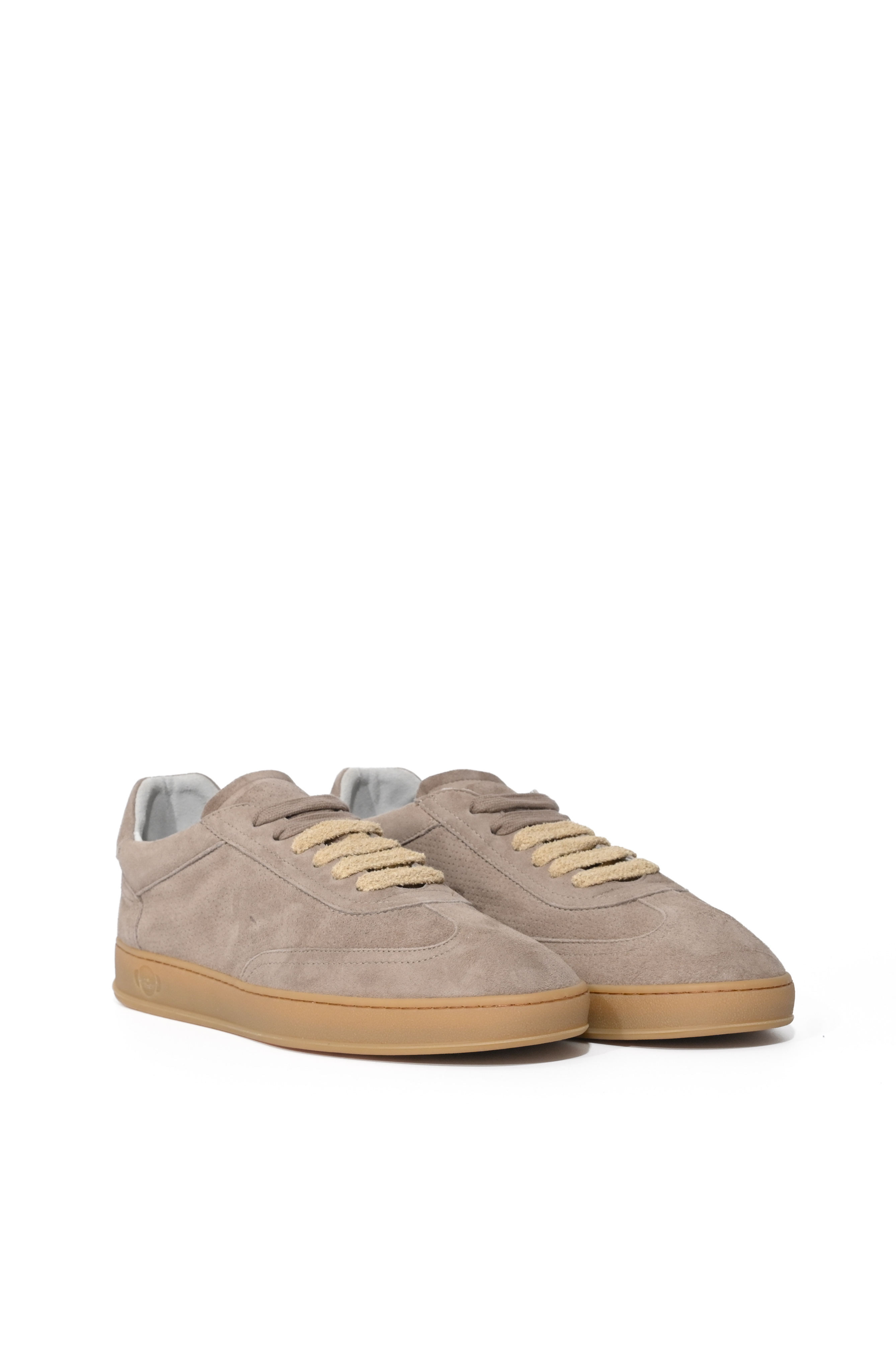 - Tomaia: pelle scamosciata con lavorazione punzonata e inserti in suede