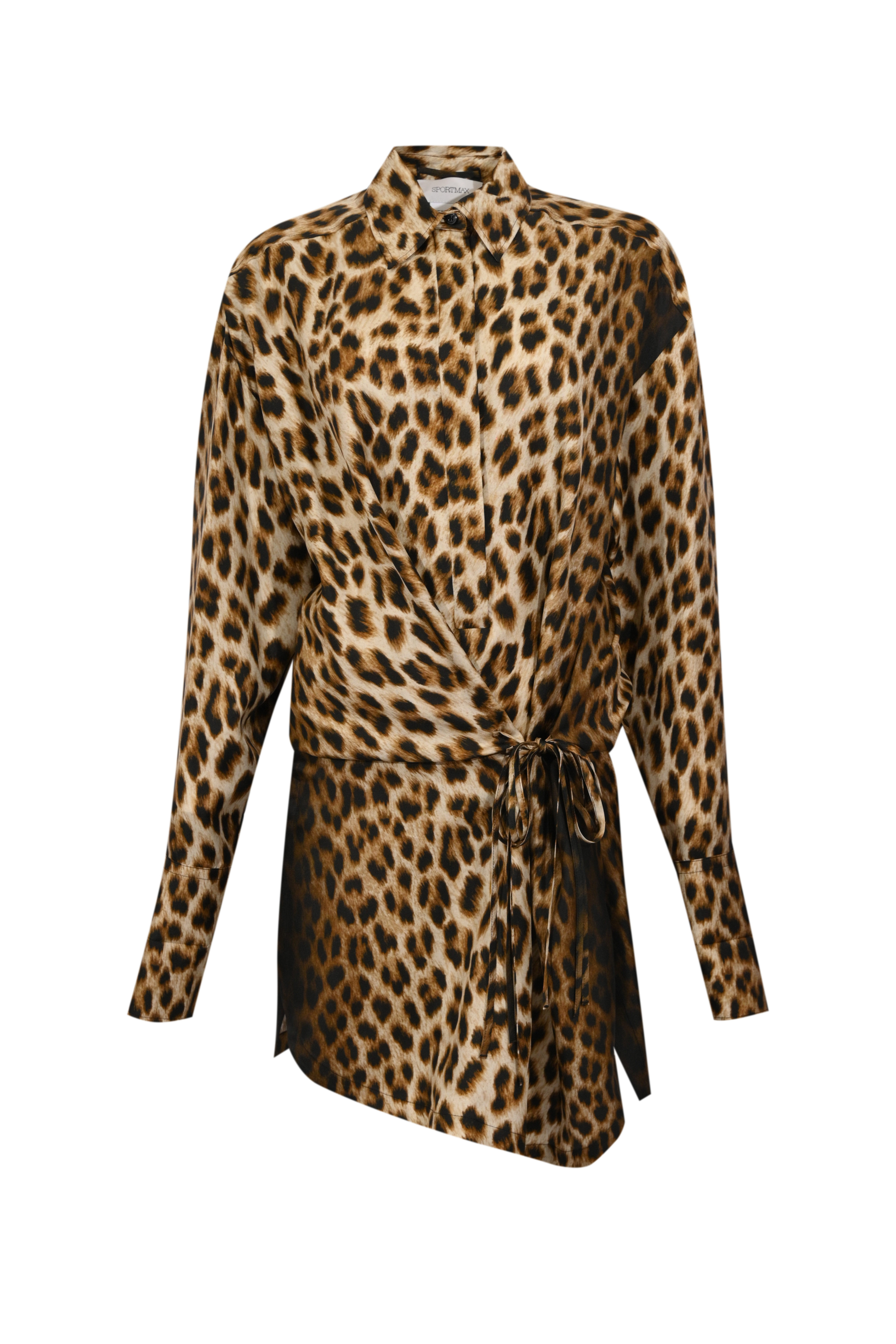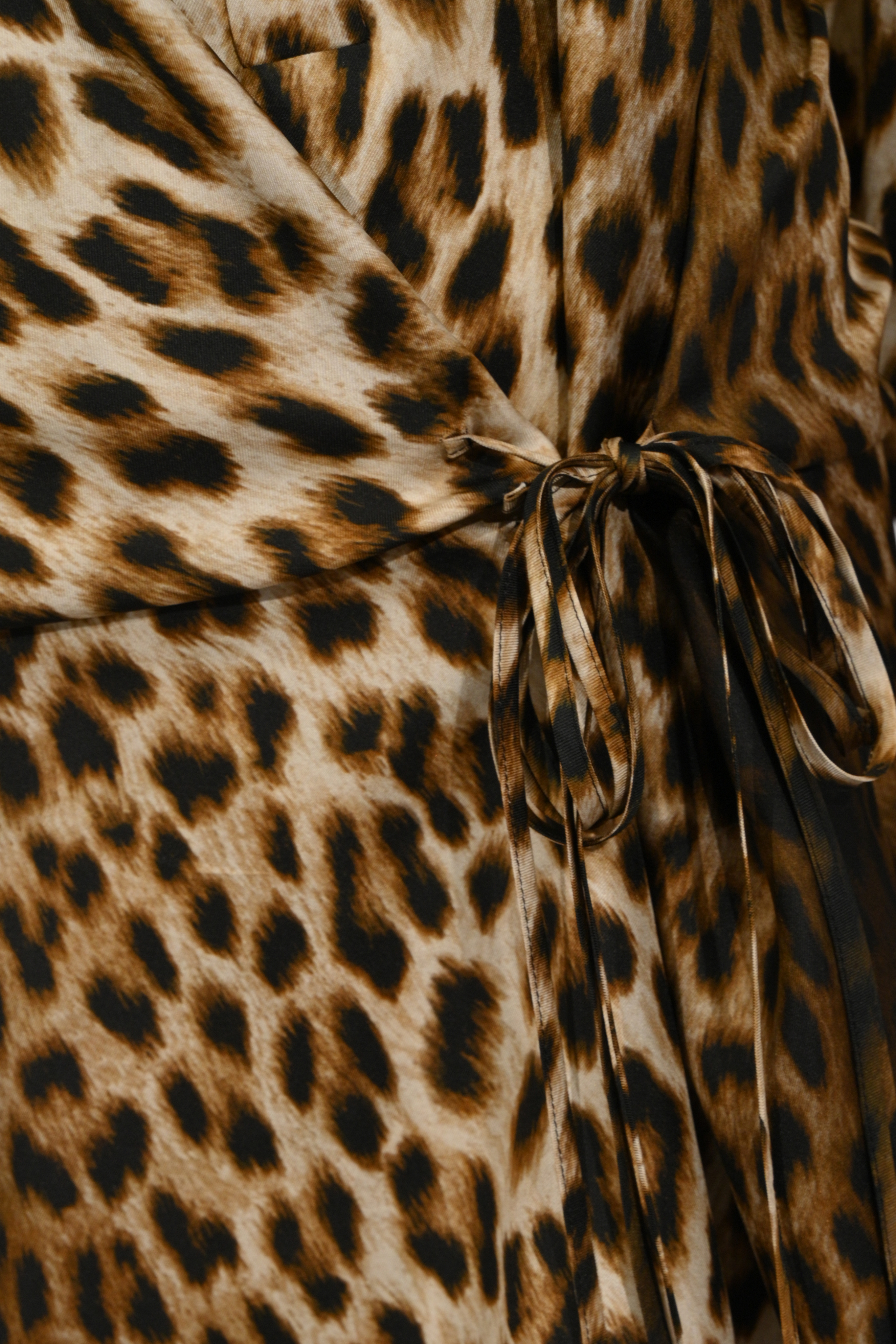 - Dettagli: design chemisier incrociato con cintura in vita, stampa leopardata