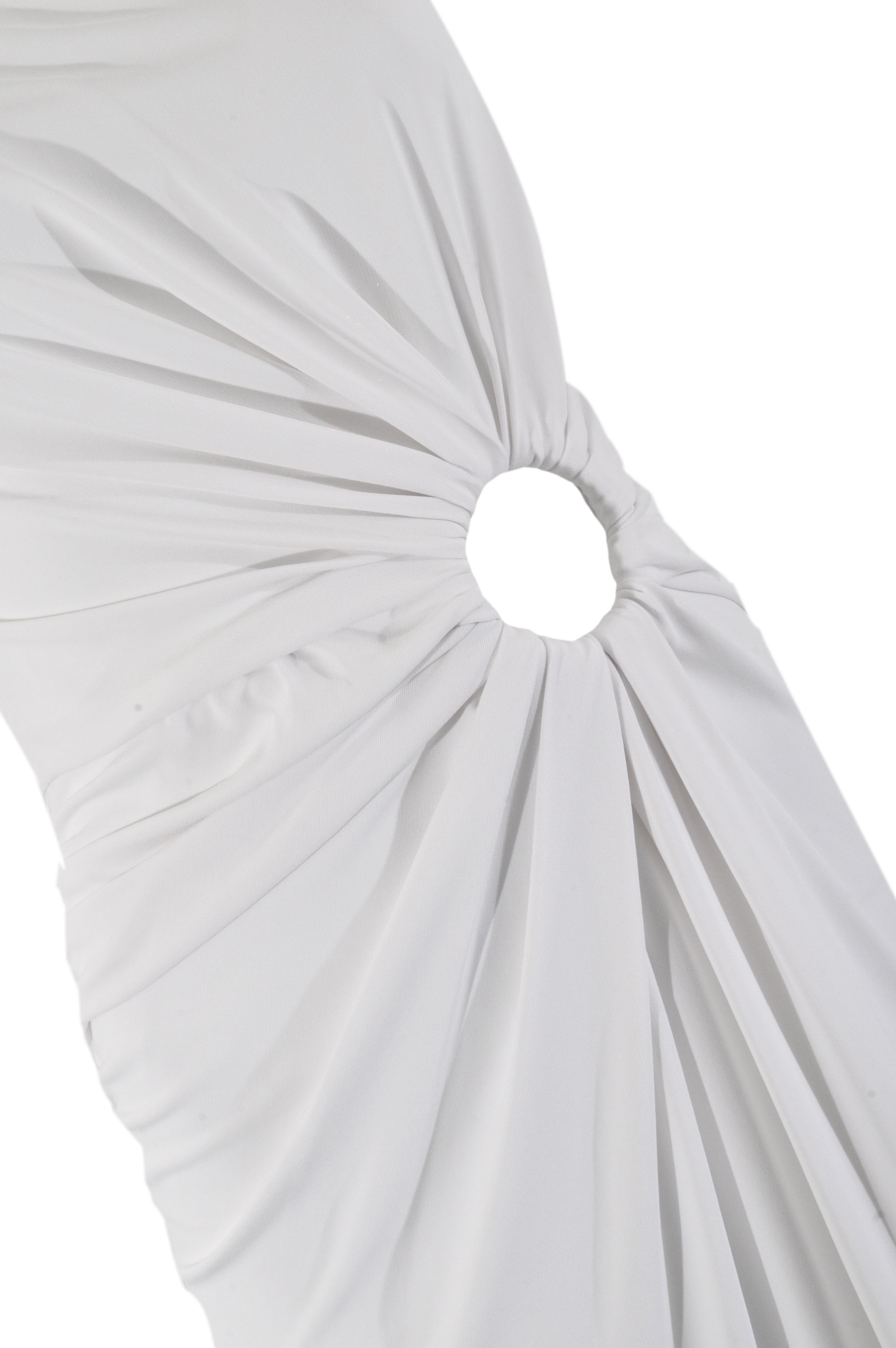 - Dettagli: drappeggio laterale con anello centrale, design aderente con effetto arricciato sul fianco