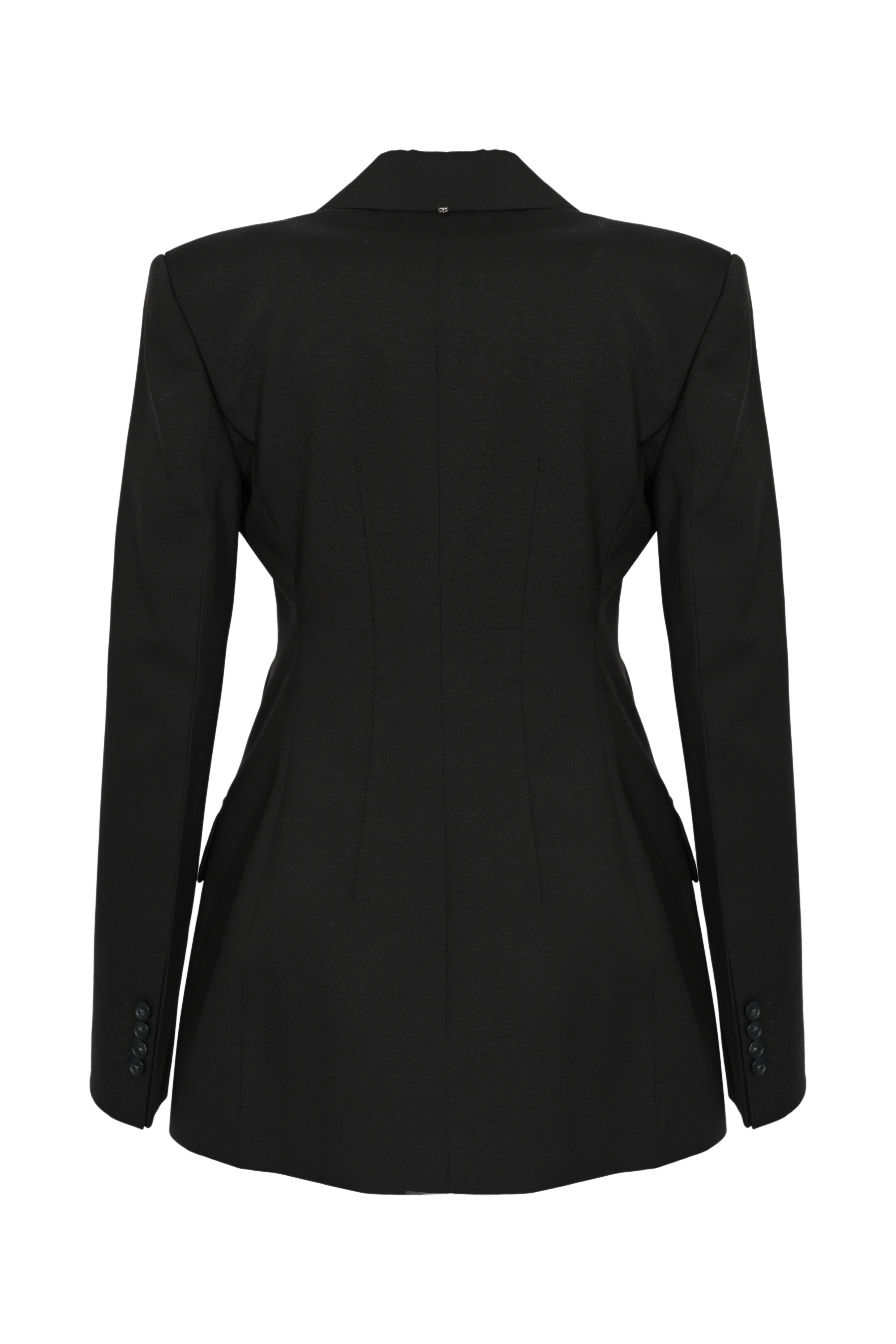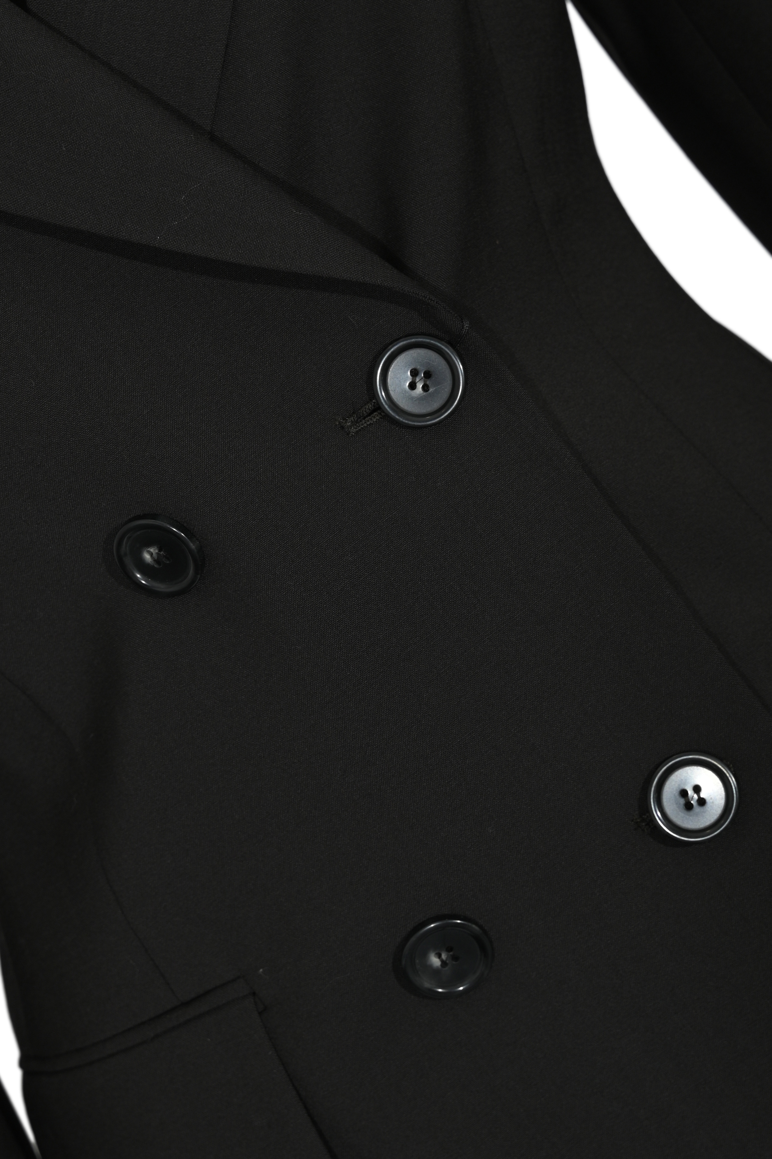 - Dettagli: taglio sartoriale con pince modellanti, bottoni ai polsi, fodera interna coordinata