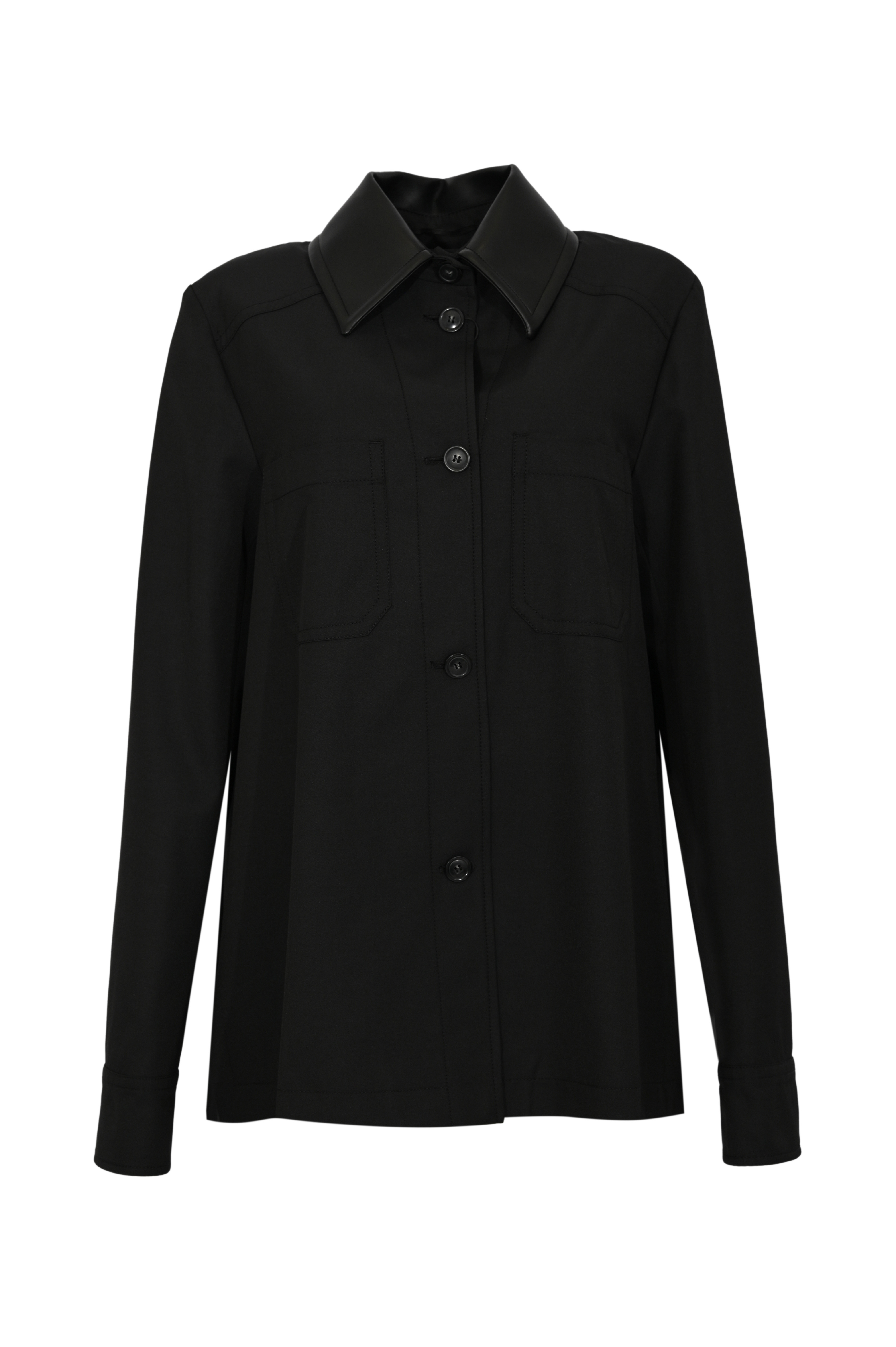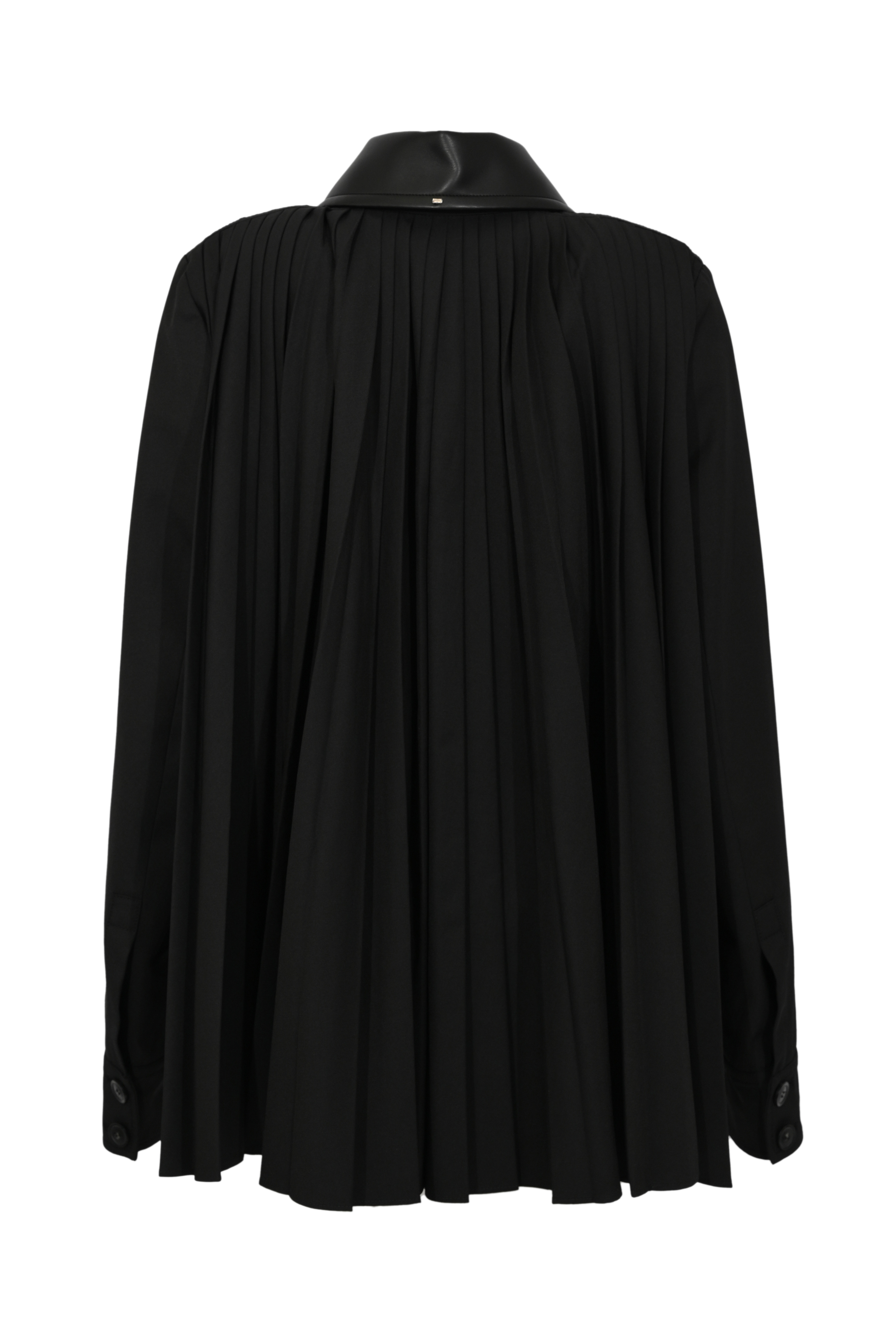 - Dettagli: retro plissé, colletto in materiale effetto pelle, impunture tono su tono, fondo dritto