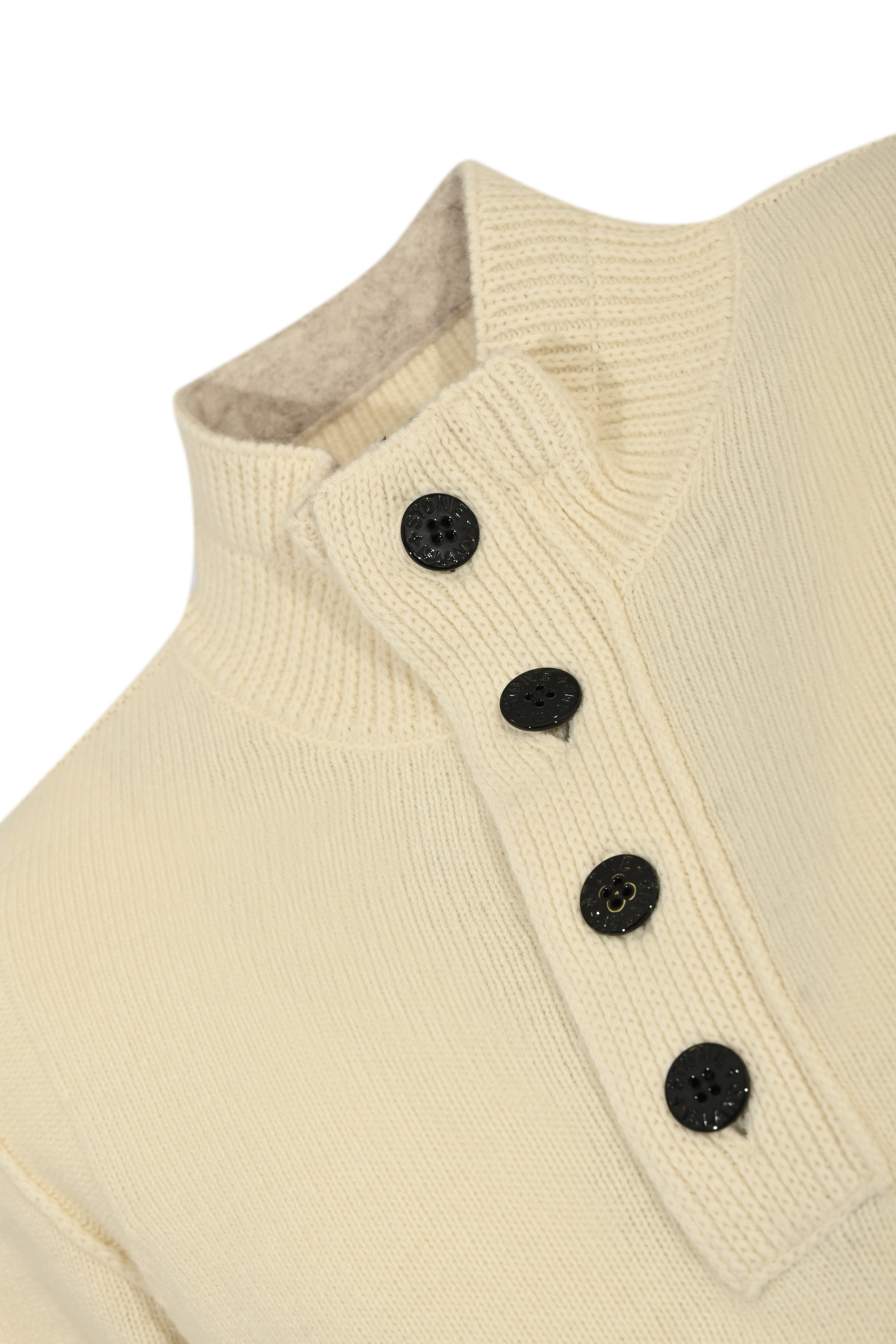 Maglione 5100040 in misto lana con zip e bottoni Naturale