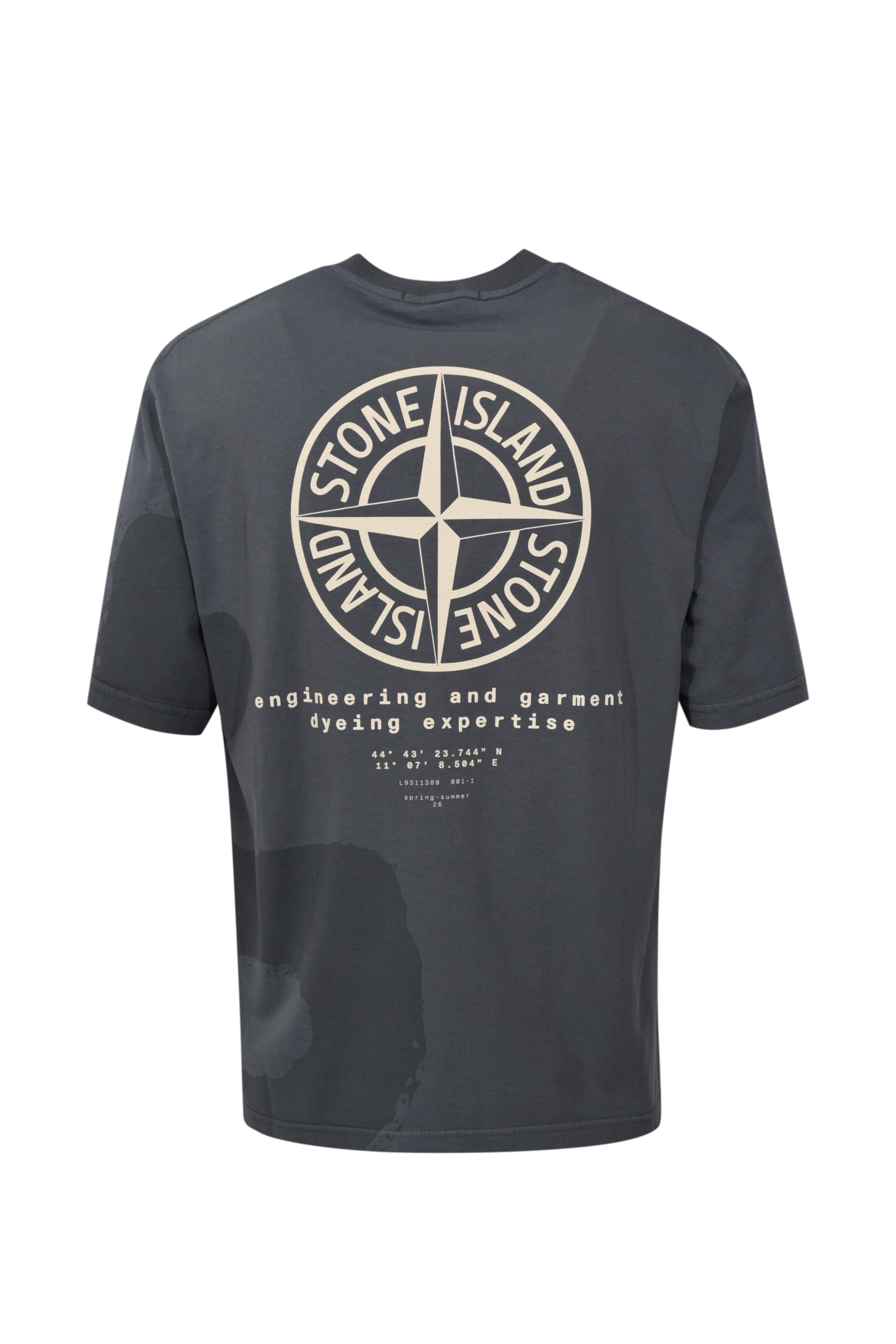 - Dettagli: logo Stone Island sul petto, maxi stampa logo sul retro con scritte tecniche, lavorazione con effetto tintura irregolare