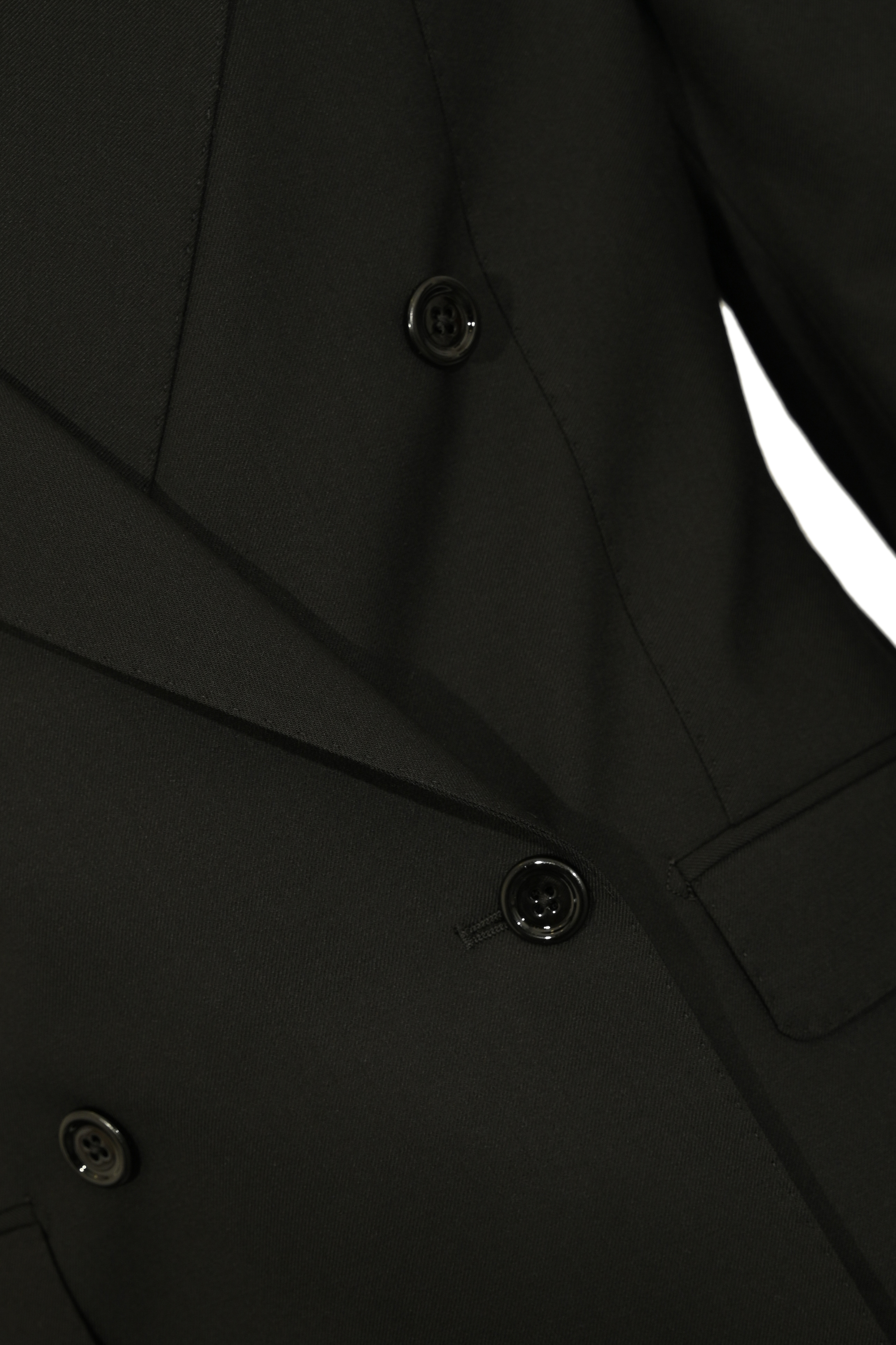 - Chiusura: doppiopetto con bottoni neri tono su tono