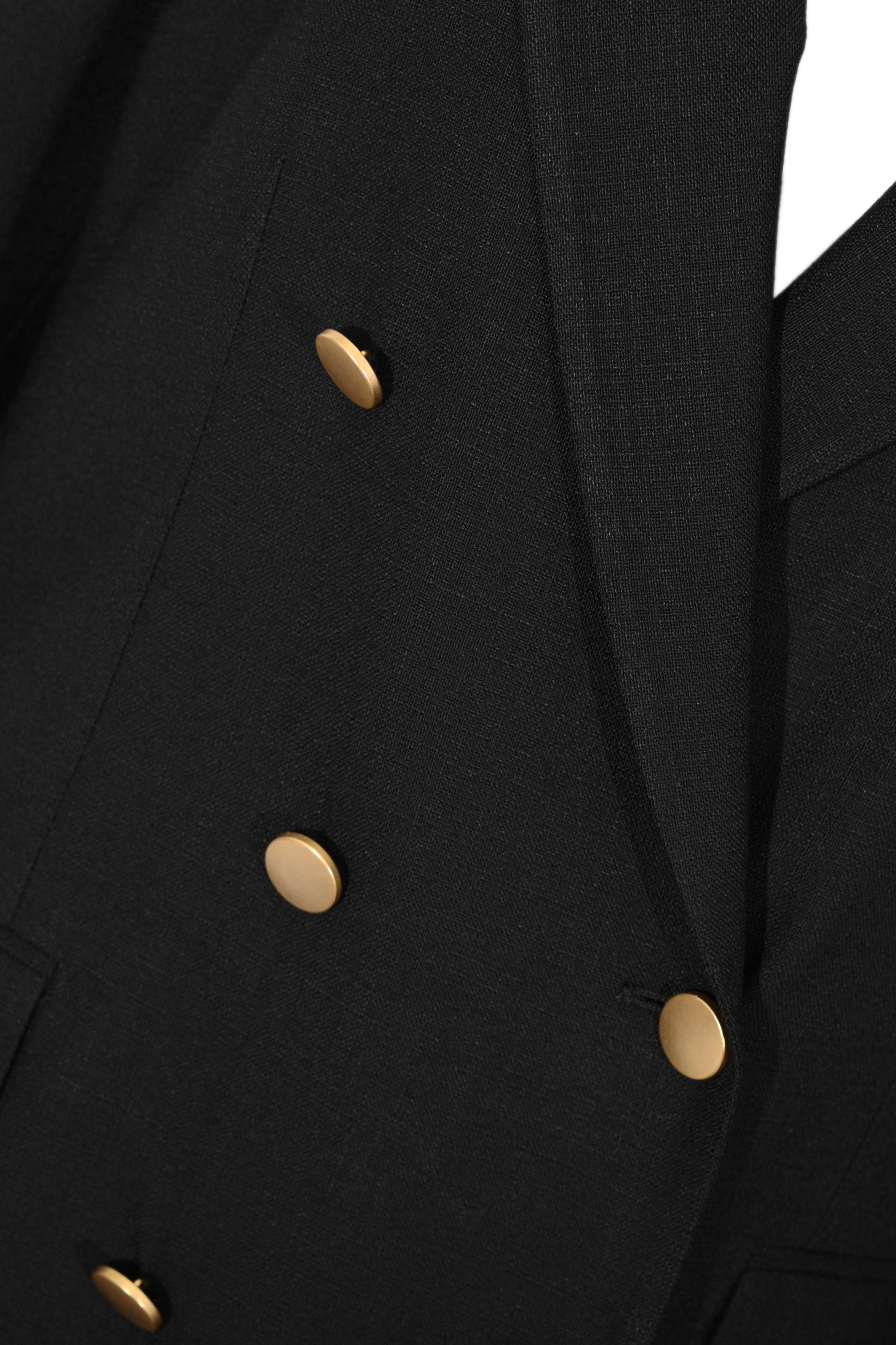 - Chiusura: doppiopetto con bottoni metallici dorati
