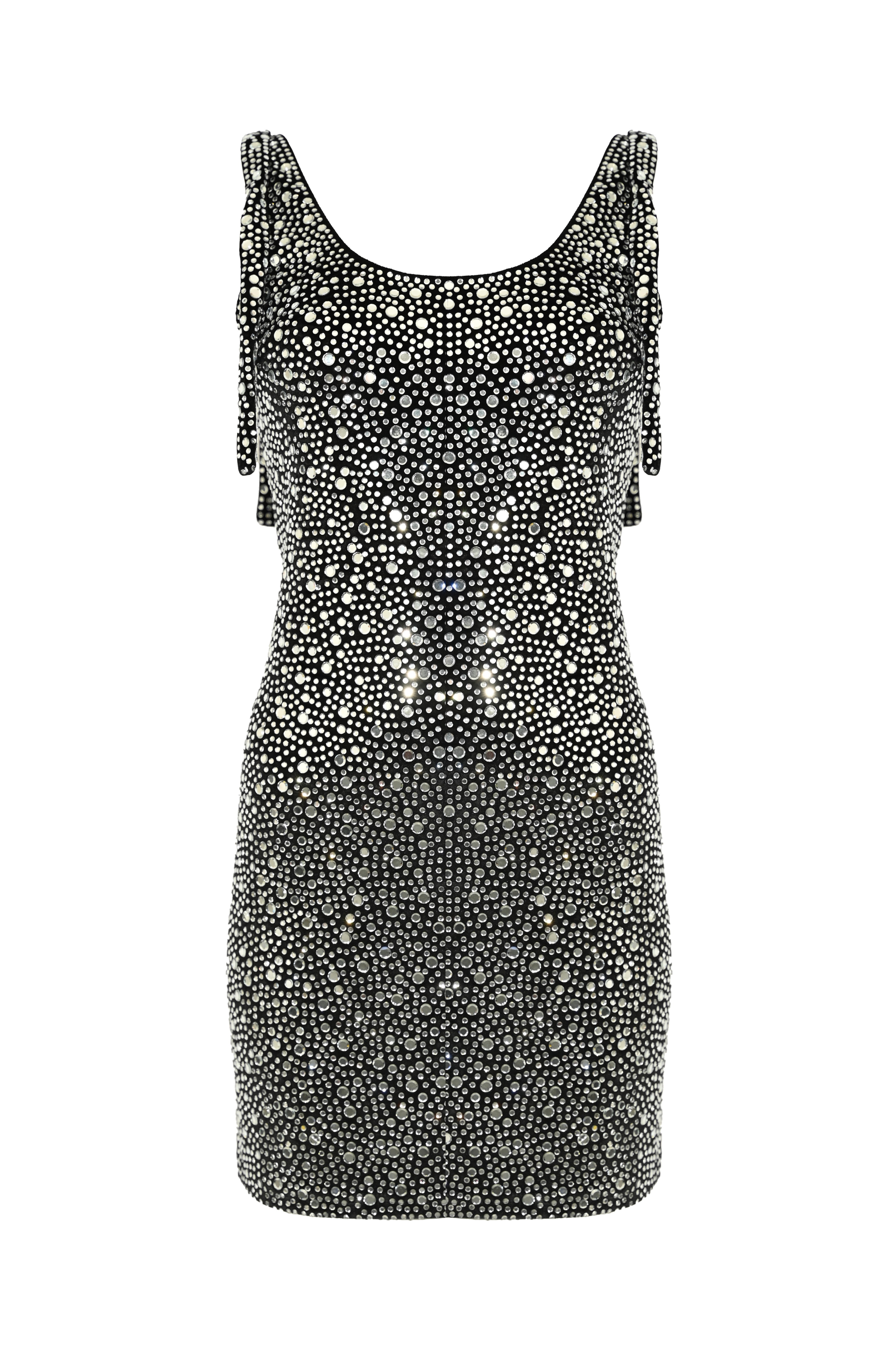 - Dettagli: abito corto effetto seconda pelle, decorato interamente da micro strass lucenti, taglio aderente che valorizza la silhouette, fodera interna leggera