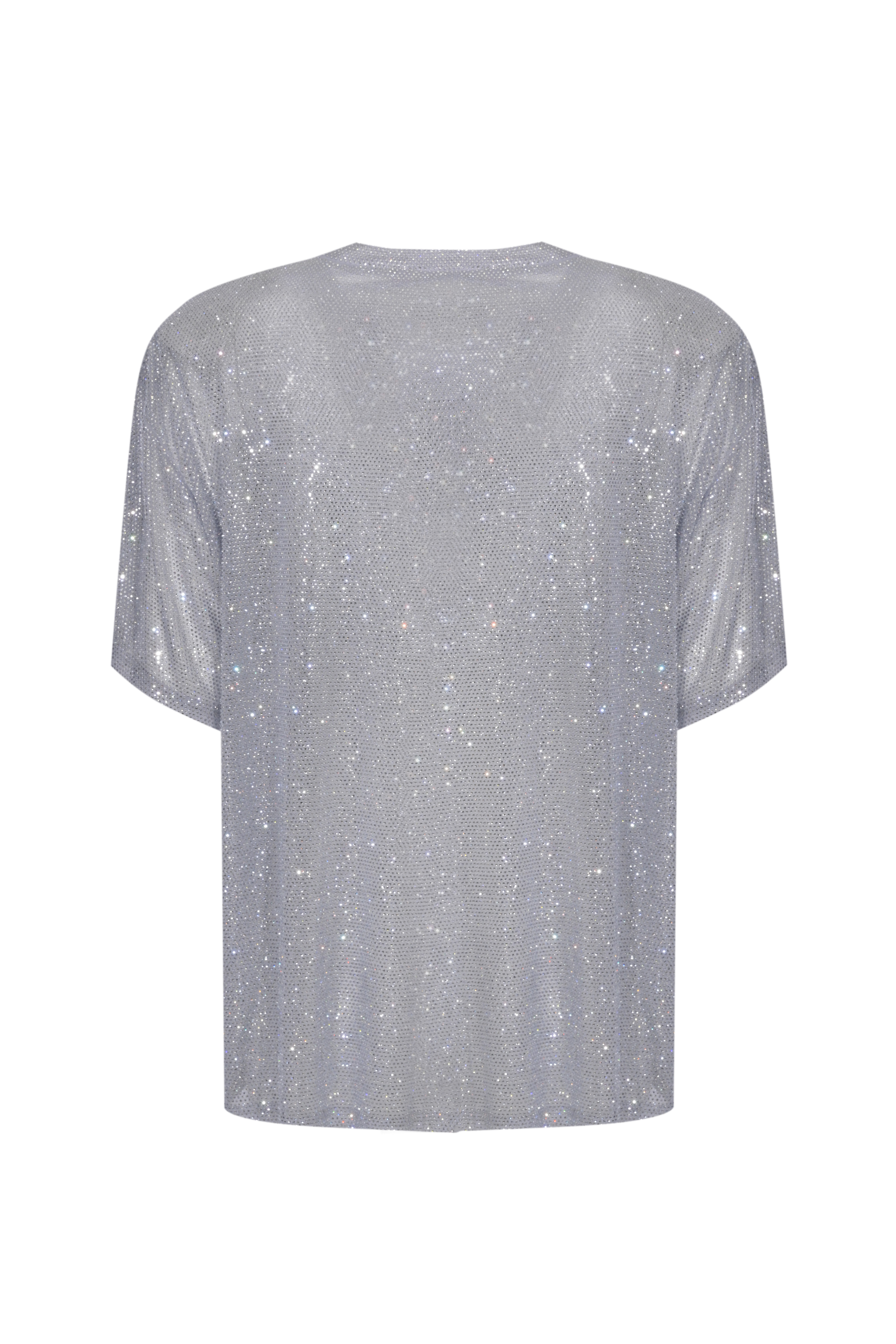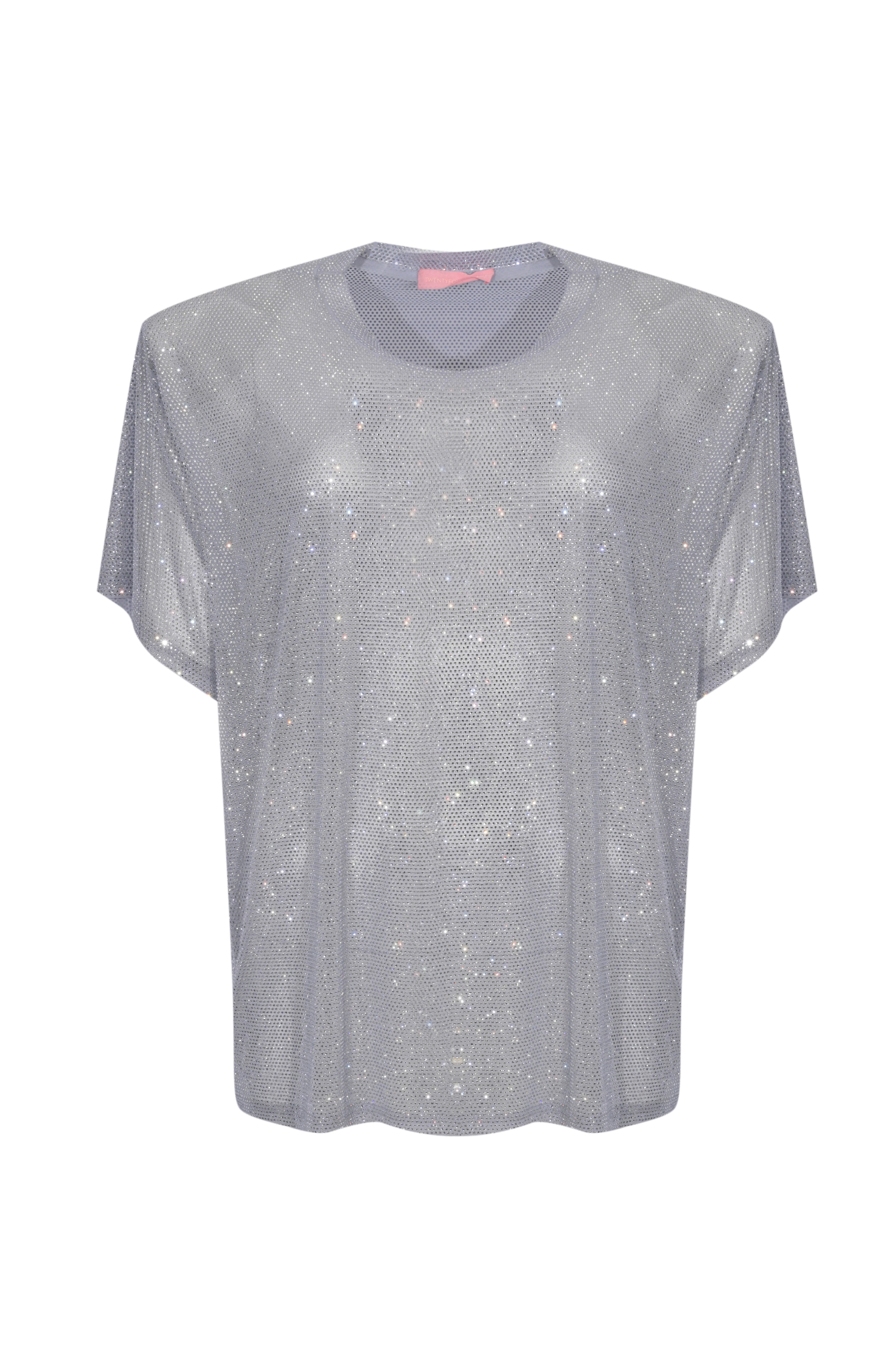 T-shirt Mendes in tessuto fluido con strass Argento