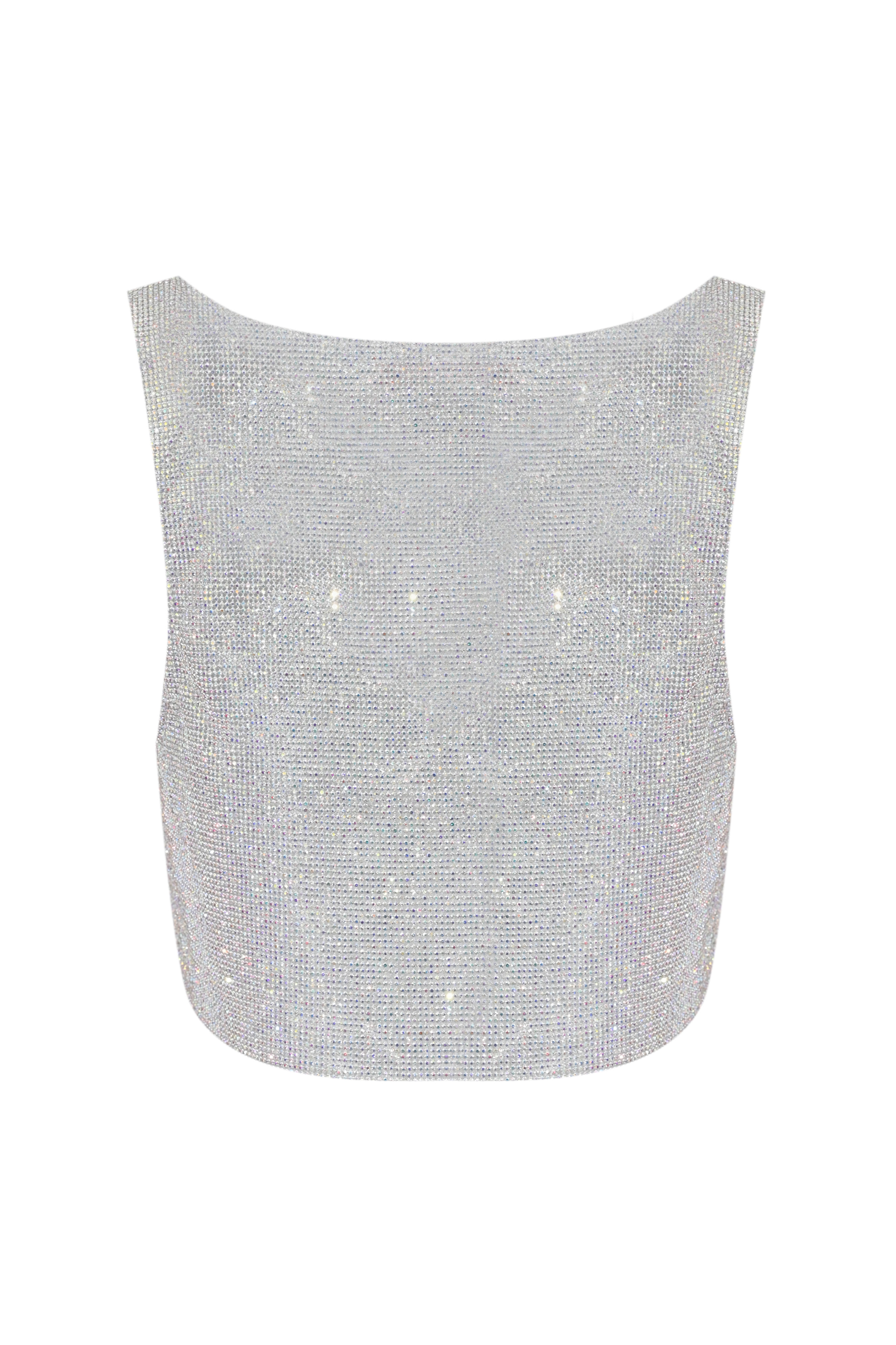 Top New Atene in maglia metallica con strass