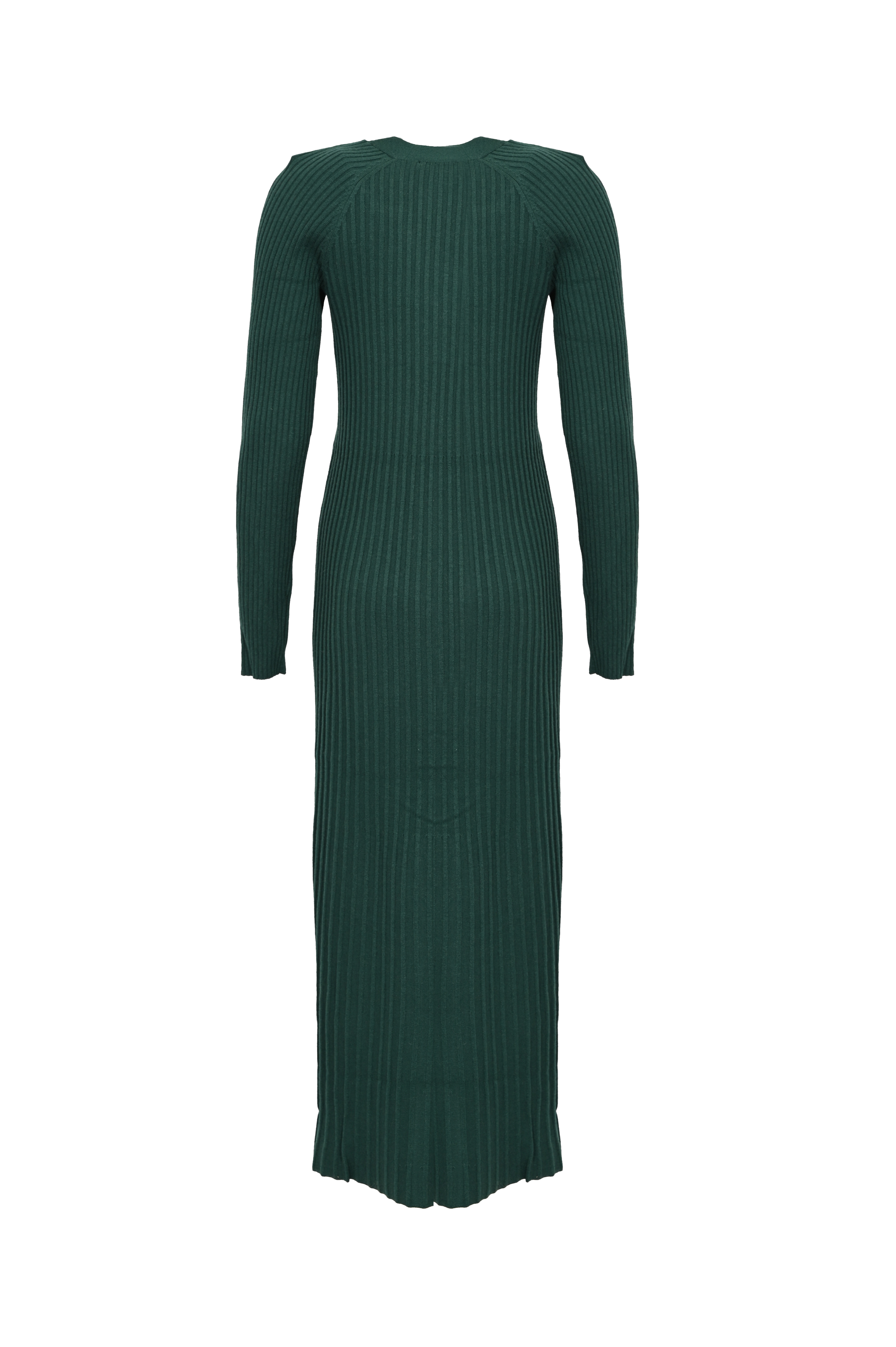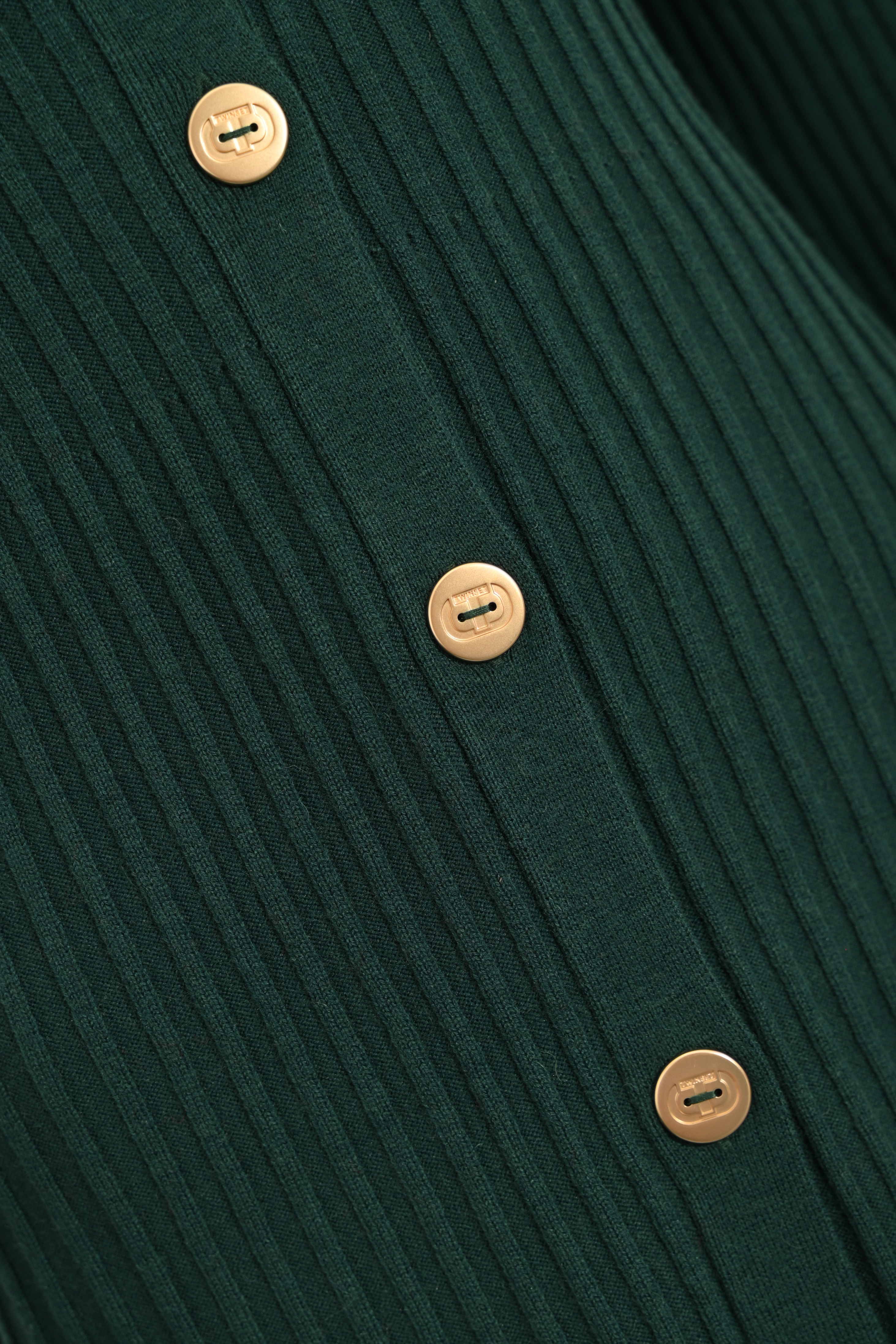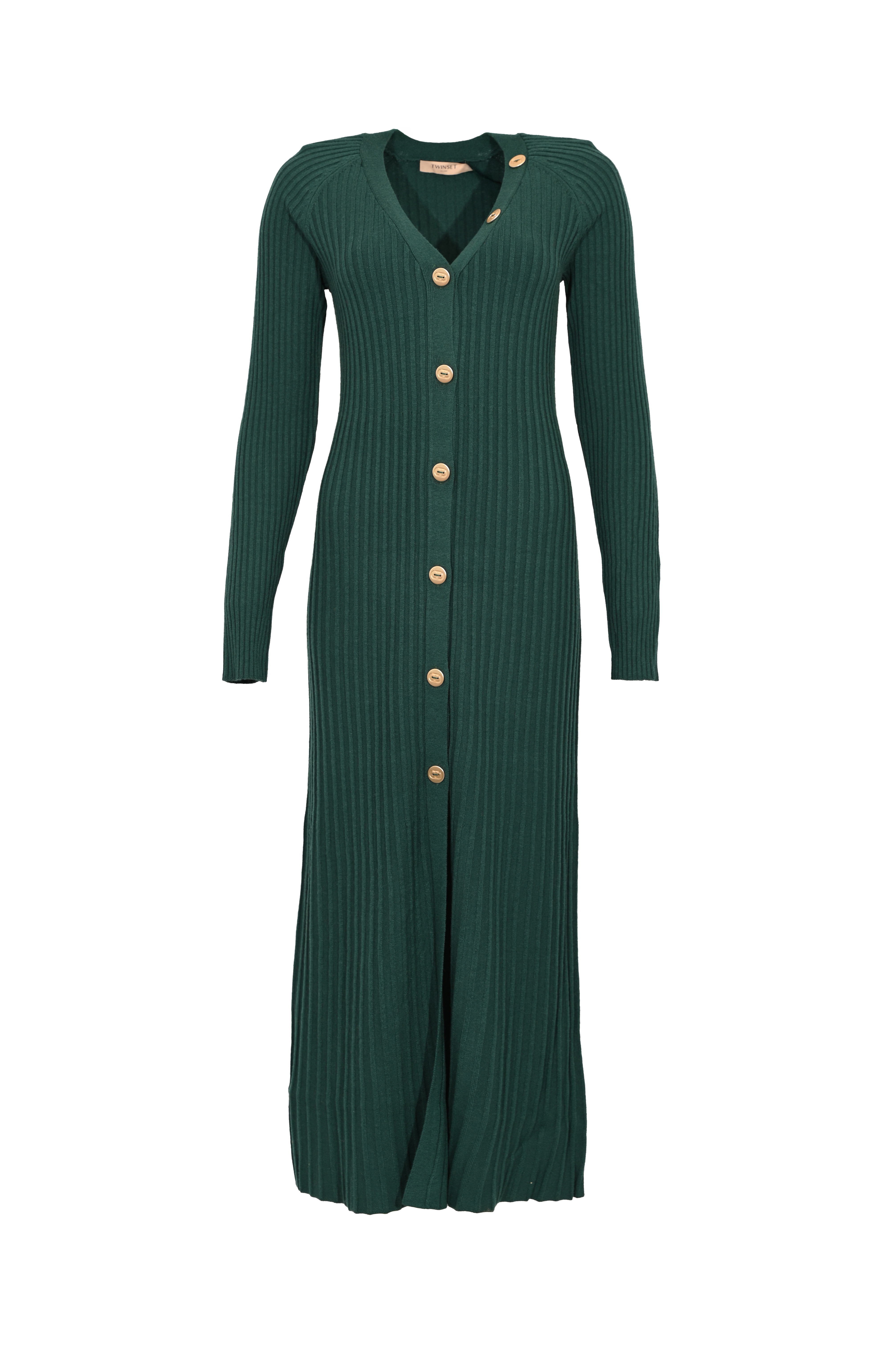 Abito cardigan lungo in misto lana e viscosa a costine Deep Forest
